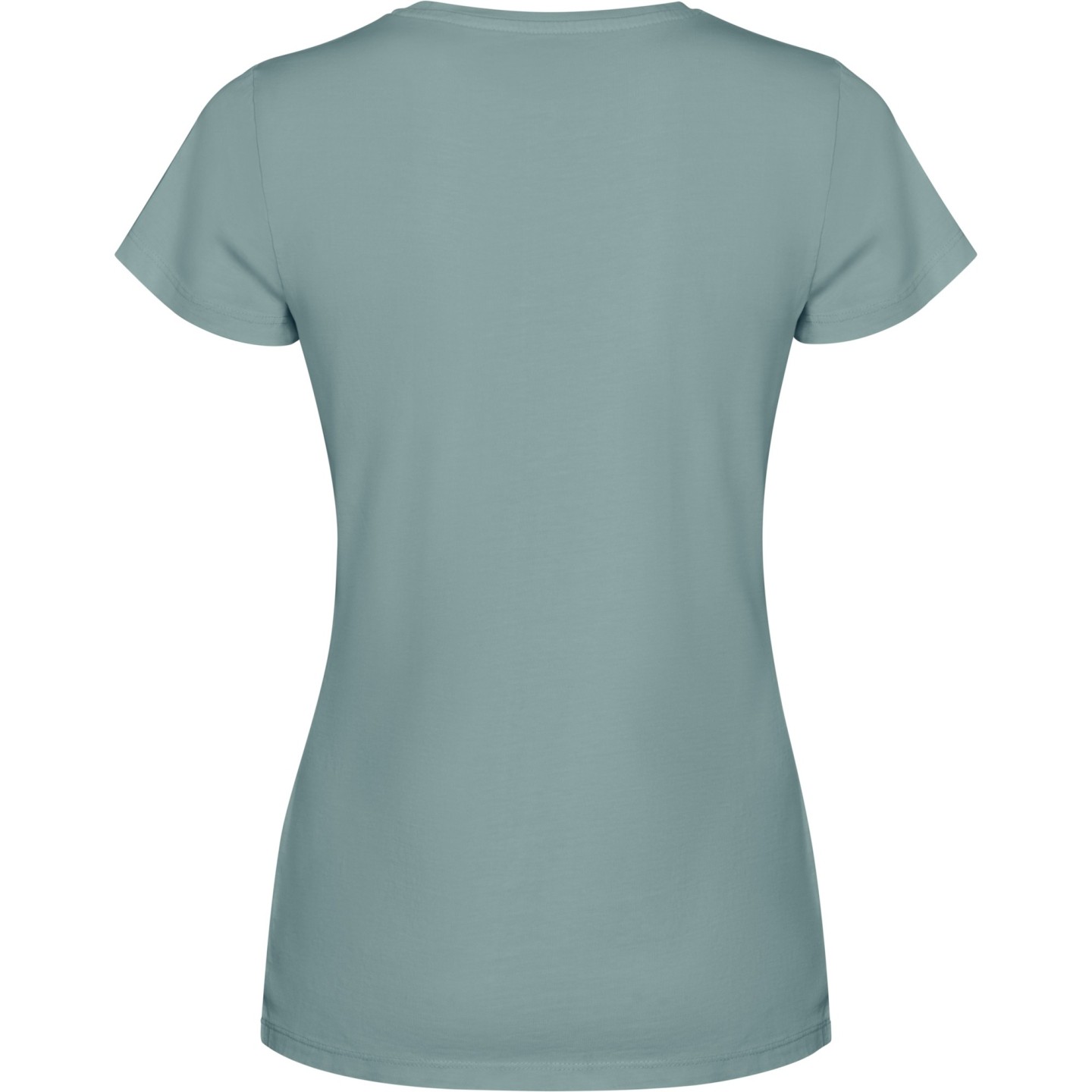 Camiseta eco friendly para mujer de 100% algodón con acabado lavado ácido. Con cuello redondo de canalé 1x1, costuras laterales y cubrecosturas a tono. Perfecta para personalizar con logotipo y promocionar tu marca de forma sostenible