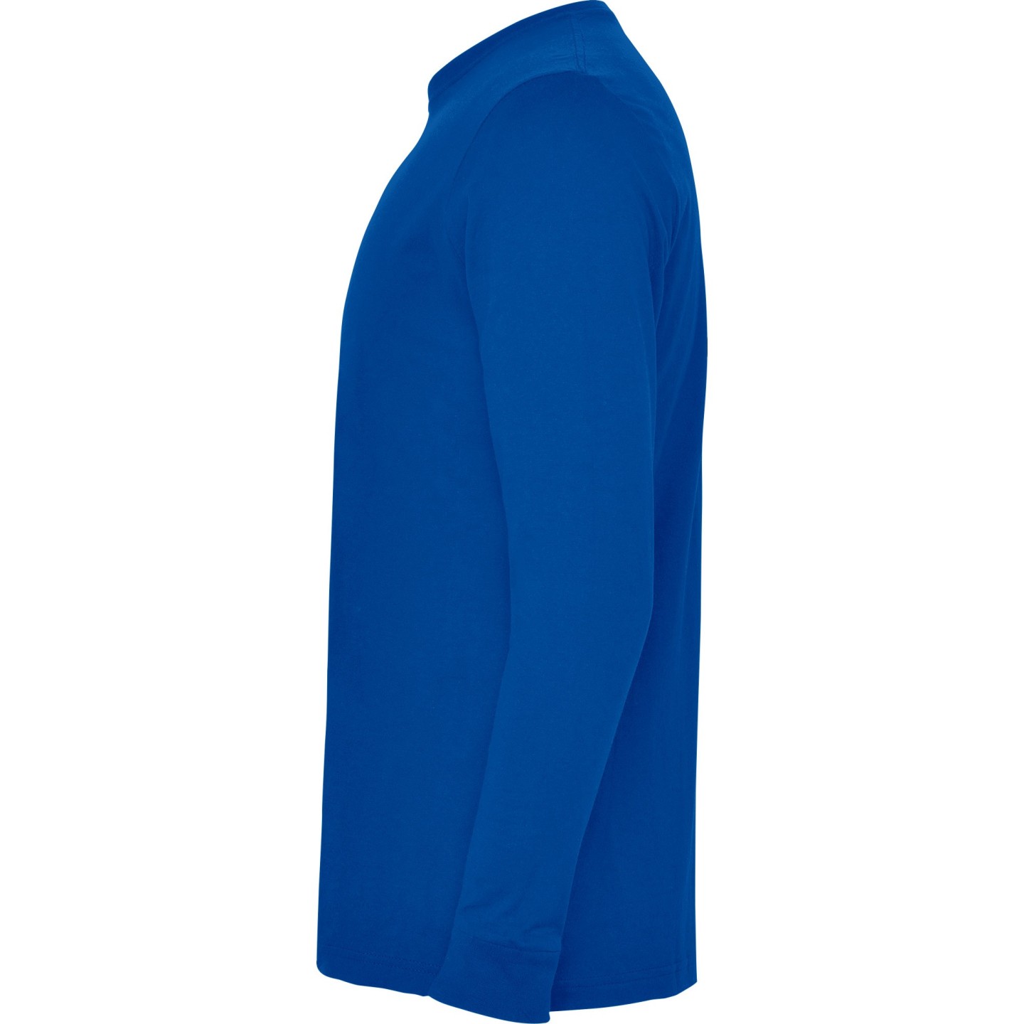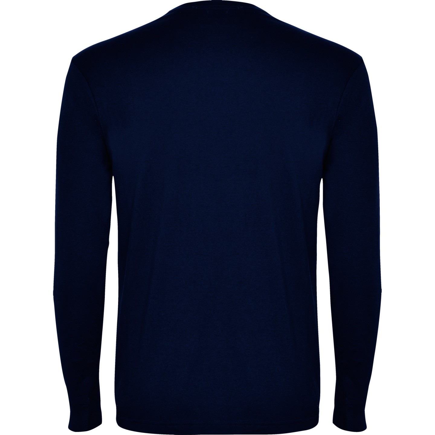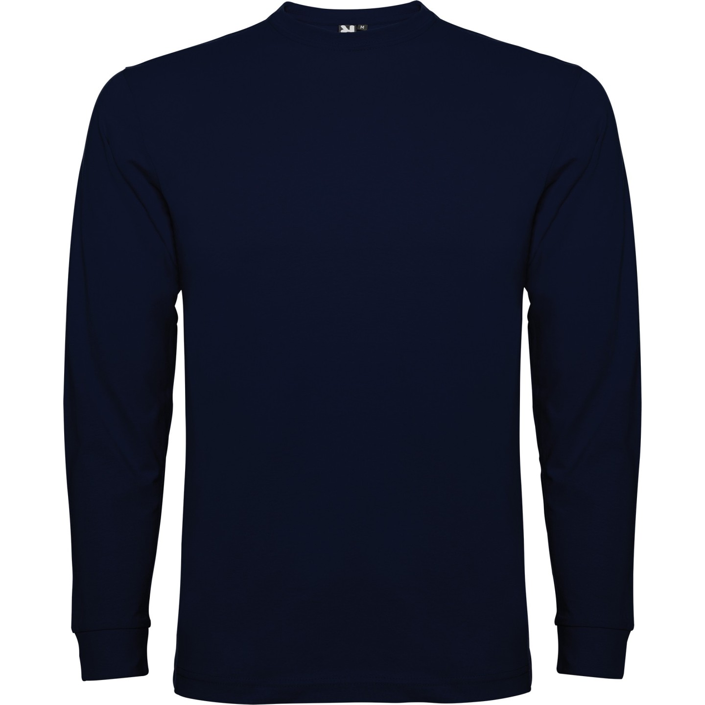 Camiseta infantil de manga larga, cuello redondo de 4 capas y puños canalé 1x1. Con costuras reforzadas, etiqueta removible y tejido 100% algodón punto liso. Perfecta para personalización con logotipo