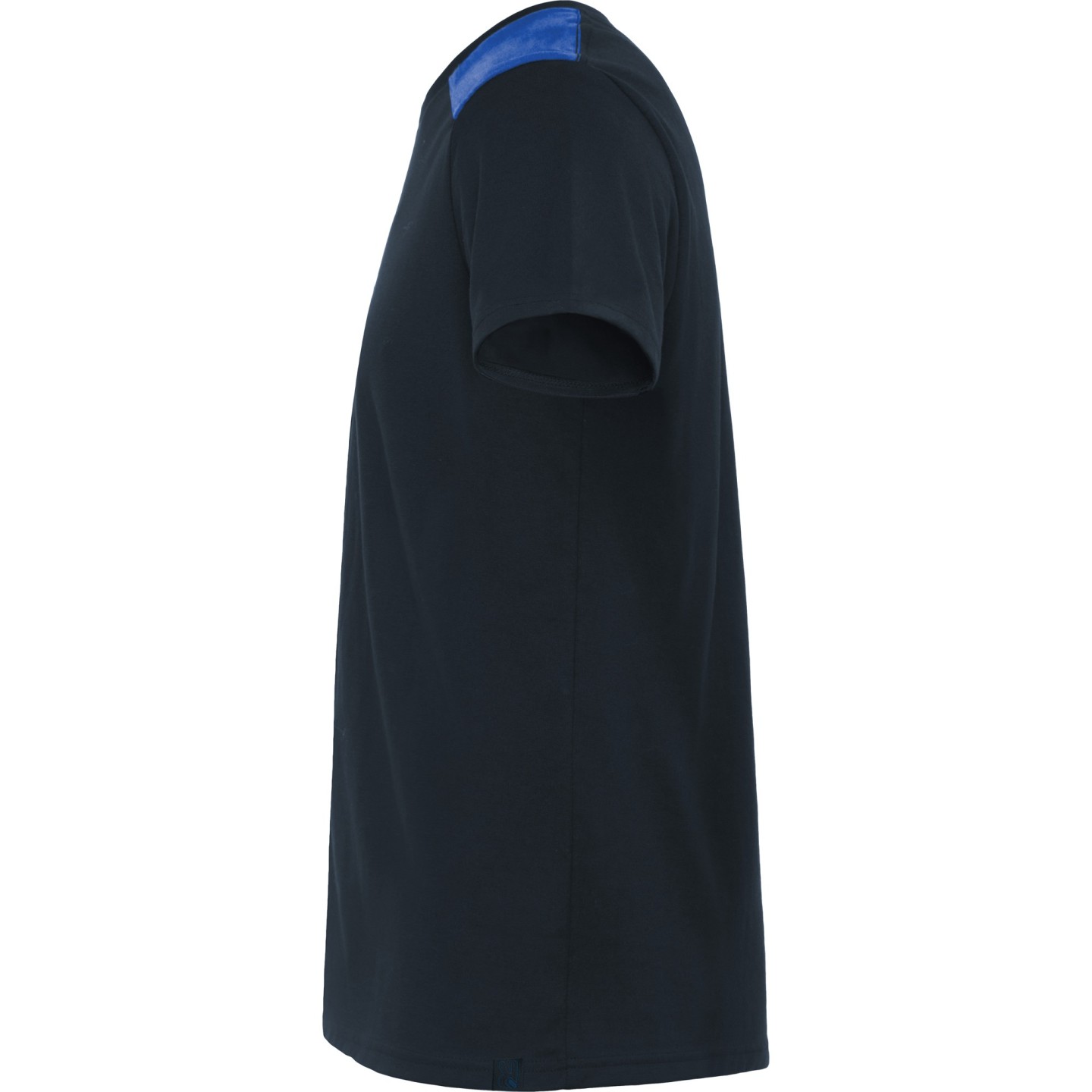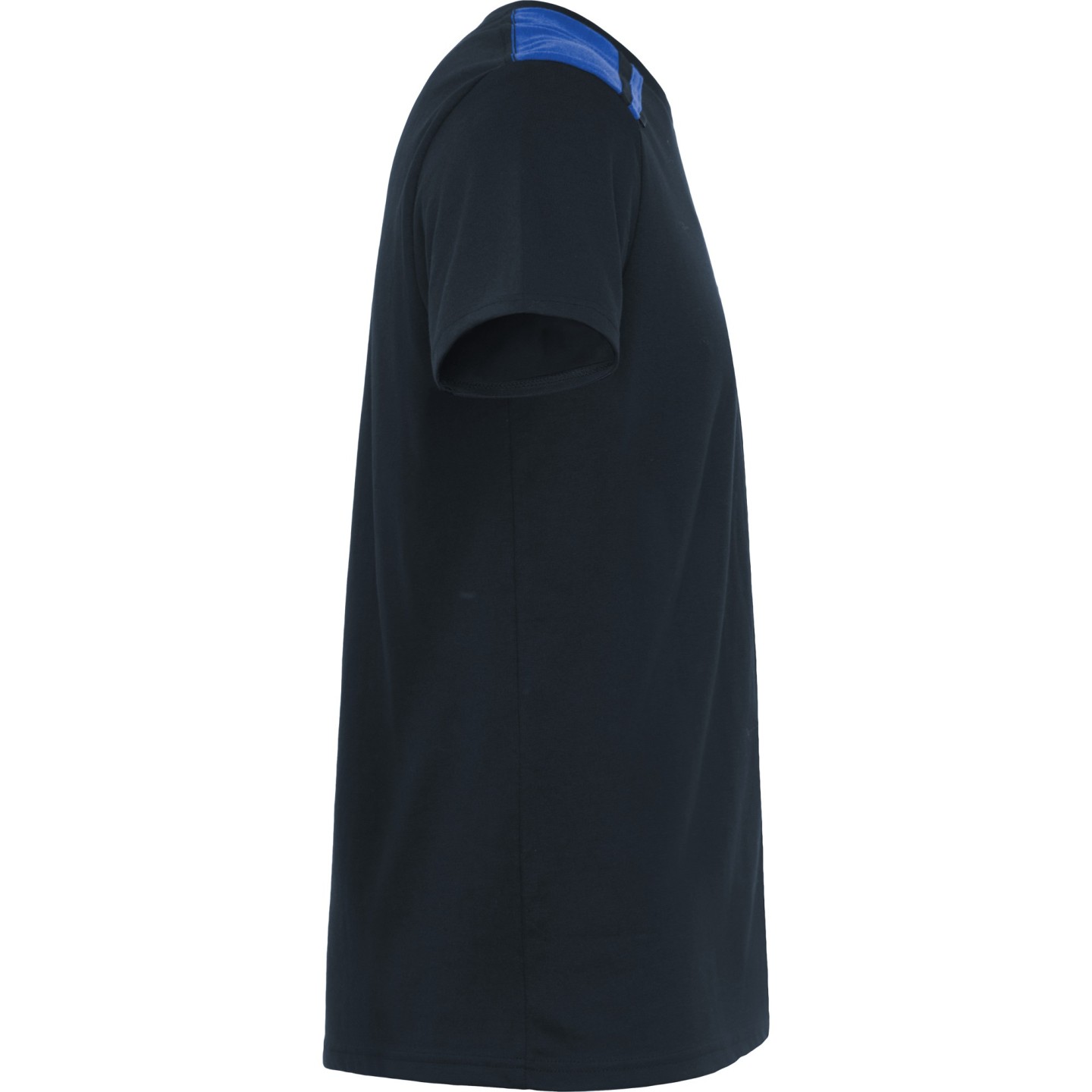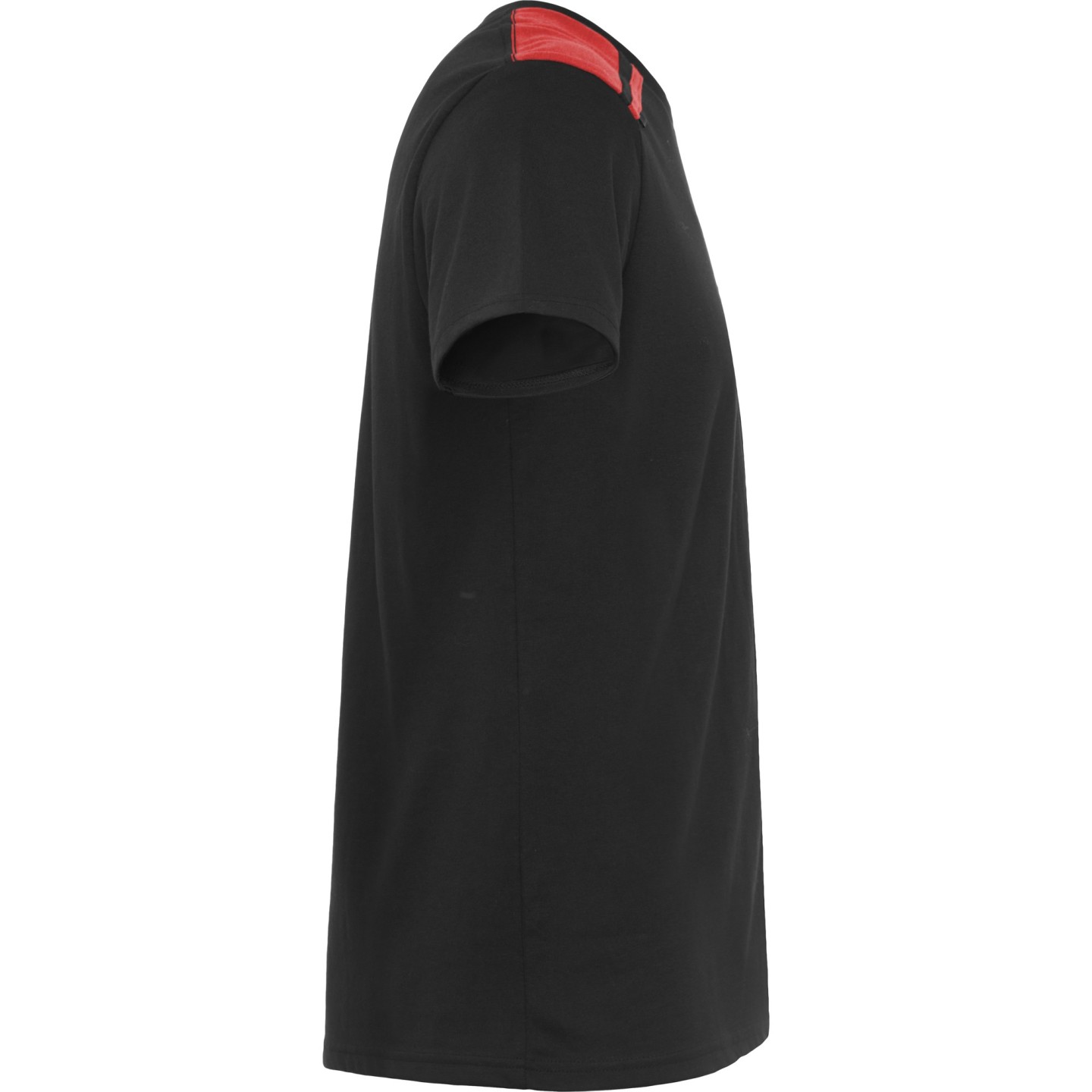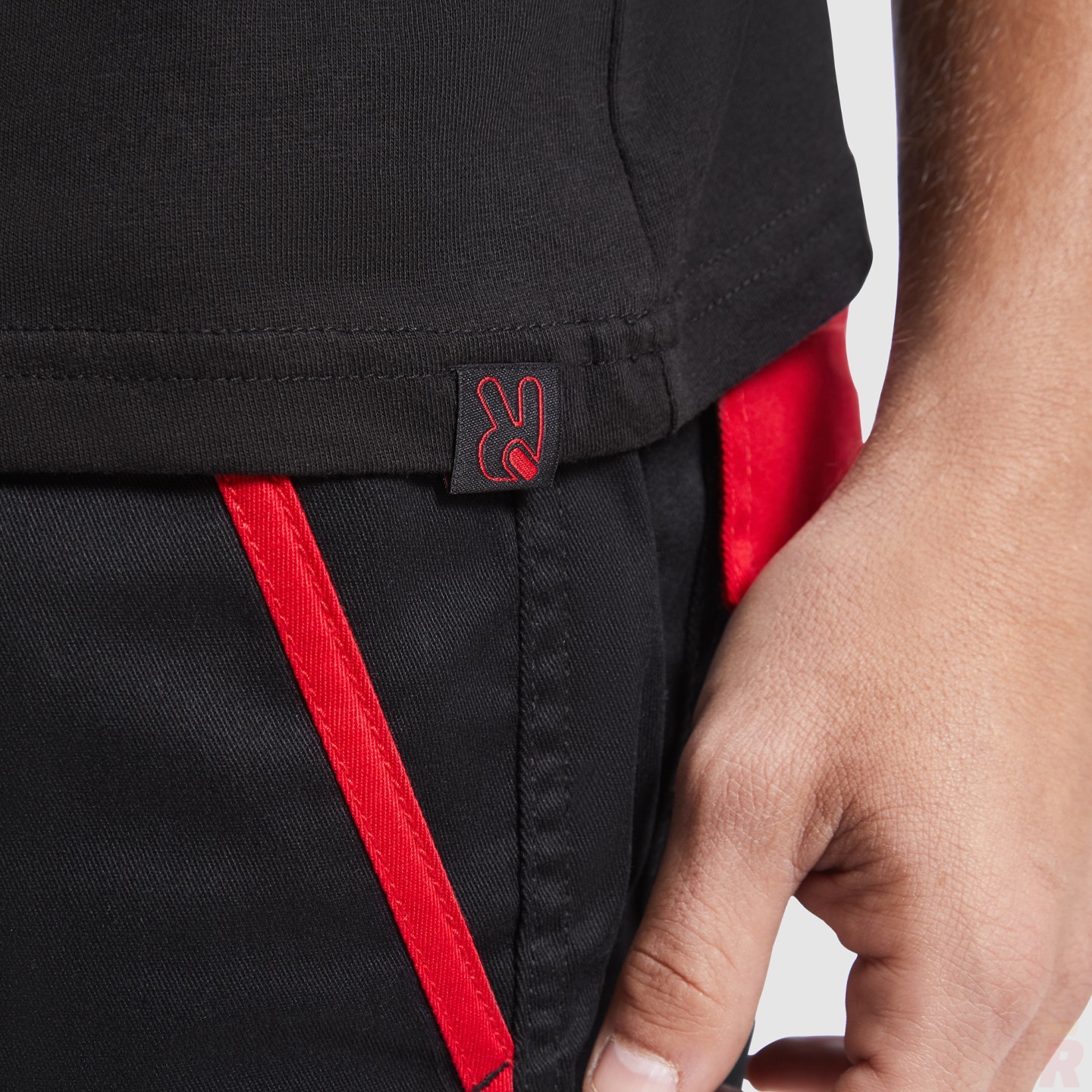 El diseño incorpora costuras laterales reforzadas que aseguran una mejor adaptación al cuerpo y prolongan la vida útil de la prenda. El cuello redondo cuenta con un cubre costuras interior en color contraste, un detalle pensado tanto para reforzar el acabado como para aportar un toque distintivo de estilo. Las piezas en los hombros con contraste bicolor como se aprecia en la versión Negro/Rojo no solo elevan el diseño visualmente, sino que añaden una línea deportiva y profesional muy atractiva.