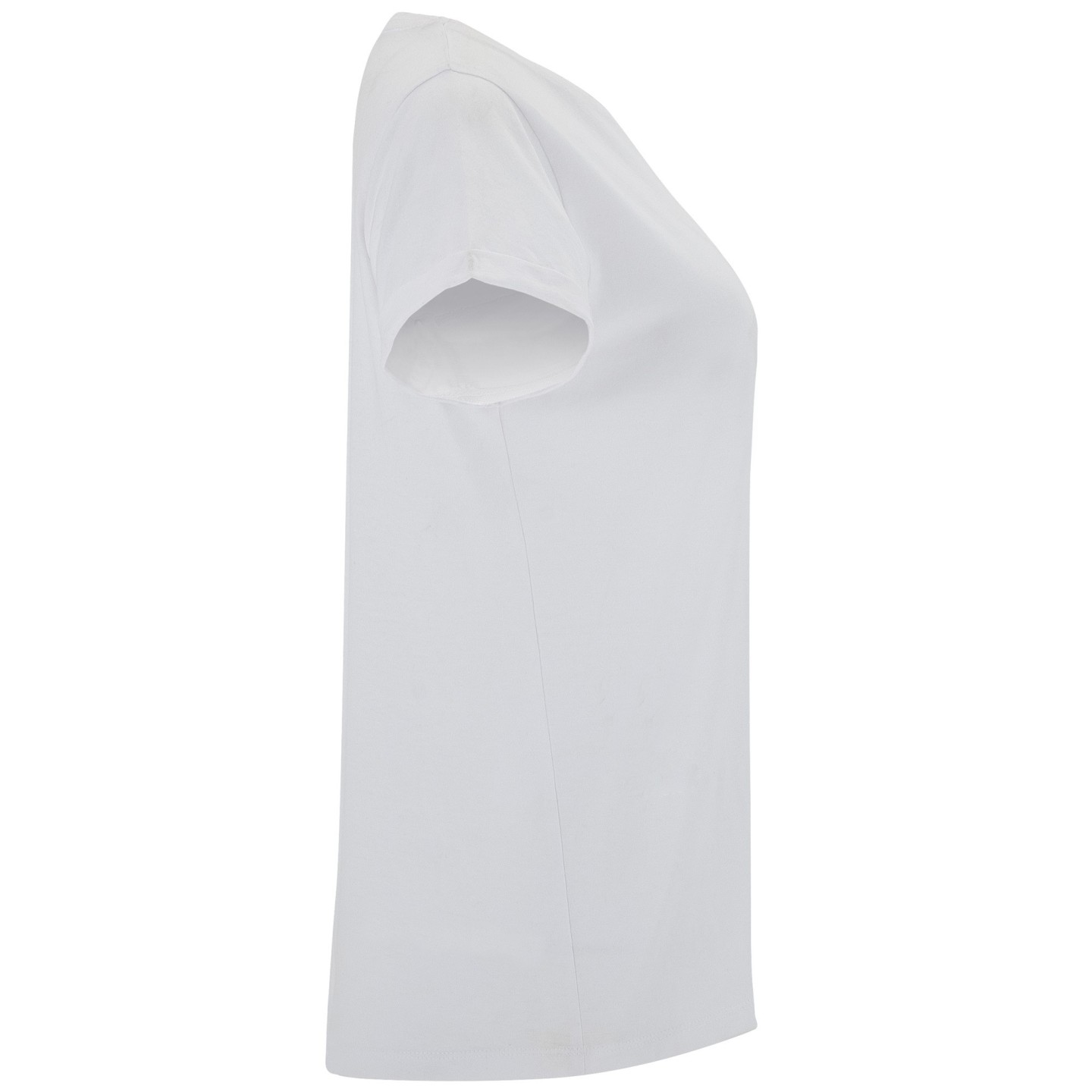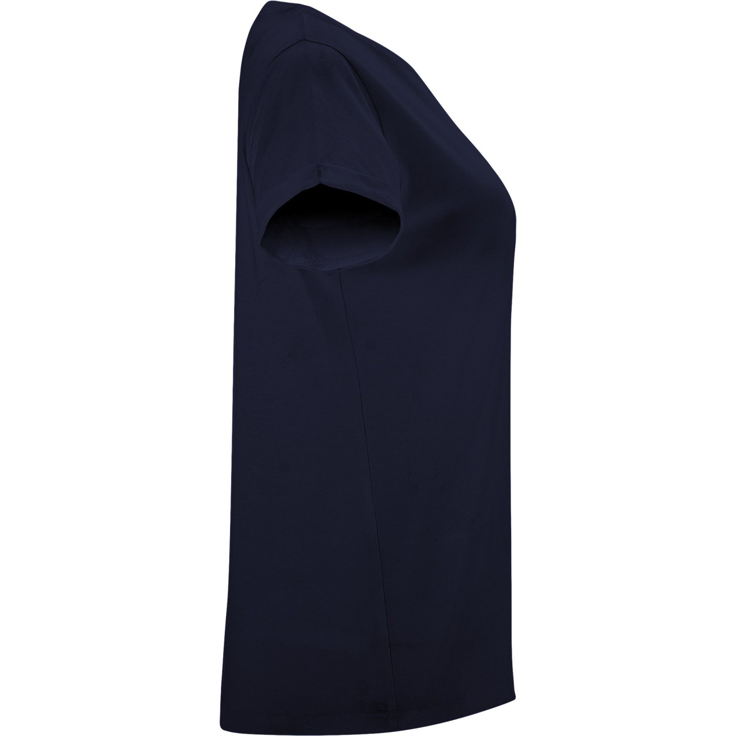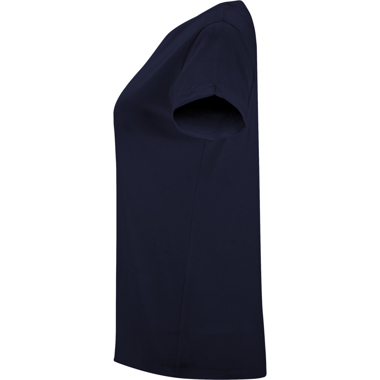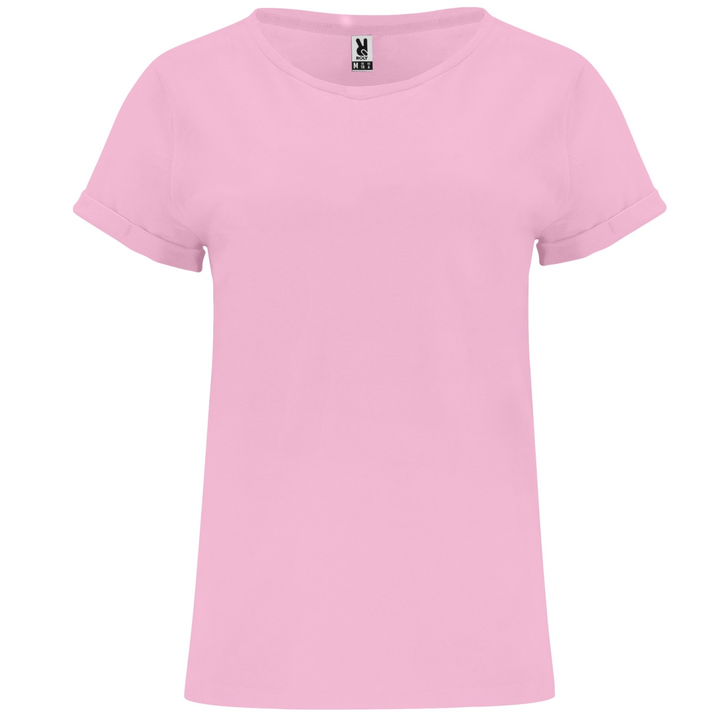 Camiseta mujer 100% algodón de manga corta holgada con escote del mismo tejido. Cuello con cubrecosturas interior, mangas con dobladillo asegurado y costuras laterales. Ideal para personalizar con logotipo
