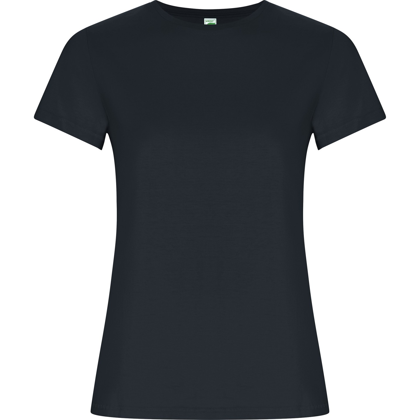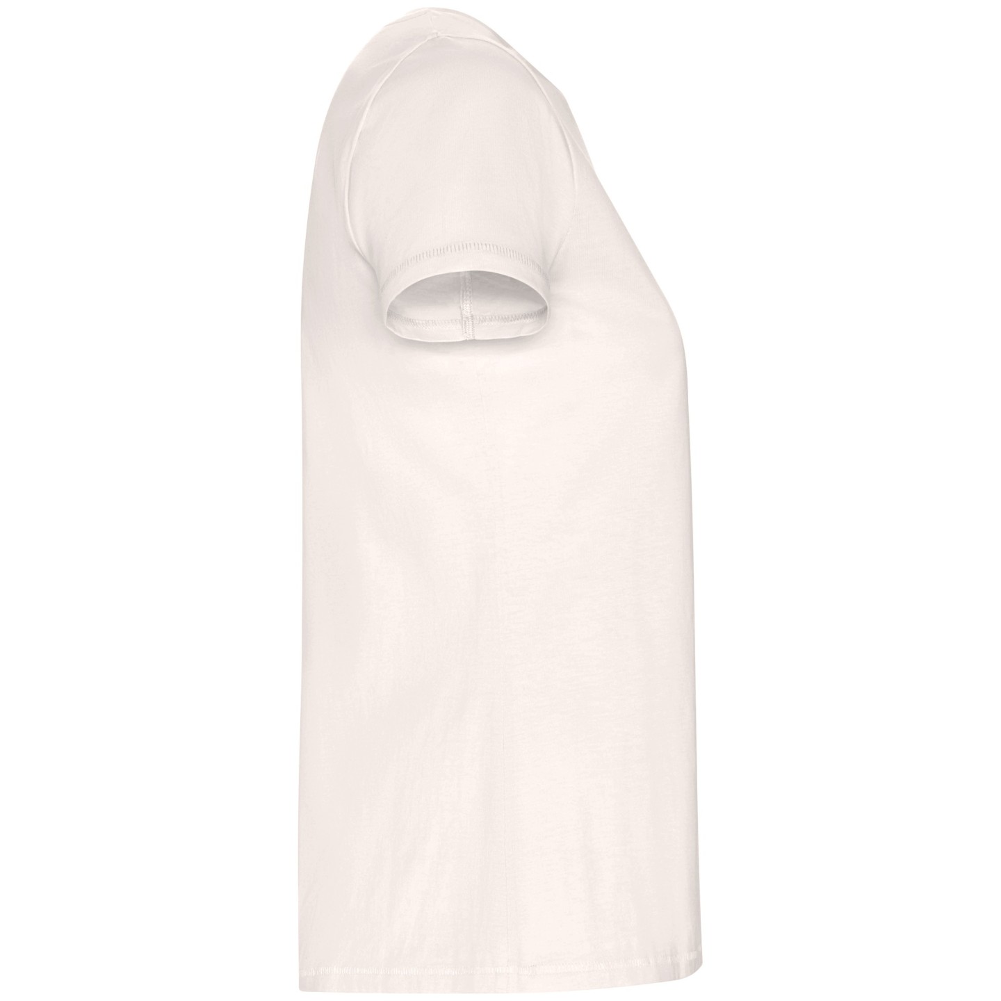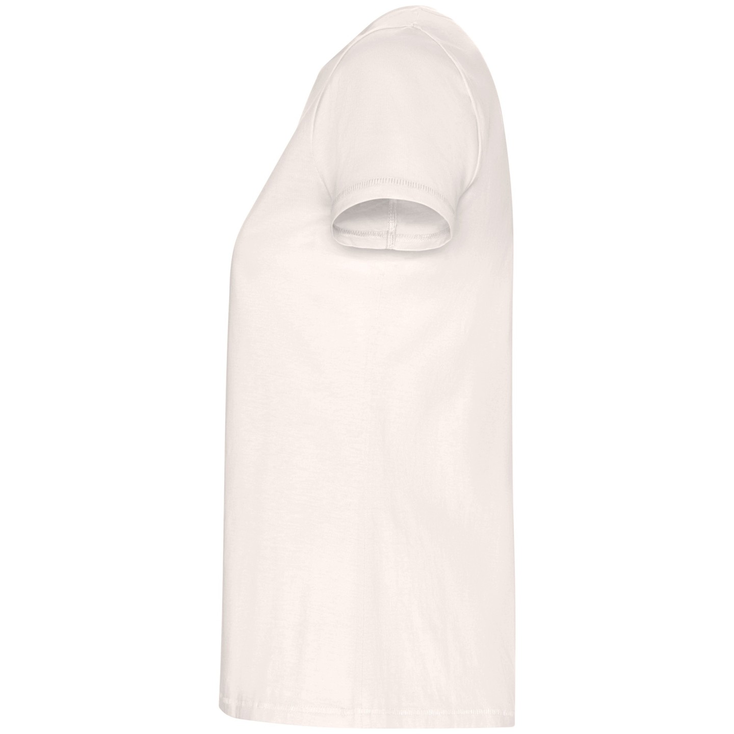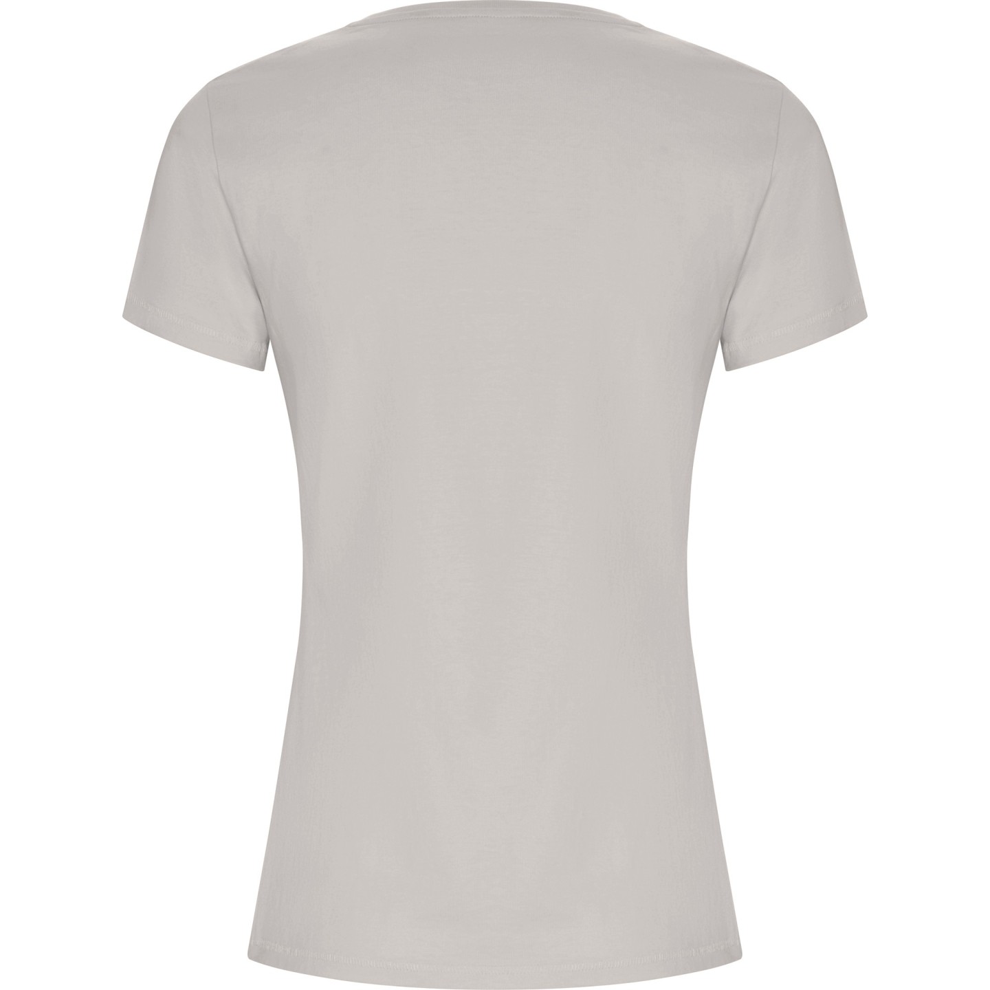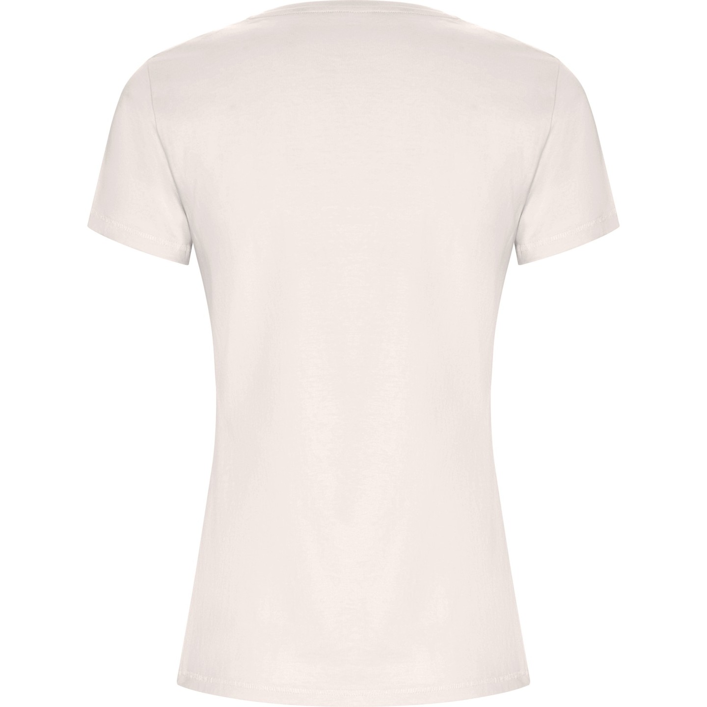 Camiseta ecológica entallada de mujer en algodón orgánico certificado GOTS. Suave, cómoda y sostenible, con cuello redondo Rib 1x1, costuras decorativas y etiqueta ECO removible. Ideal para personalizar con logotipo