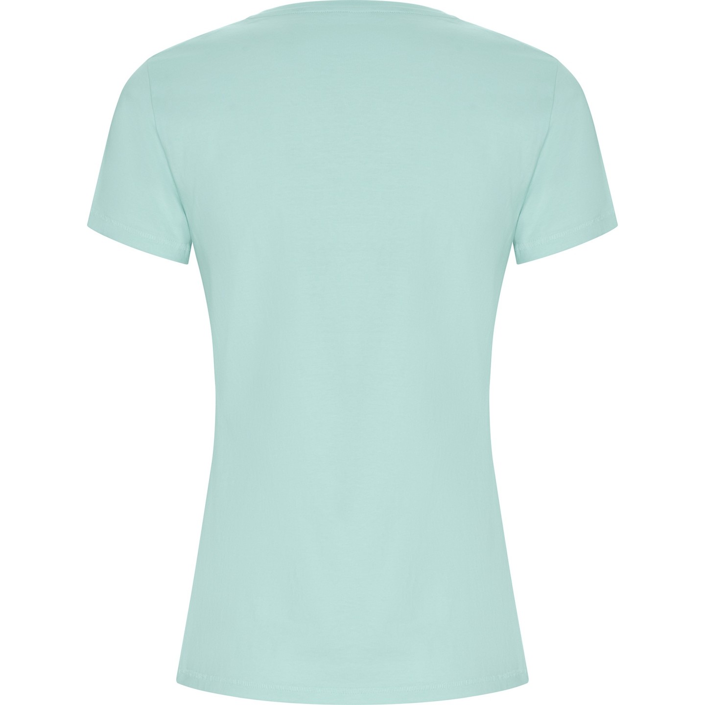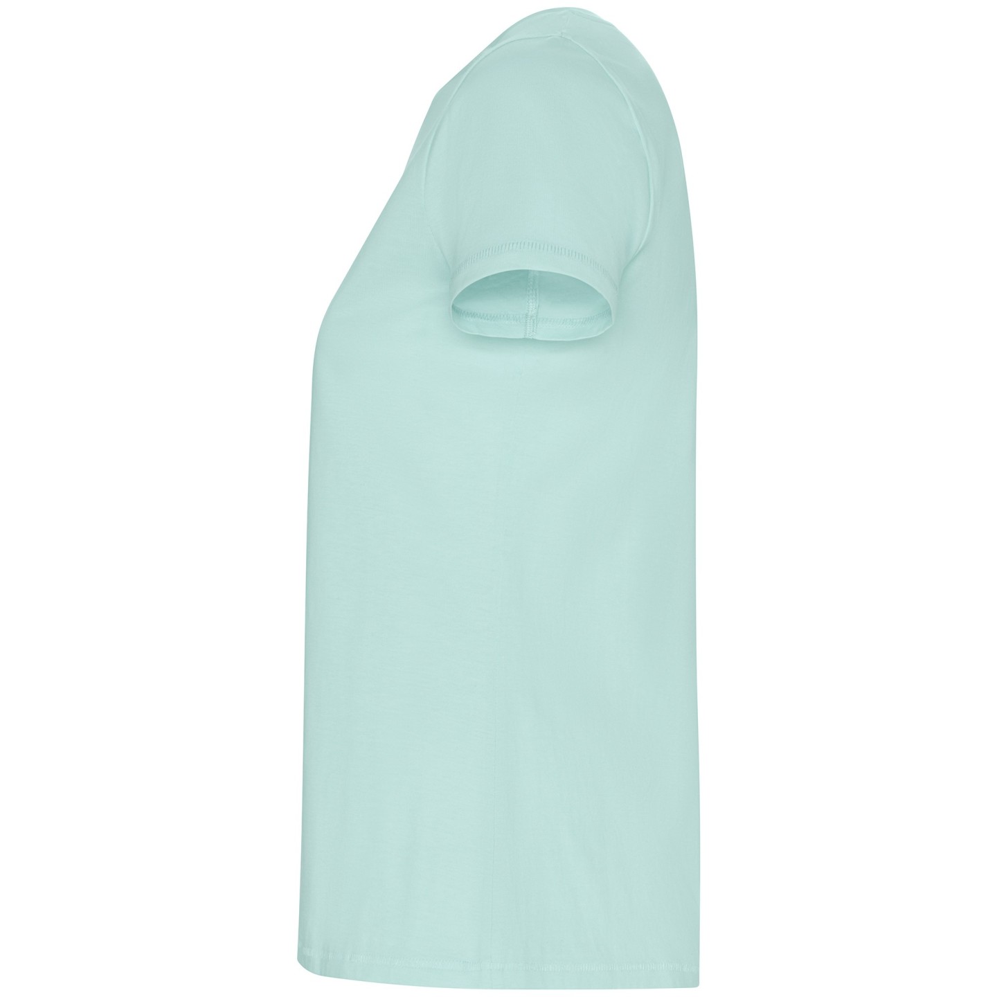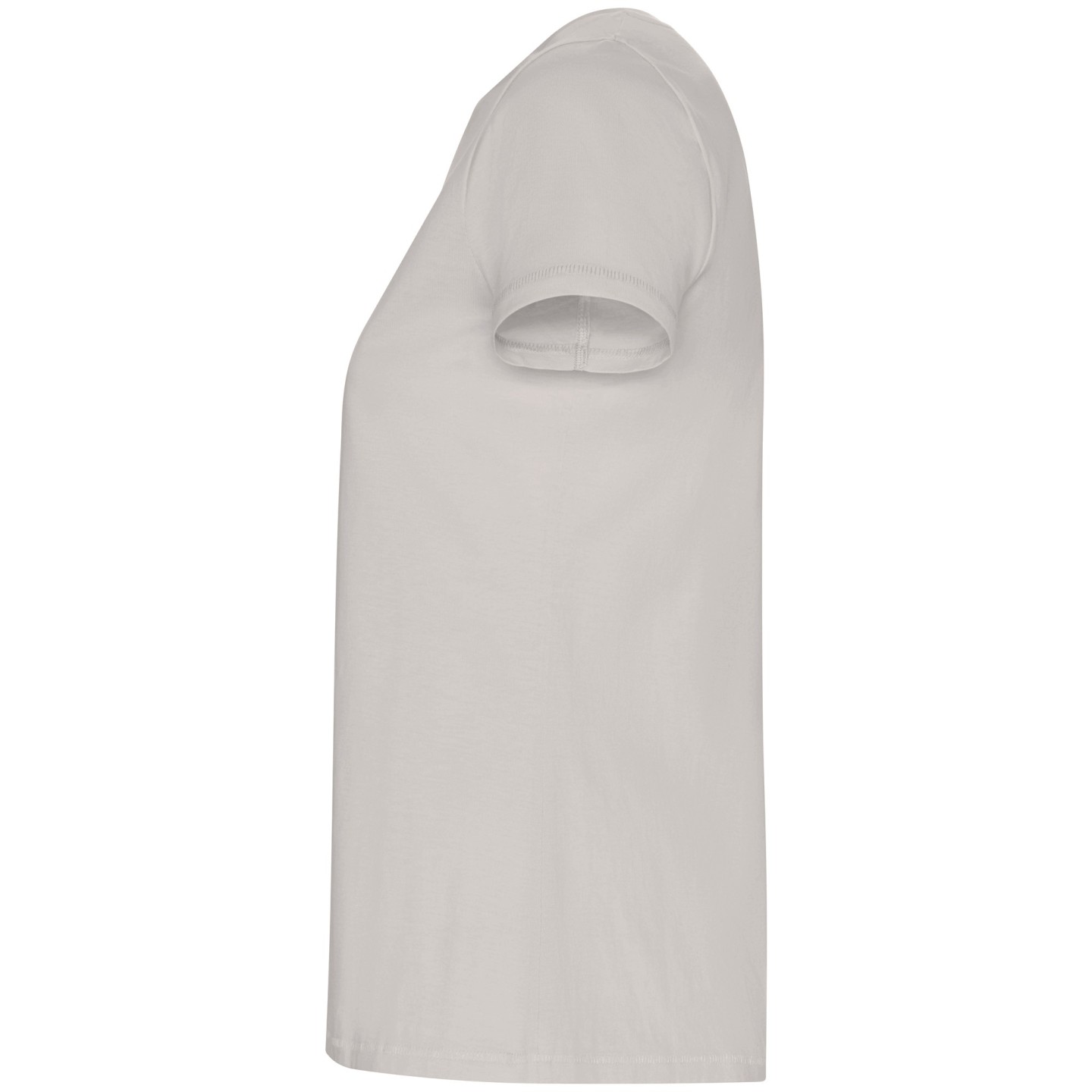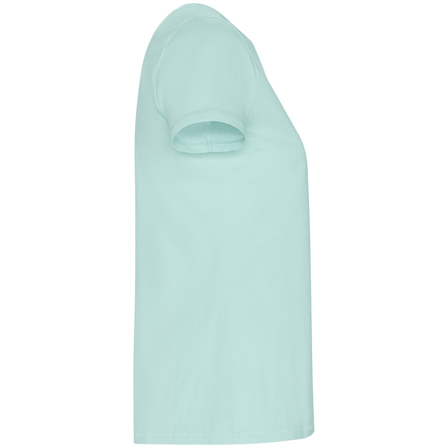 Camiseta ecológica entallada de mujer en algodón orgánico certificado GOTS. Suave, cómoda y sostenible, con cuello redondo Rib 1x1, costuras decorativas y etiqueta ECO removible. Ideal para personalizar con logotipo
