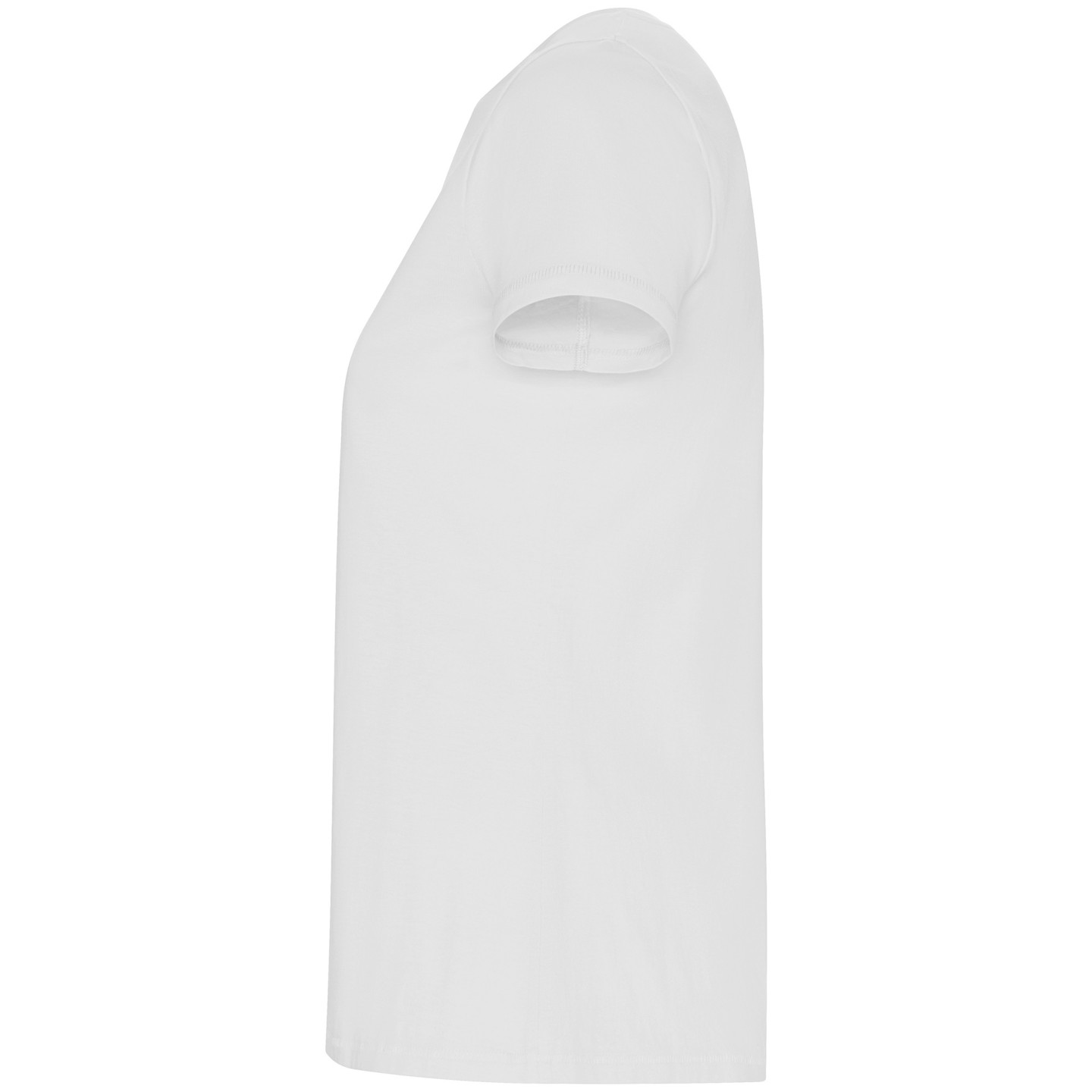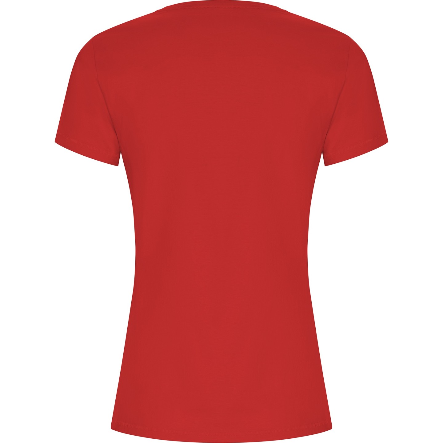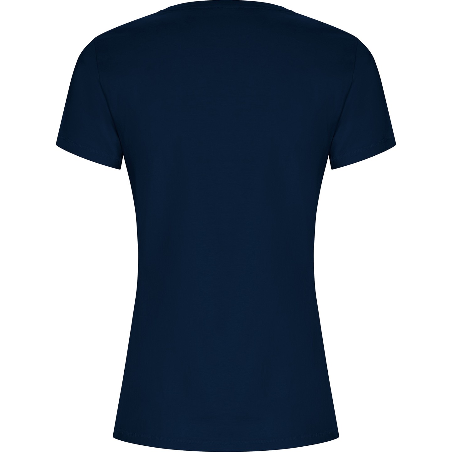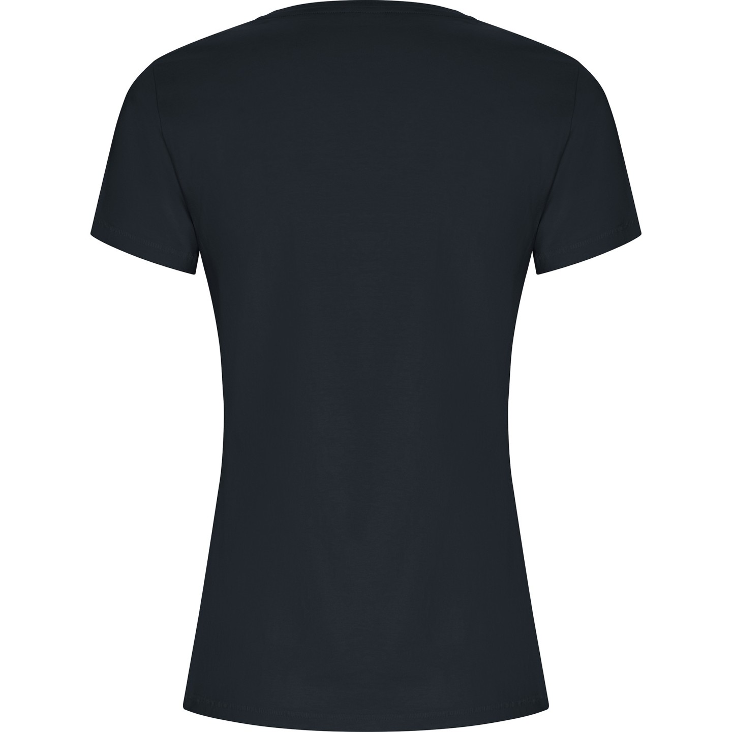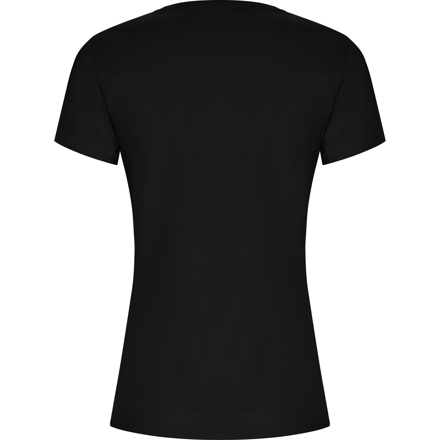 Camiseta ecológica entallada de mujer en algodón orgánico certificado GOTS. Suave, cómoda y sostenible, con cuello redondo Rib 1x1, costuras decorativas y etiqueta ECO removible. Ideal para personalizar con logotipo