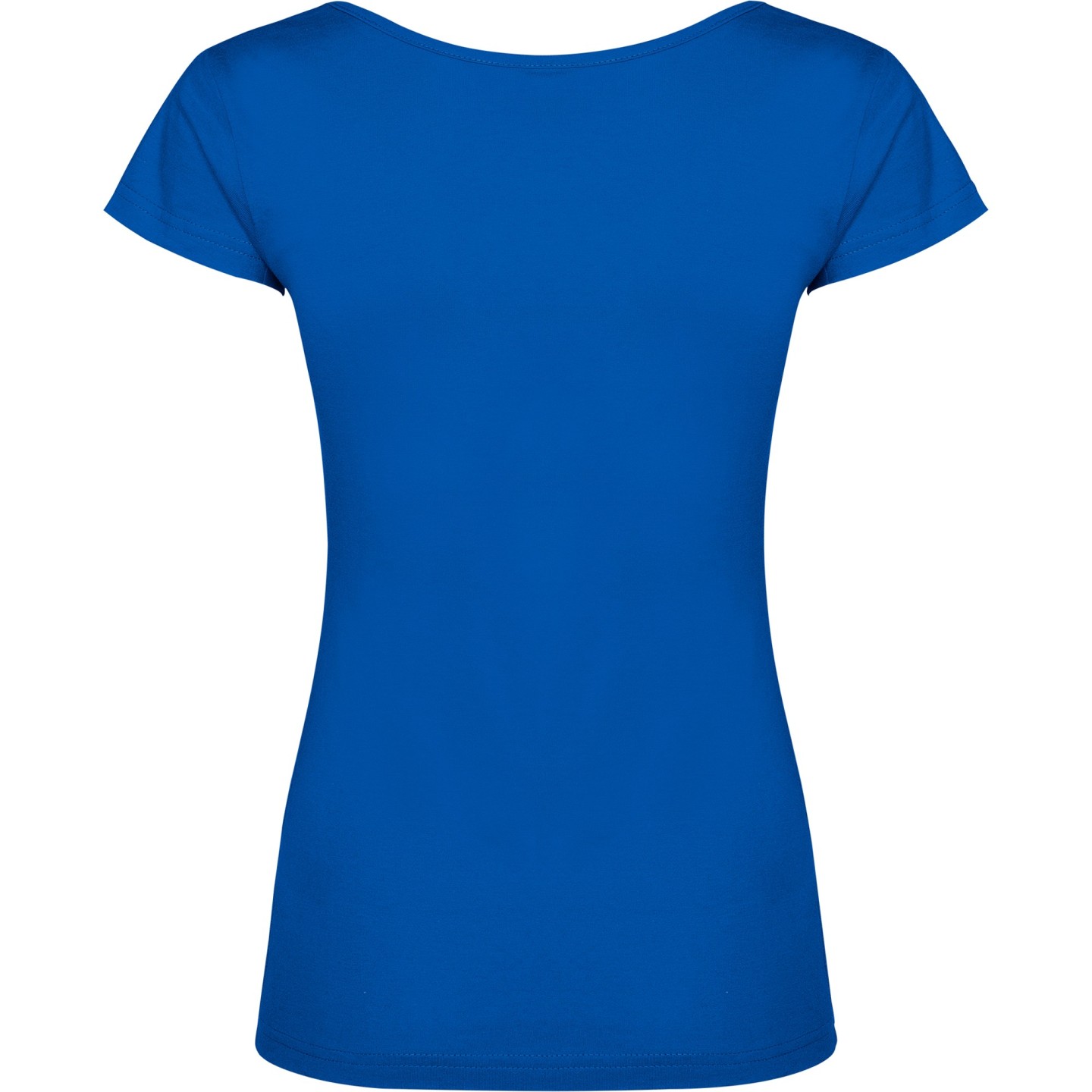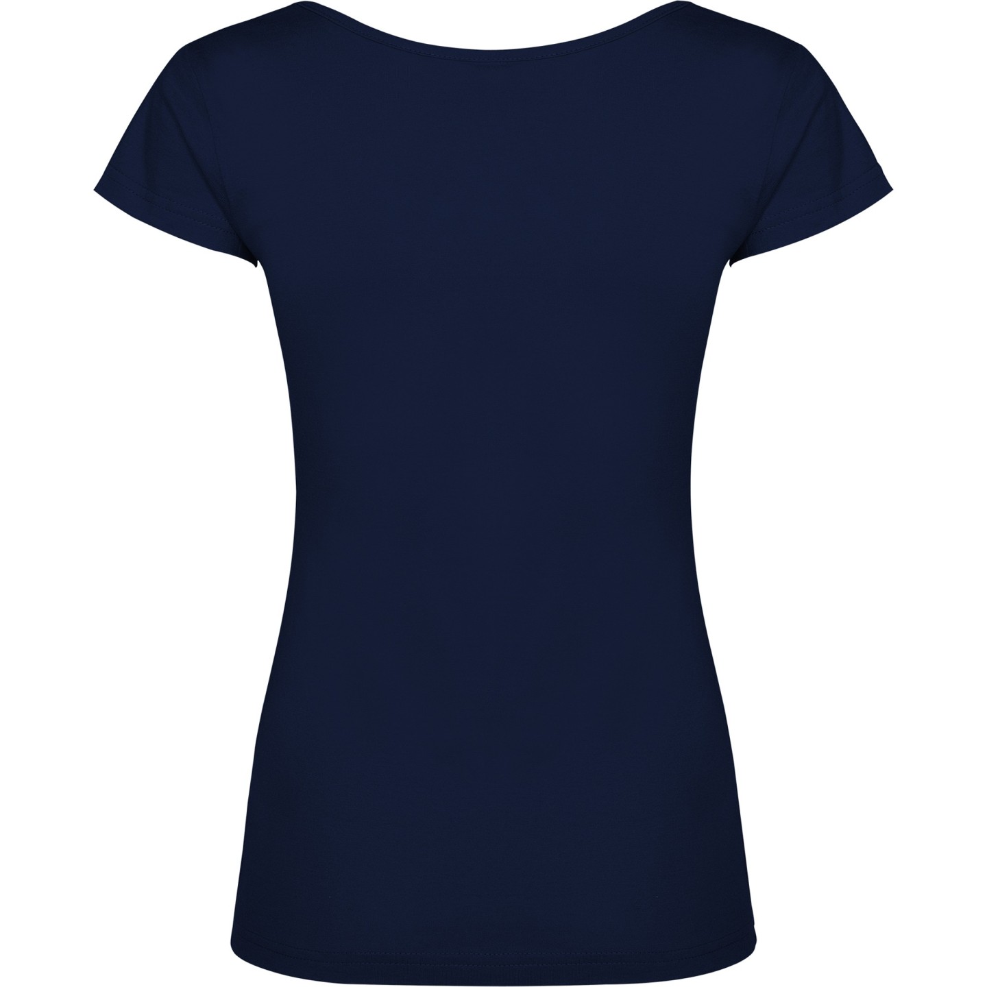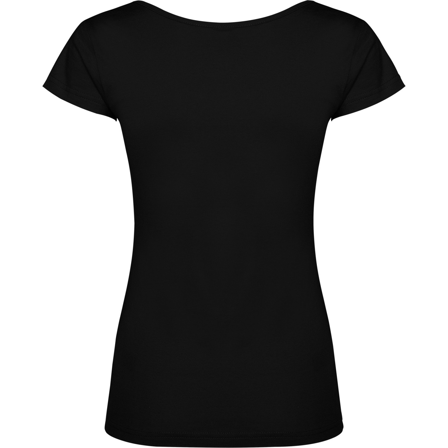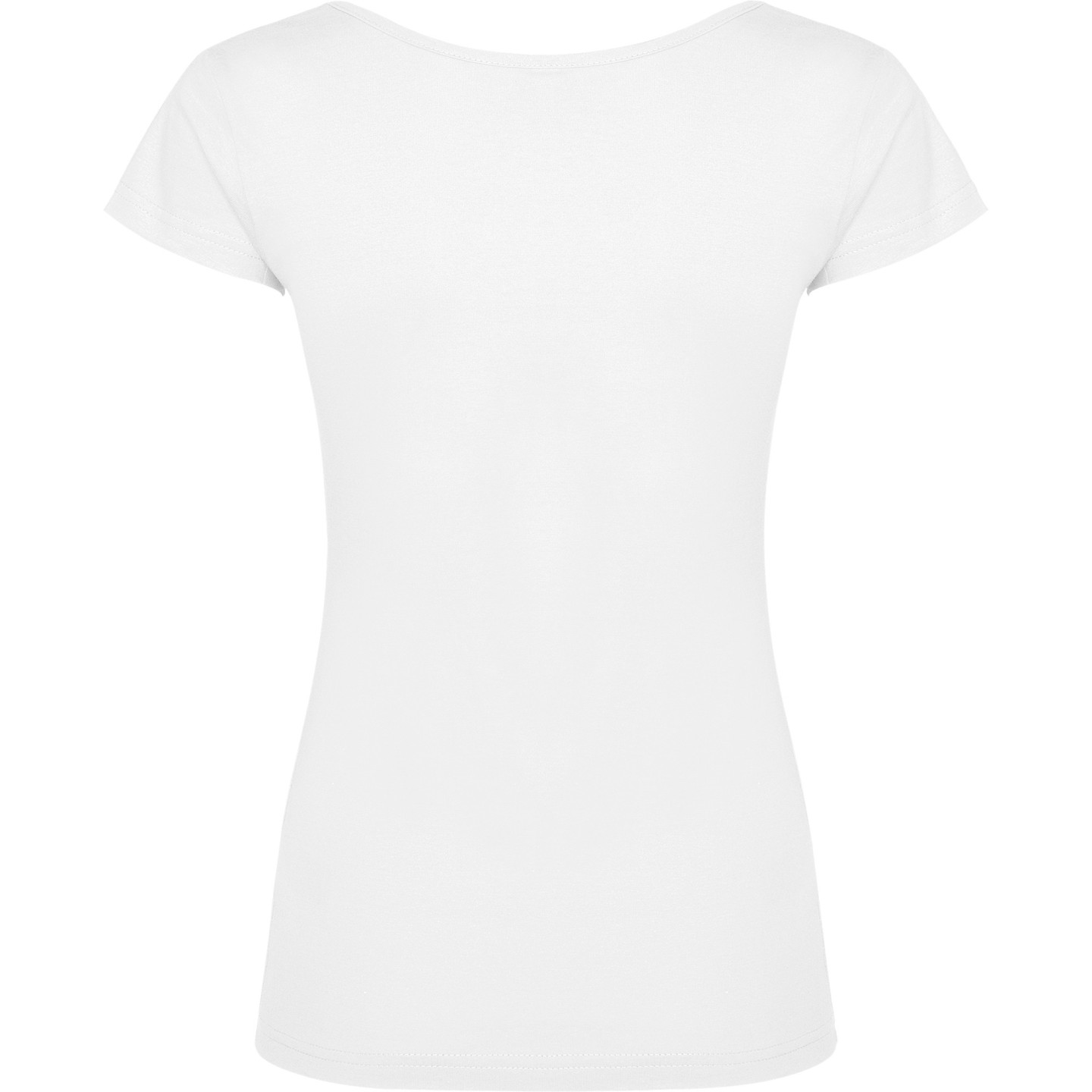 Camiseta de mujer con escote redondo ribeteado y pronunciado. Confeccionada en 100% algodón de punto liso, 155 g/m². Corte ajustado con costuras laterales y etiqueta removible. Ideal para personalizar con logotipo
