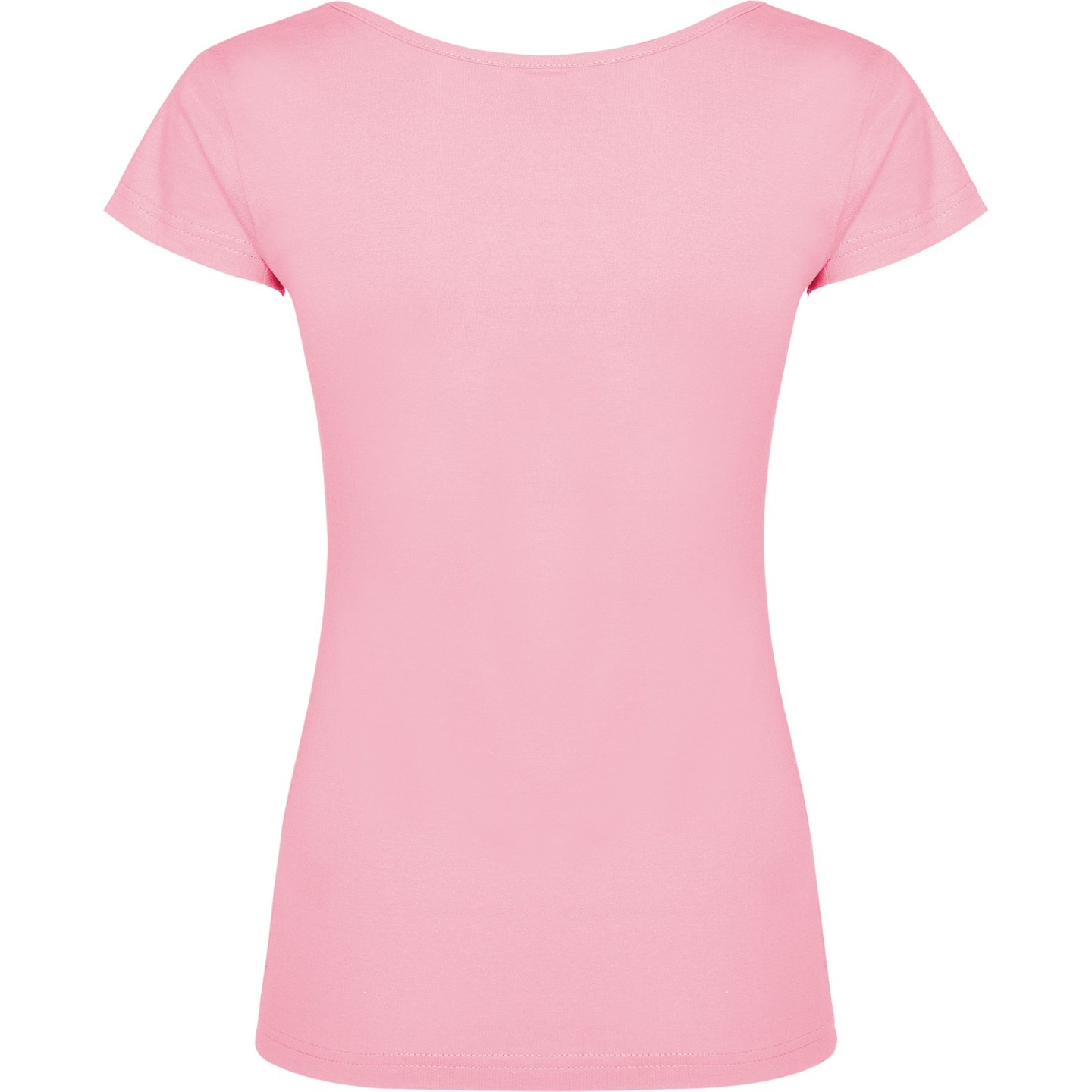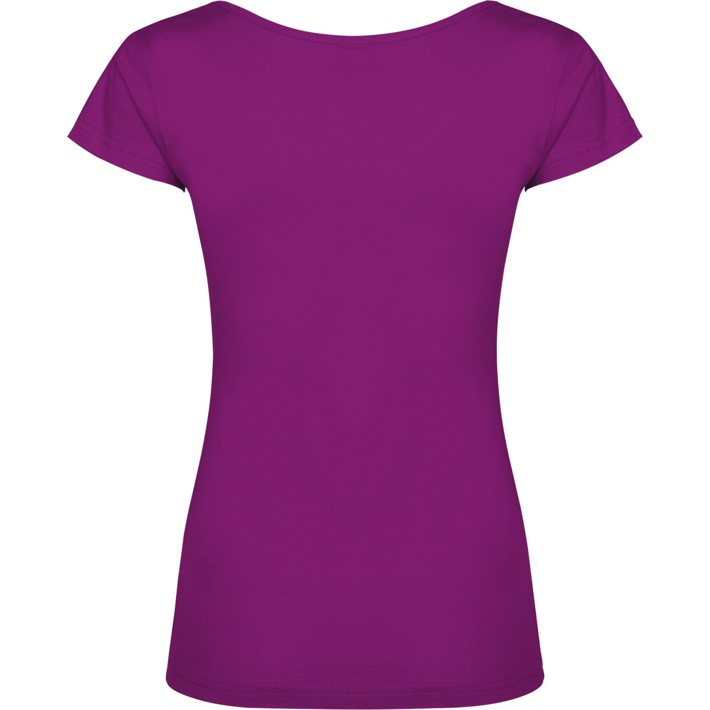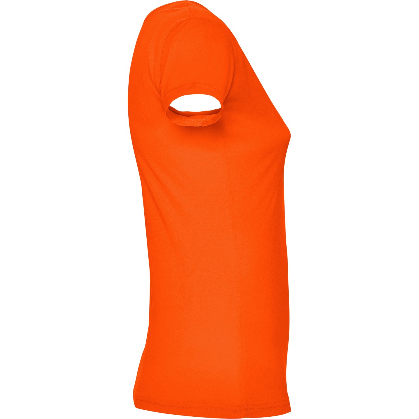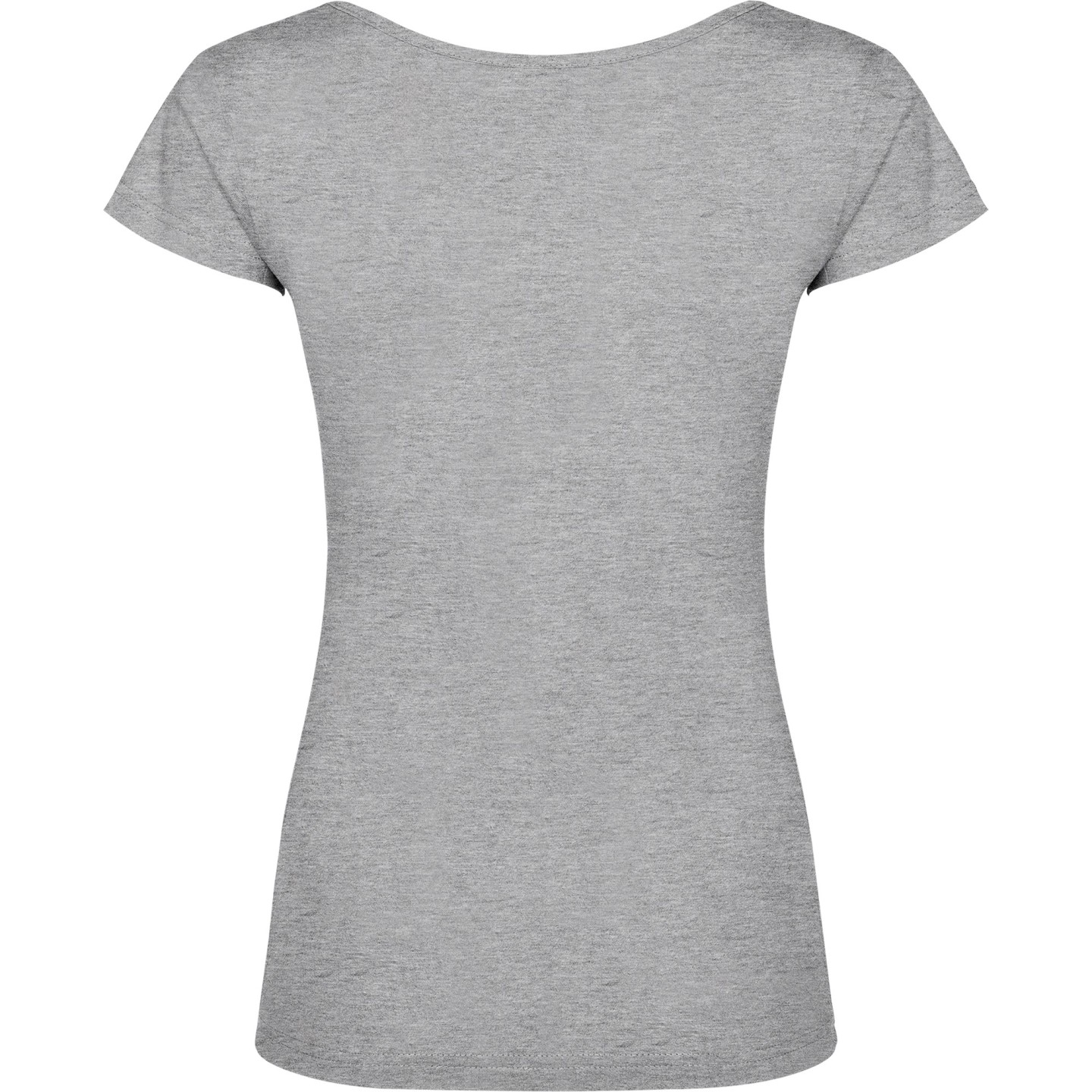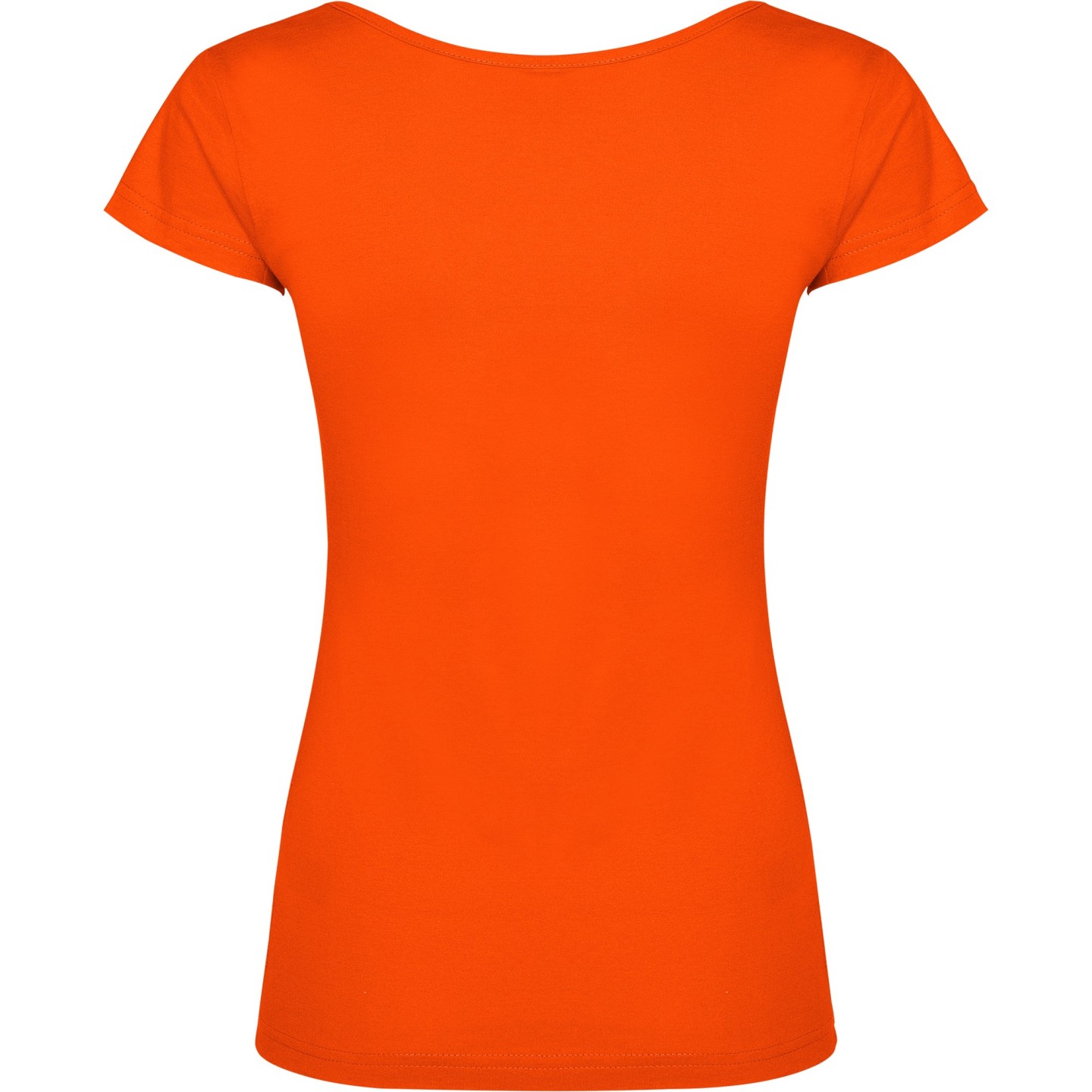 Camiseta de mujer con escote redondo ribeteado y pronunciado. Confeccionada en 100% algodón de punto liso, 155 g/m². Corte ajustado con costuras laterales y etiqueta removible. Ideal para personalizar con logotipo