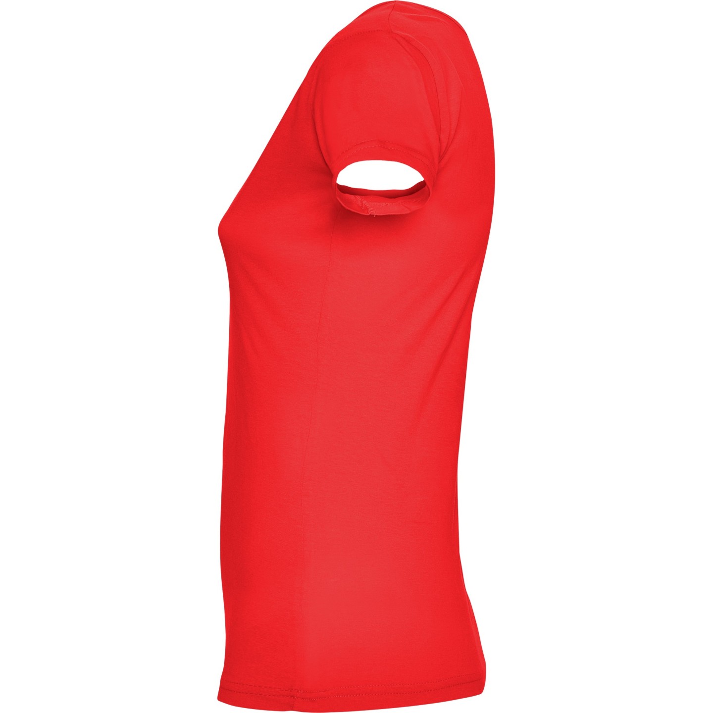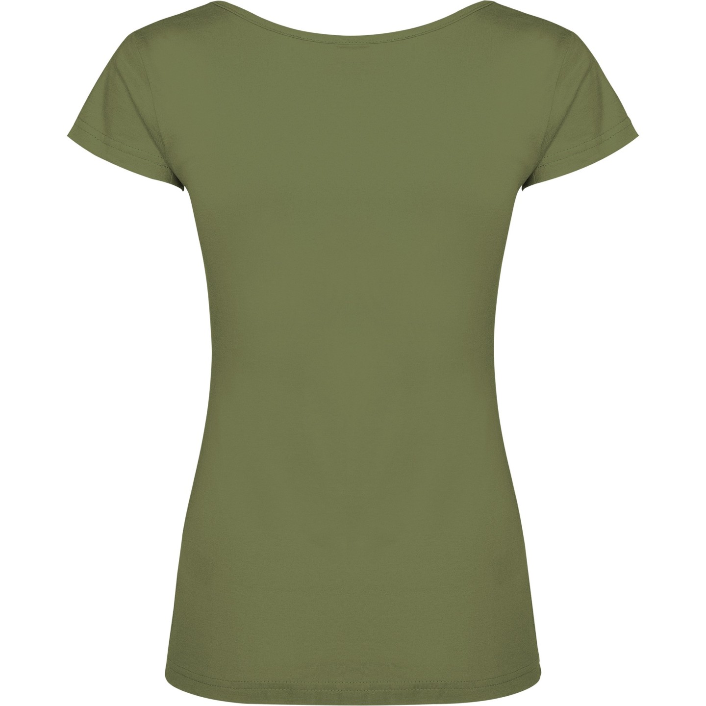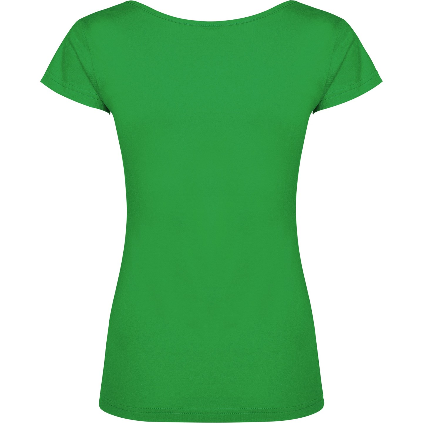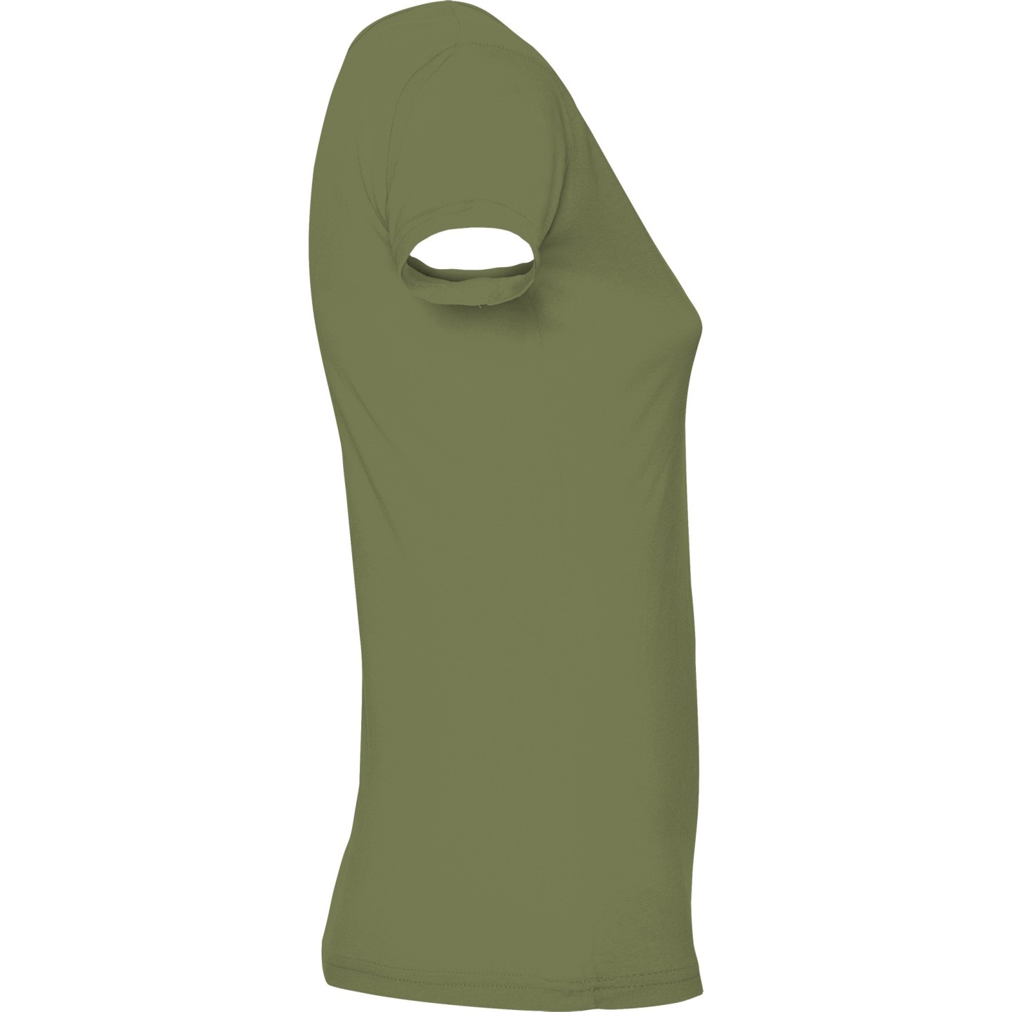 Camiseta de mujer con escote redondo ribeteado y pronunciado. Confeccionada en 100% algodón de punto liso, 155 g/m². Corte ajustado con costuras laterales y etiqueta removible. Ideal para personalizar con logotipo