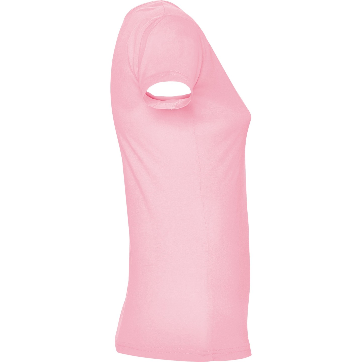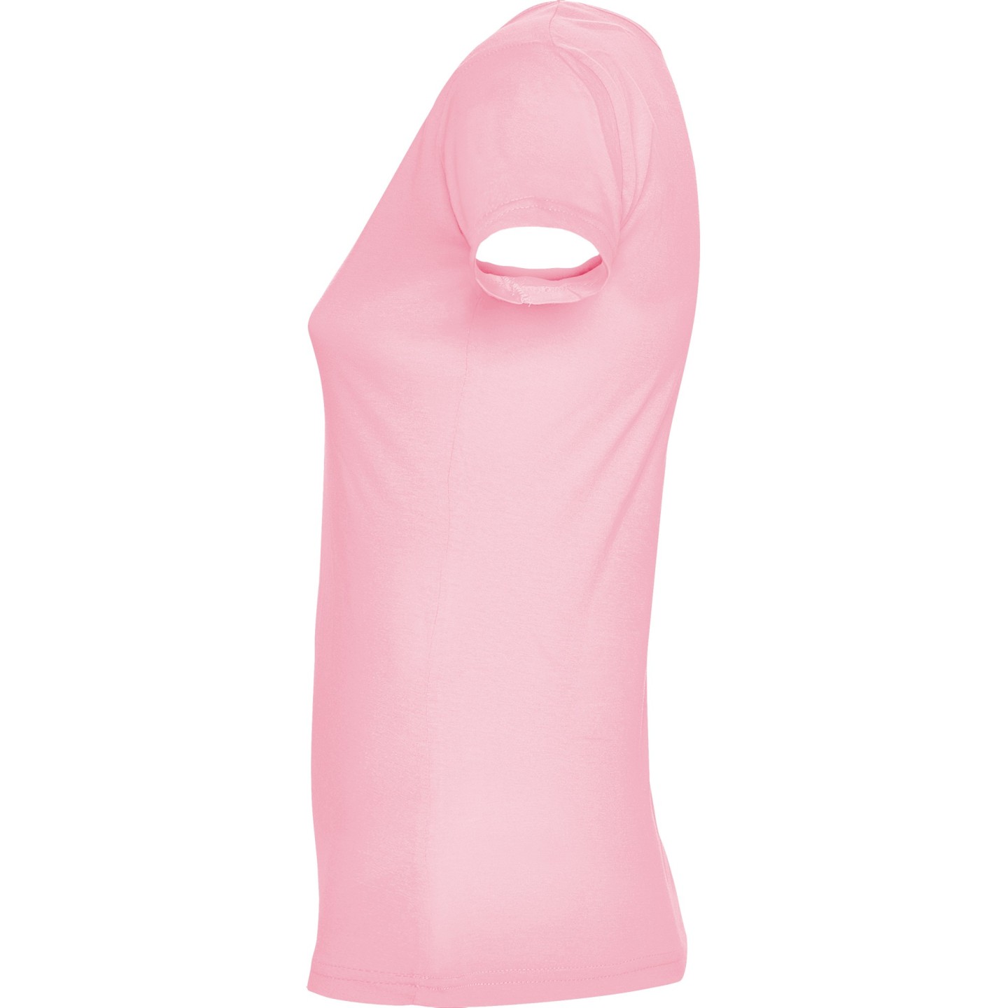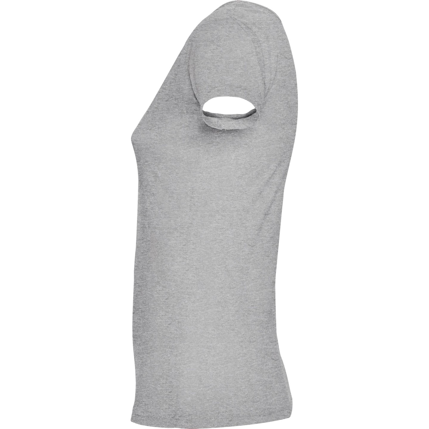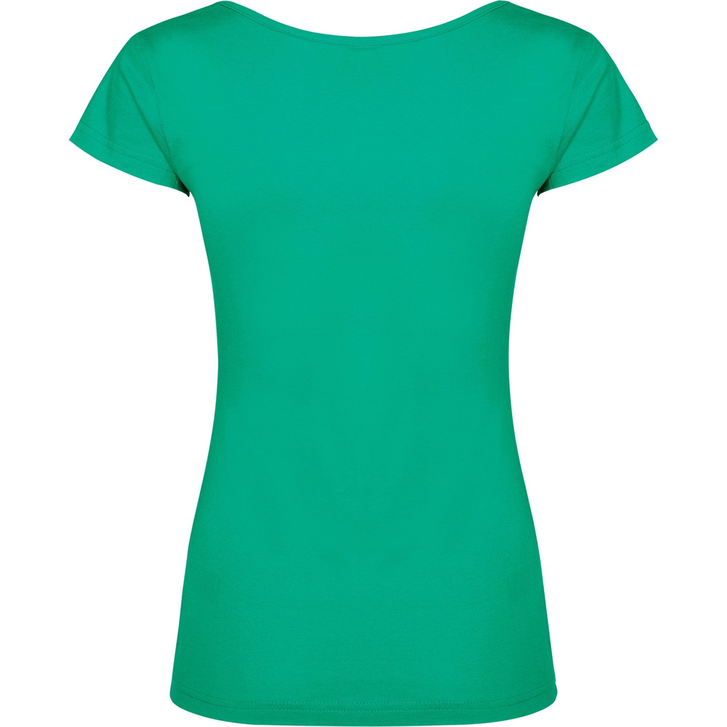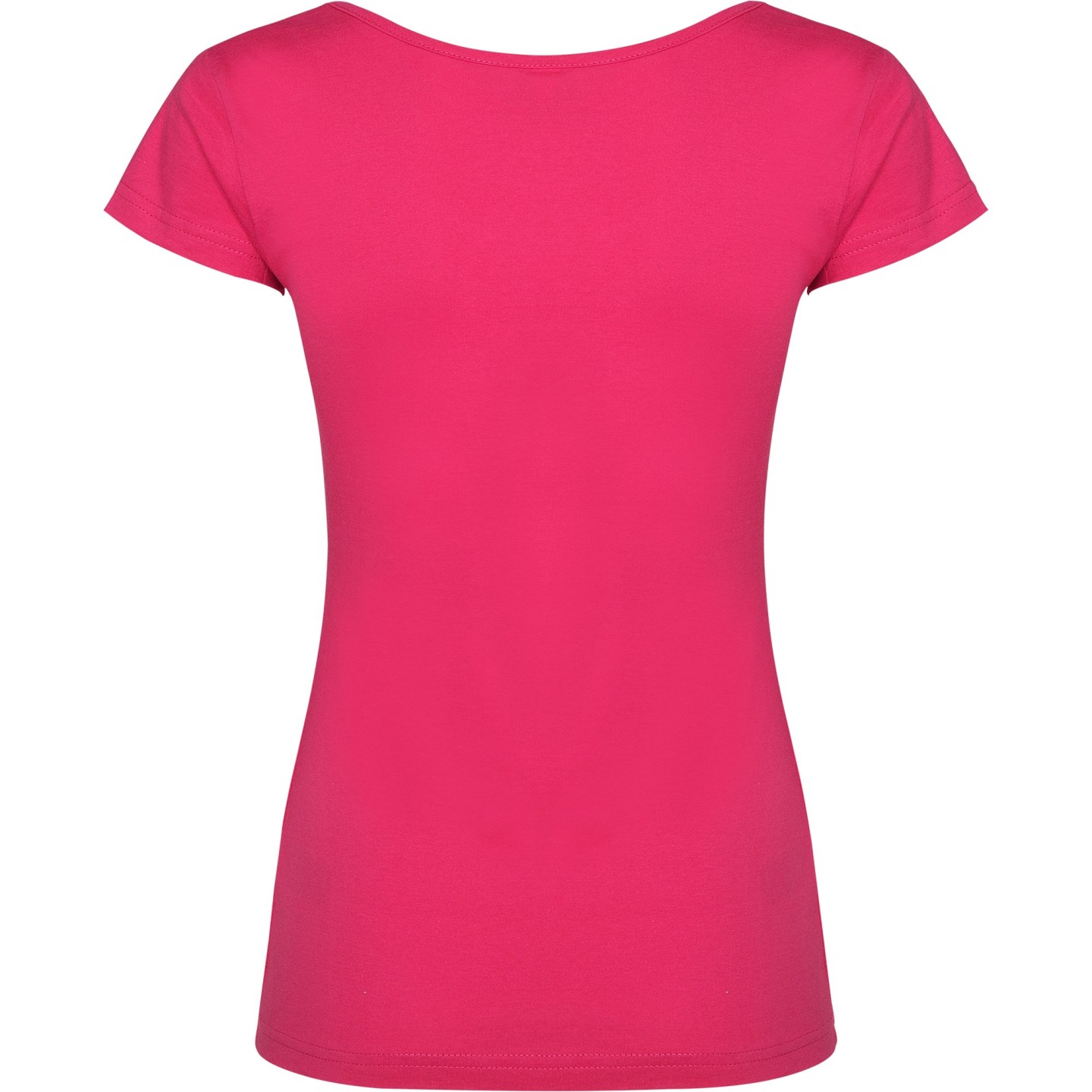 Camiseta de mujer con escote redondo ribeteado y pronunciado. Confeccionada en 100% algodón de punto liso, 155 g/m². Corte ajustado con costuras laterales y etiqueta removible. Ideal para personalizar con logotipo