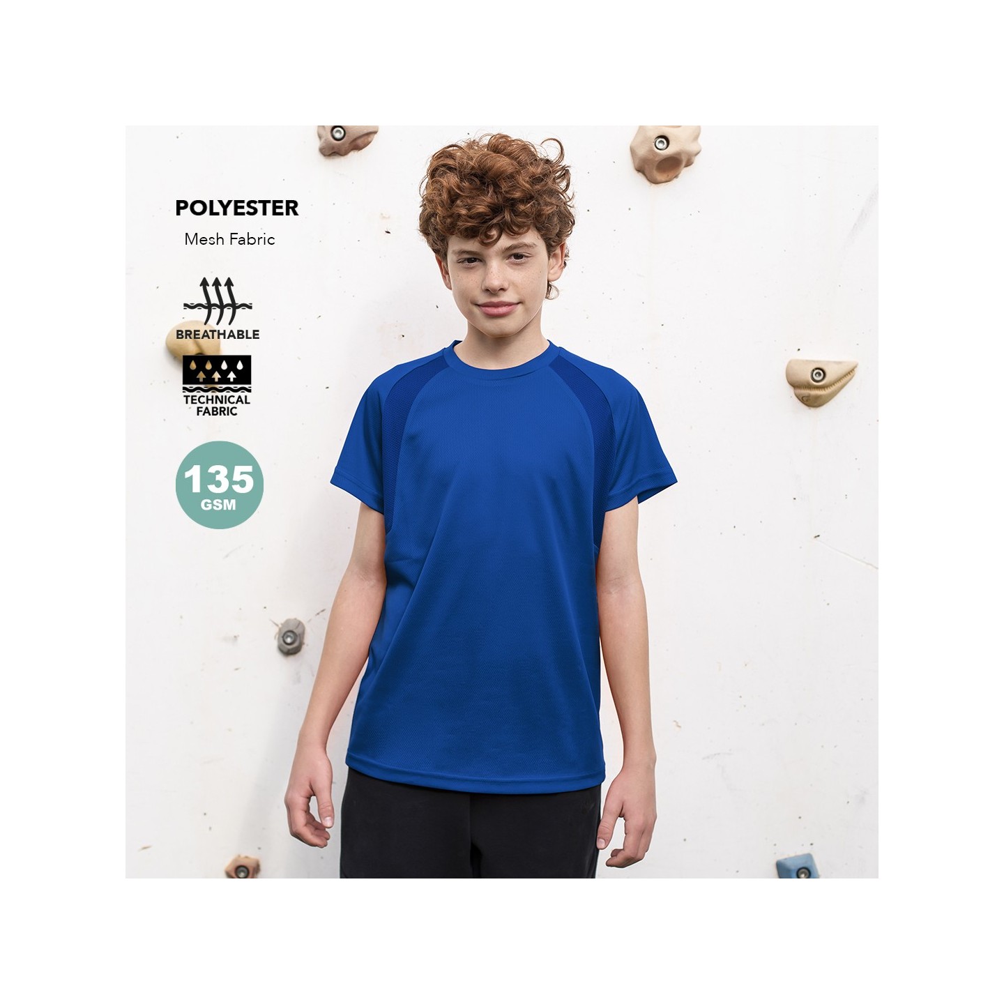 La Camiseta Niño Tecnic Sappor ofrece estilo y comodidad en poliéster transpirable. Bandas microperforadas. Tallas 4-5 a 10-12.