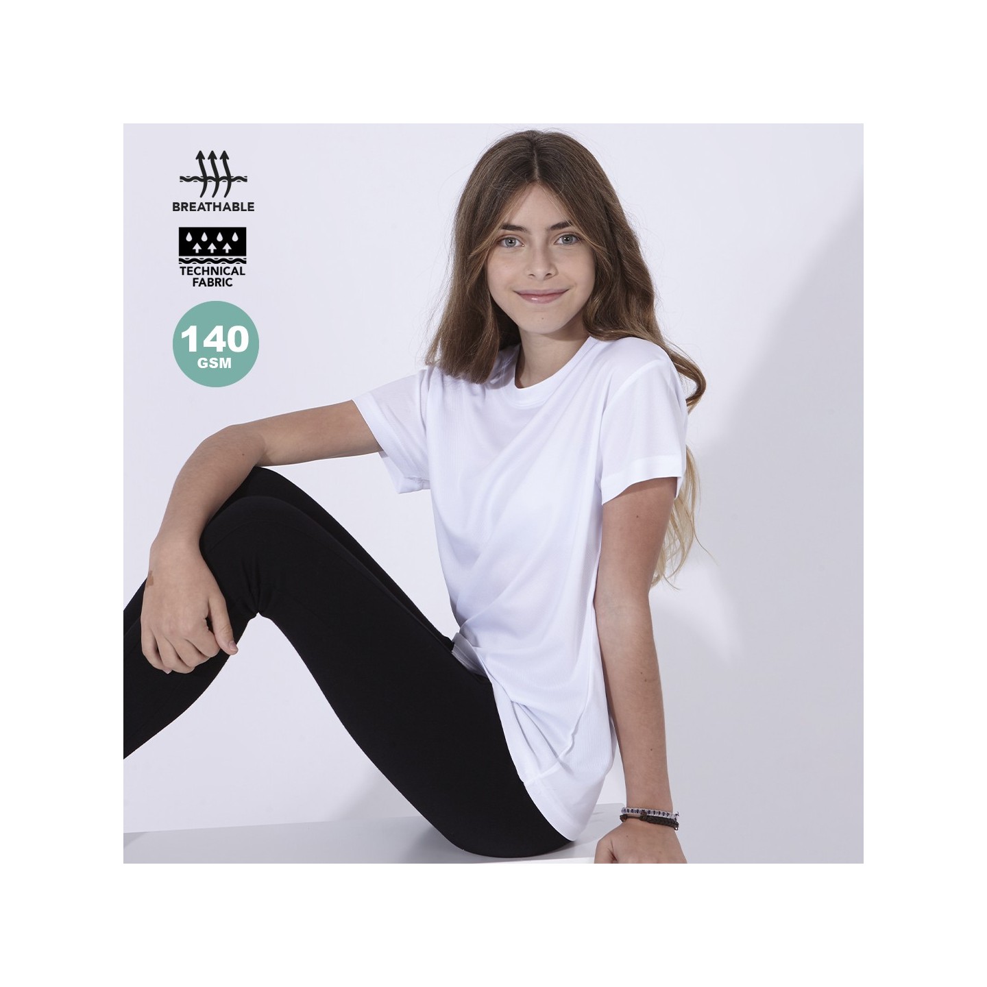Descubre la camiseta Krusly para niño, una prenda diseñada para combinar comodidad y estilo. Está confeccionada en un material 100% poliéster transpirable de 140g/m2, que proporciona una sensación suave y ligera al tacto, con la textura del algodón.