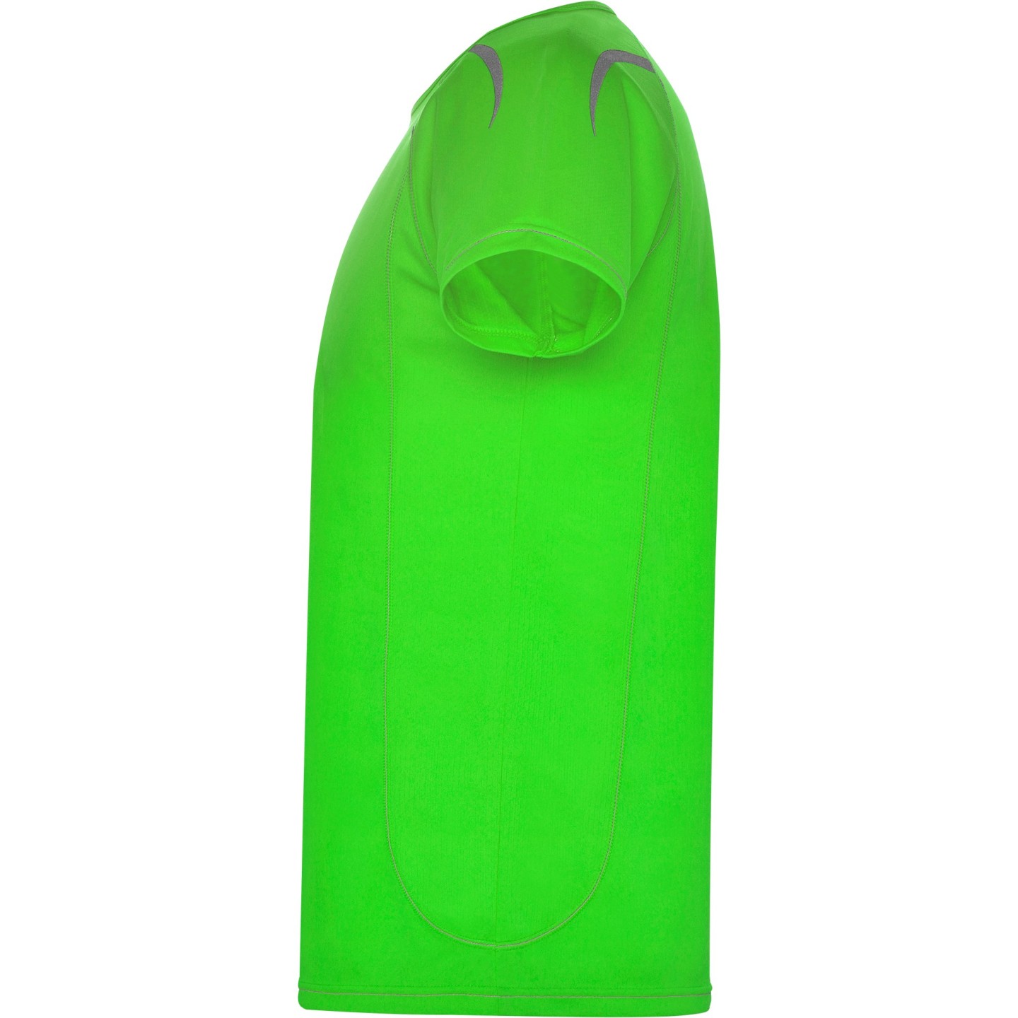 Camiseta técnica confeccionada en tejido punto liso, diseñada para ofrecer comodidad y rendimiento. De manga corta ranglán, con costuras en contraste que resaltan en bocamangas, bajo, cuello y laterales, proporcionando un acabado moderno y deportivo. Cuello viveado con el mismo tejido para mayor ajuste y durabilidad.