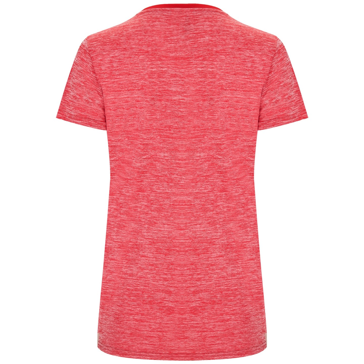 El patronaje en la espalda ligeramente más largo aporta un ajuste dinámico y estilizado, ideal para cualquier actividad física. Fabricada con 100% poliéster birds eye en la parte delantera y 100% poliéster space dye en la trasera, con un peso de 135 g/m², esta camiseta es transpirable y de fácil secado, permitiendo una óptima regulación de la humedad.