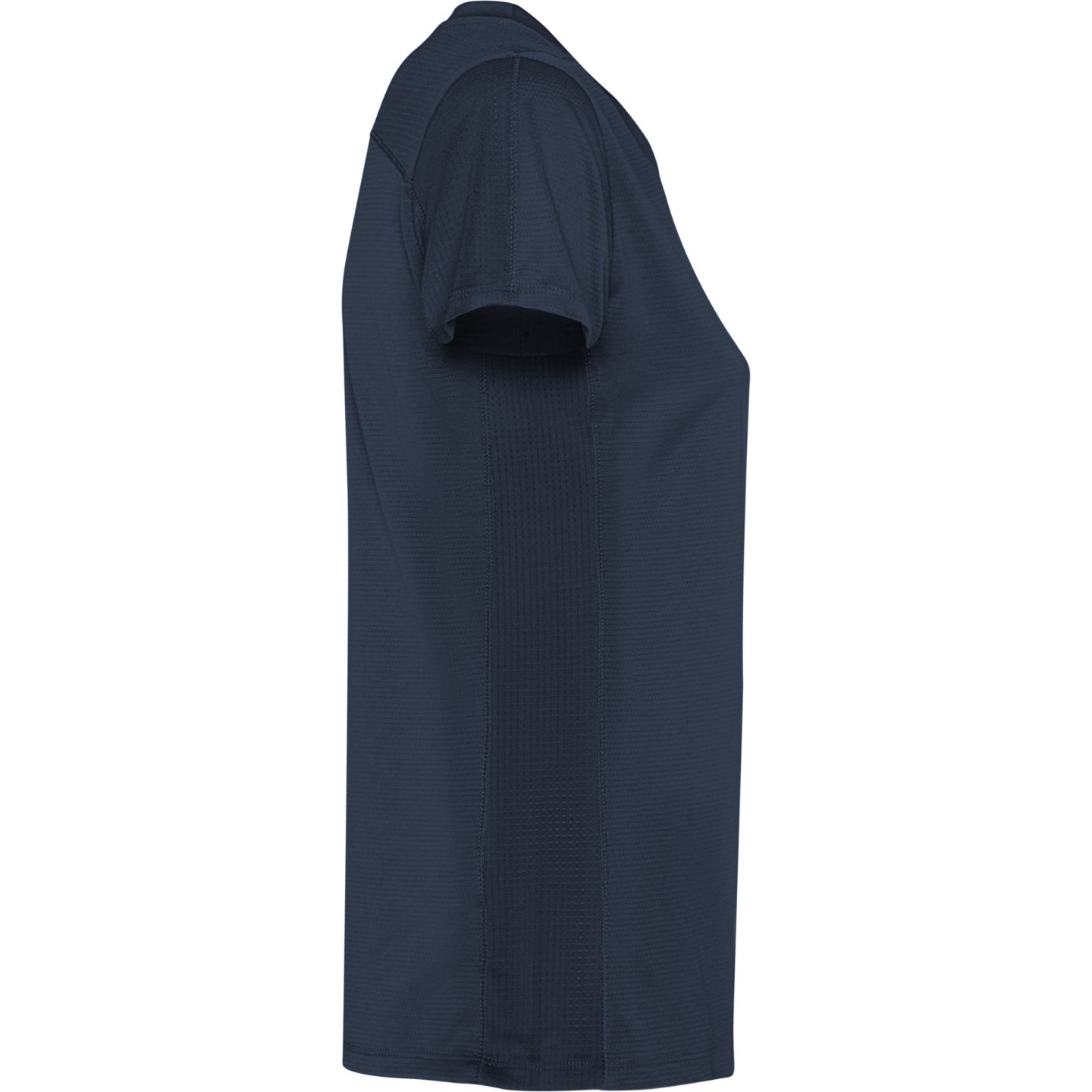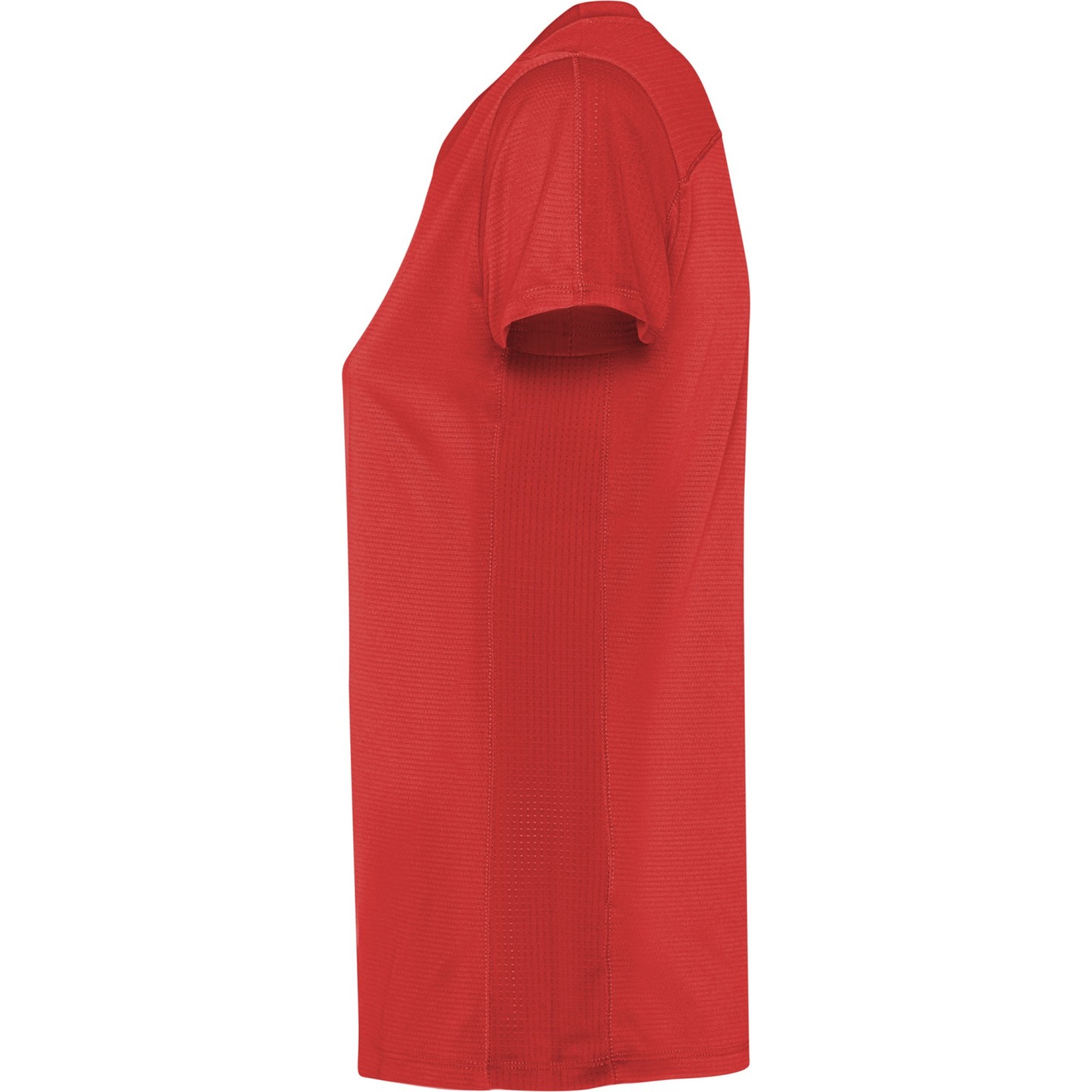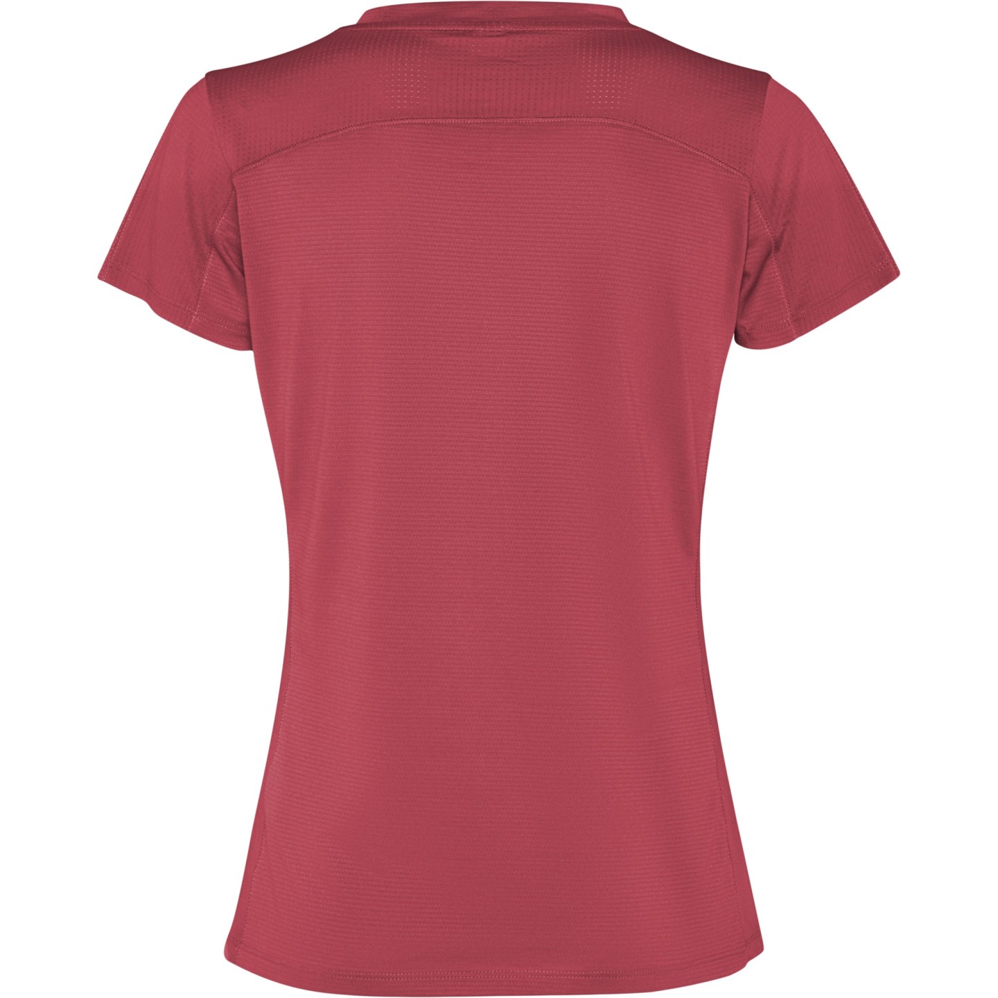 Camiseta técnica de mujer con tecnología Control Dry y tejido ligero de poliéster reciclado. Diseño cómodo y transpirable con cuello cruzado, costuras ergonómicas y bajo redondeado. Ideal para personalización con logotipo