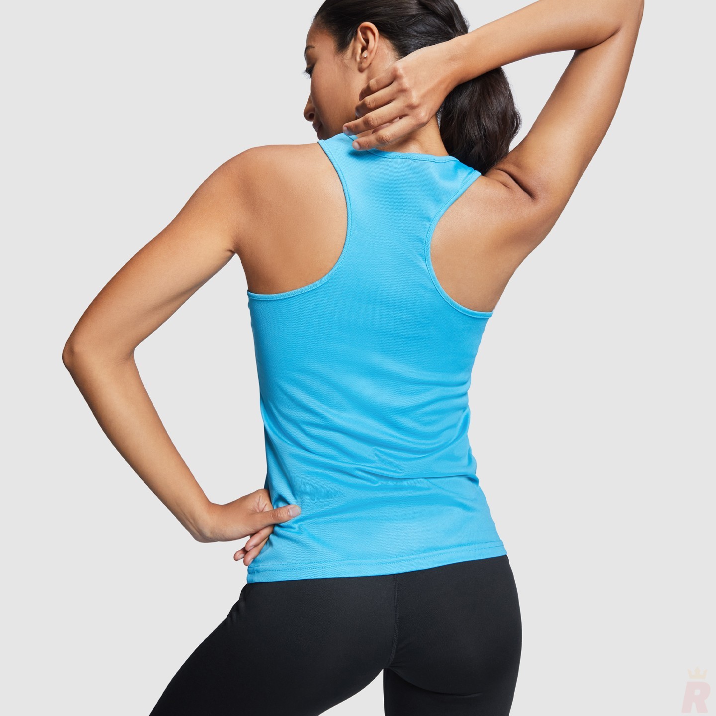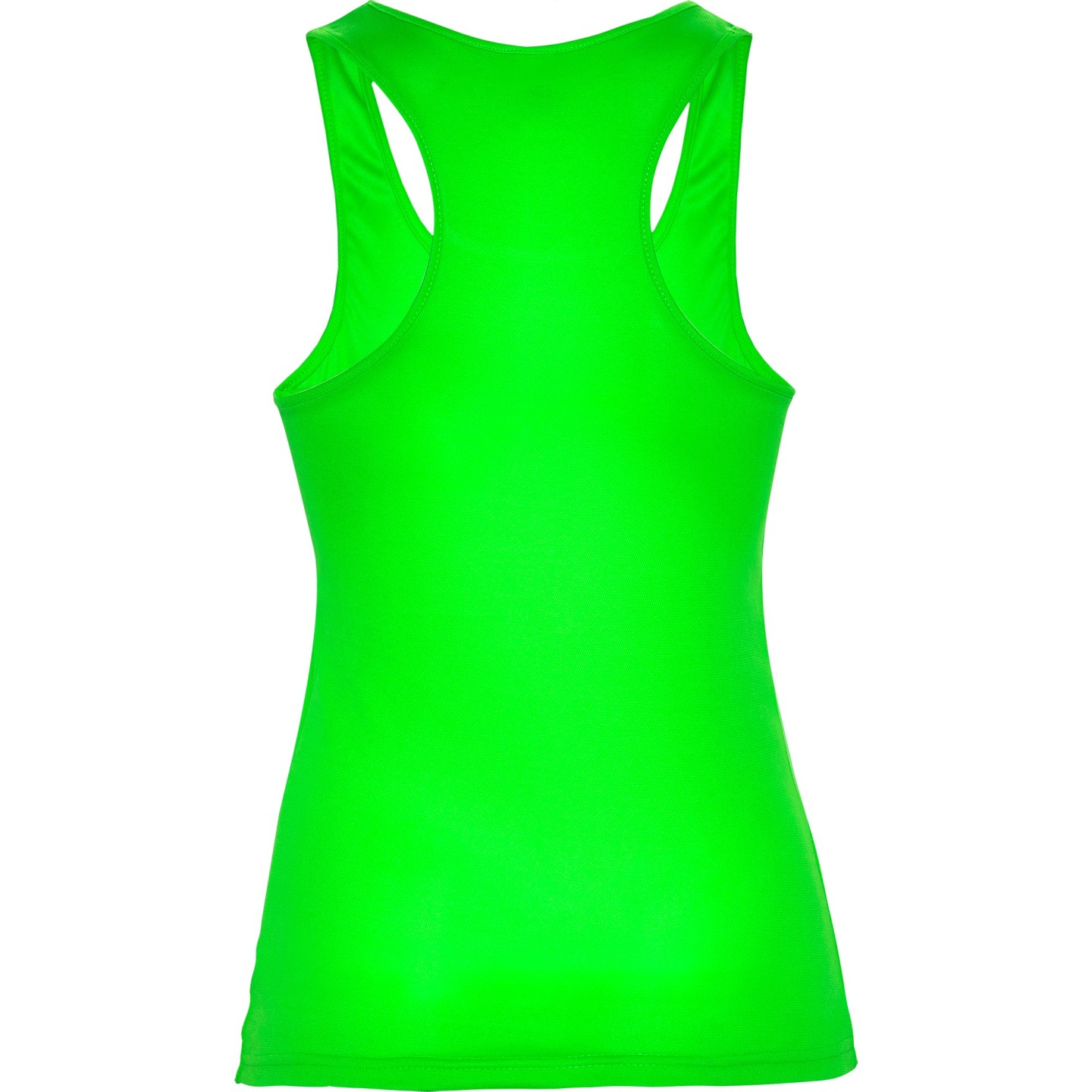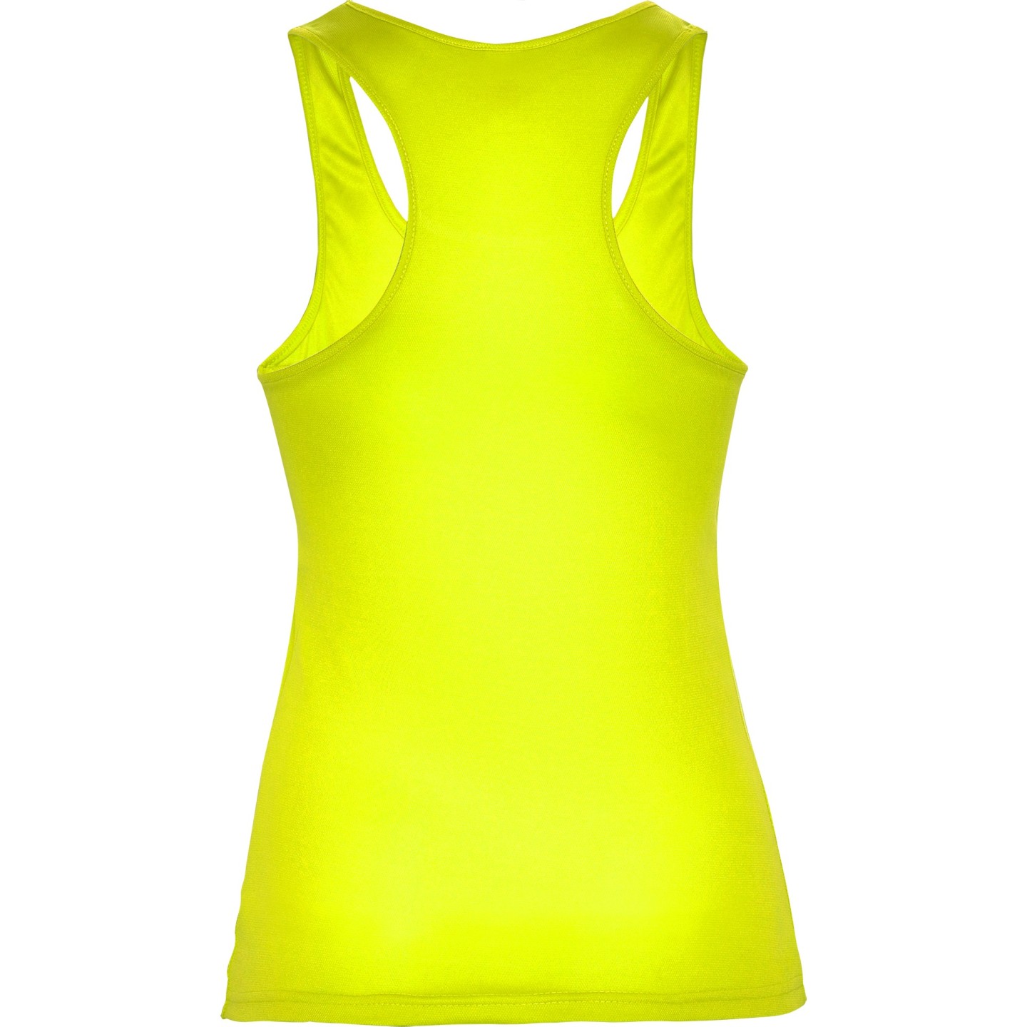 Camiseta técnica entallada para mujer con tejido transpirable, espalda nadadora y etiqueta removible. Ideal para deporte o personalización con logotipo