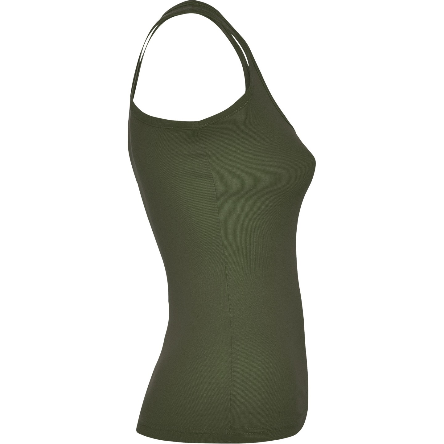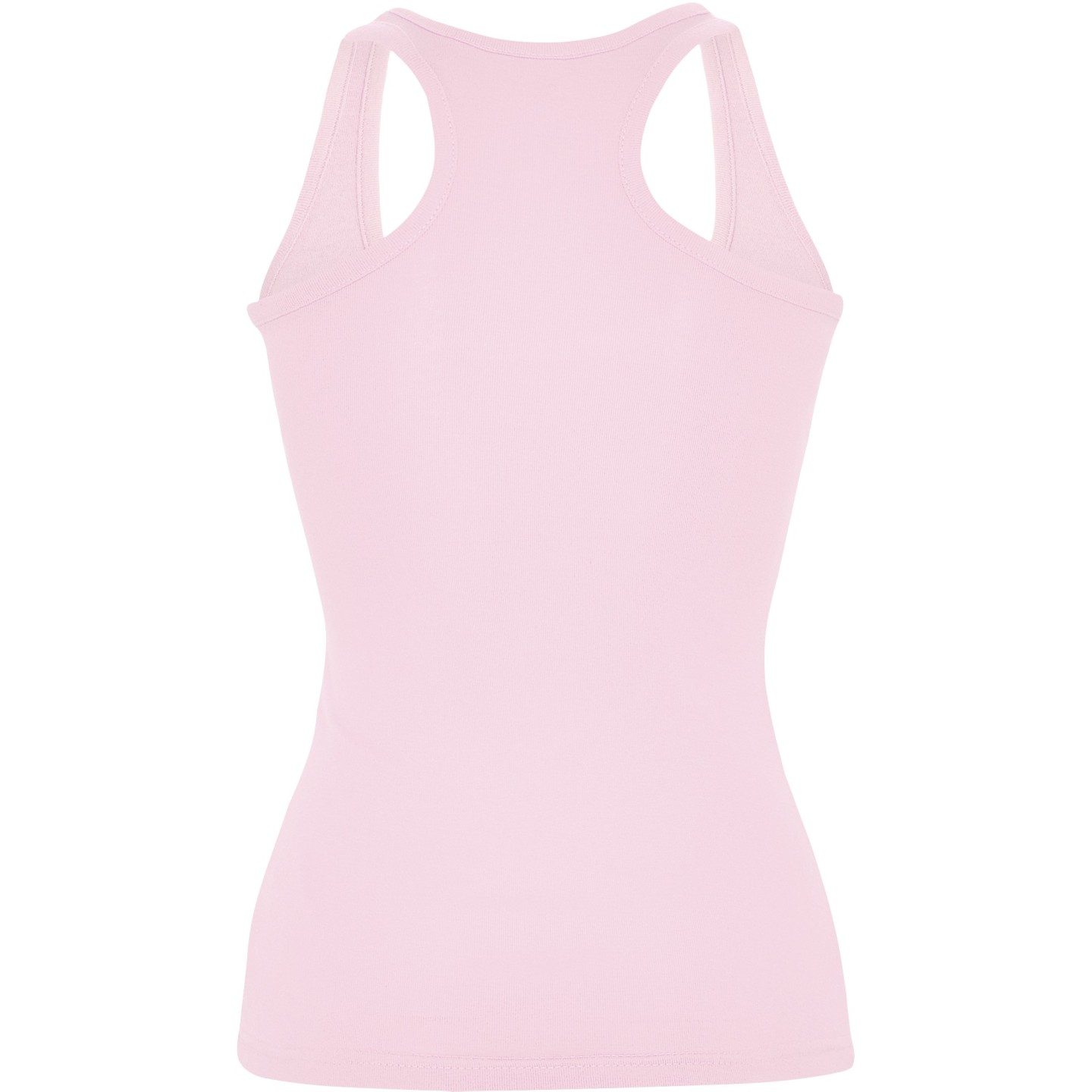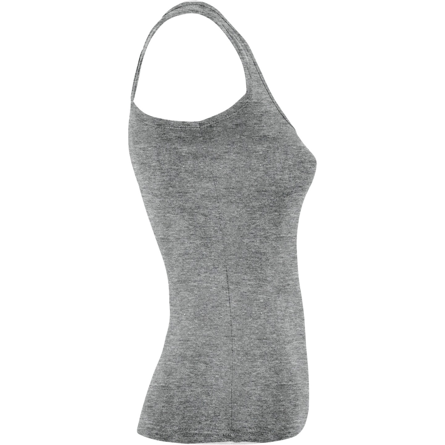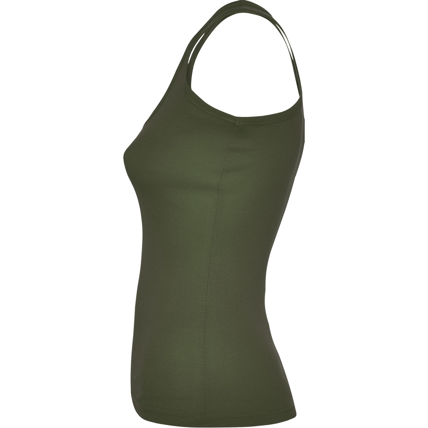 Camiseta de tirantes entallada para mujer con espalda nadadora, costuras laterales y etiqueta removible. Fabricada en algodón canalé 1x1 de 220 g/m² para máximo confort y durabilidad