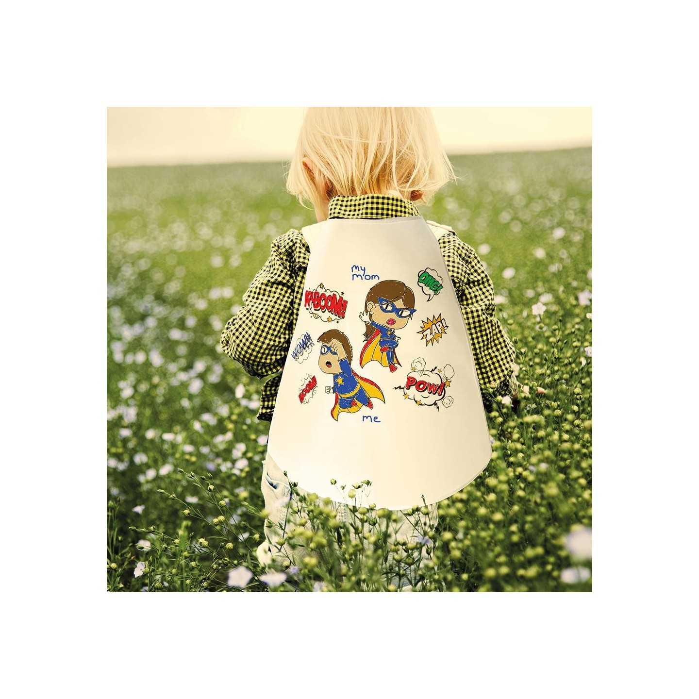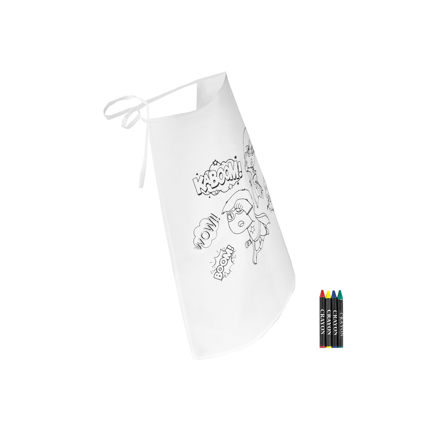 La Capa Pintar Superhero inspira la creatividad de los pequeños héroes.Fabricada en Non woven, dibujo para pintar, incluye 4 ceras. Medidas 48x50 cm. Regalo único y educativo