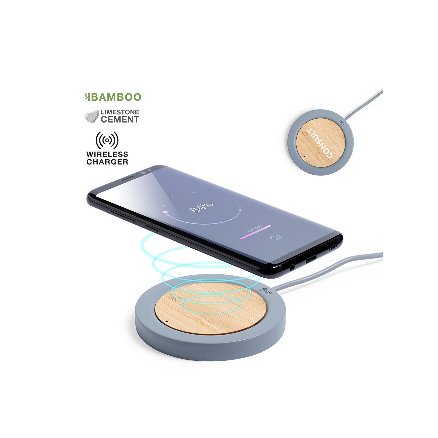 La fusión de materiales naturales y tecnología se unen en este cargador inalámbrico único. El bambú y el cemento de piedra caliza se entrelazan en un diseño armonioso que destaca en cualquier espacio de carga, aportando un toque distintivo y elegante.