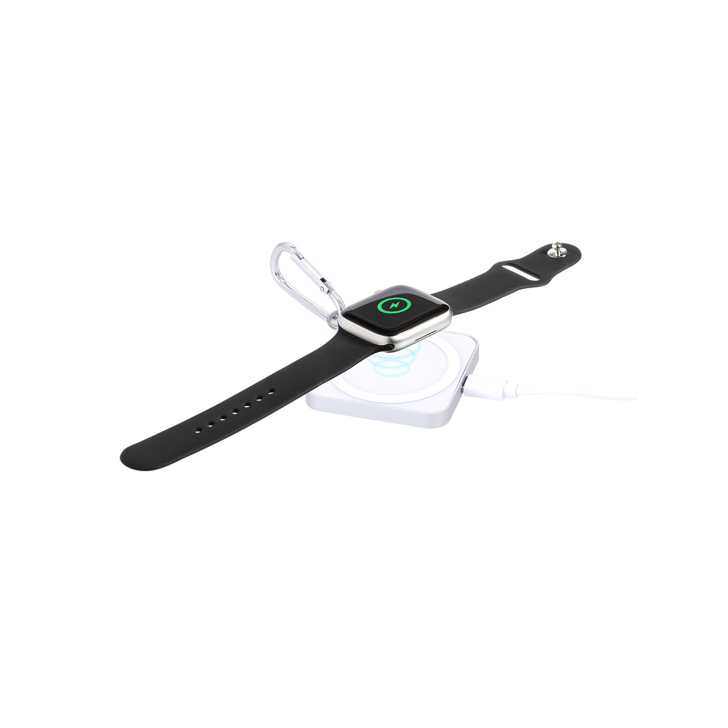 Una de sus características más destacadas es la fijación magnética, que asegura que tu dispositivo permanezca en su lugar durante la carga, brindándote una experiencia sin preocupaciones. Además, incluye un mosquetón metálico que facilita su transporte, permitiéndote llevarlo contigo a cualquier lugar.