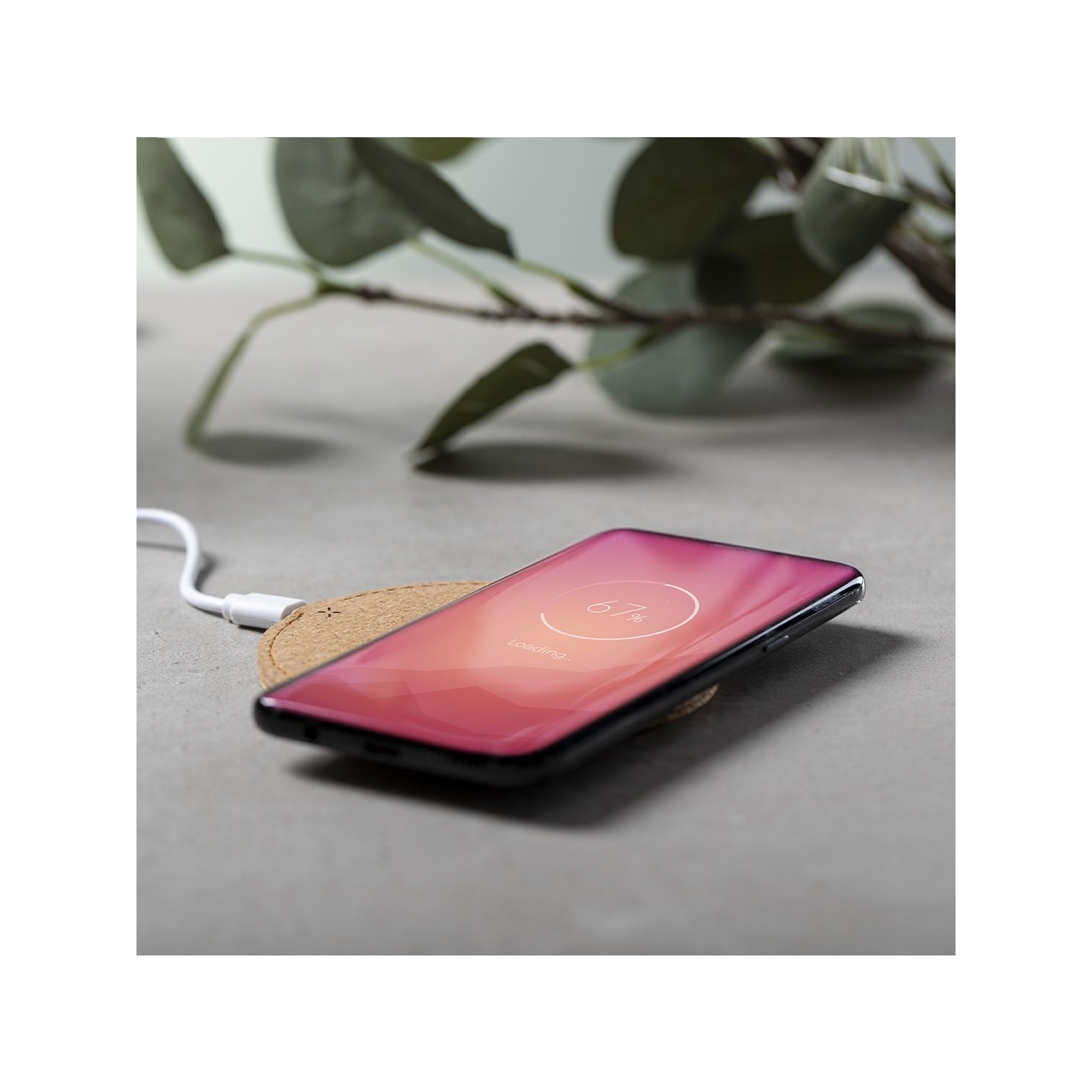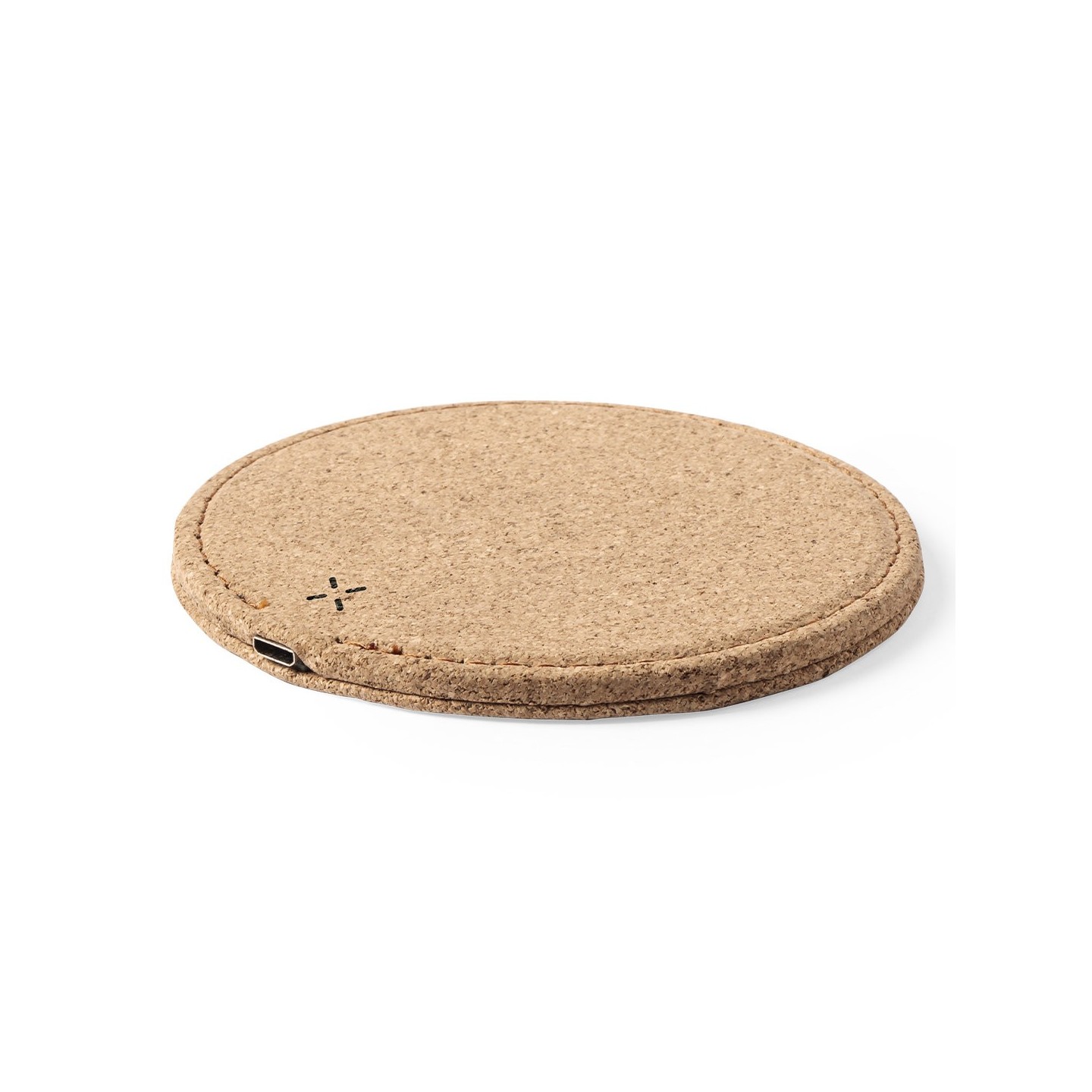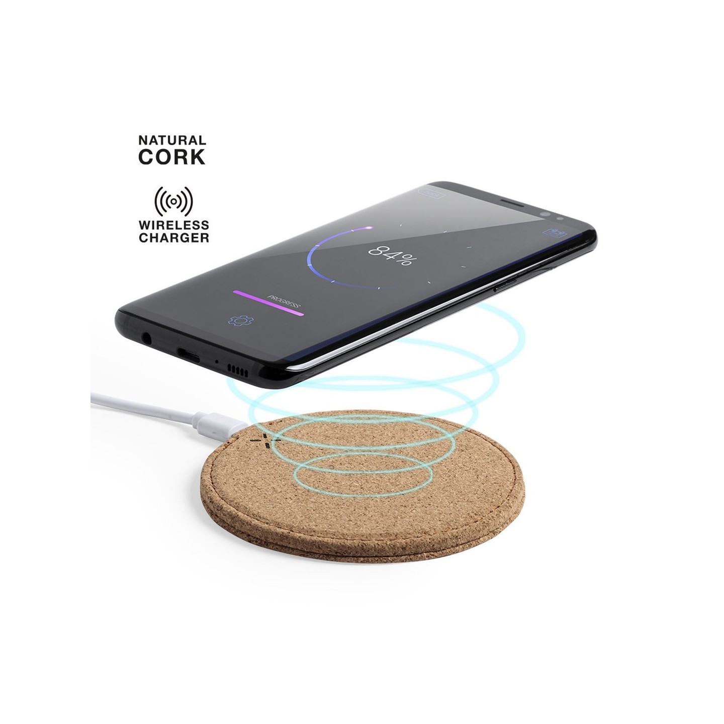 El Cargador Kibox es inalámbrico de corcho natural, ecológico y seguro. Diseño circular, LED indicador y protección contra sobrecargas. ¡Regalo sostenible para empresas!
