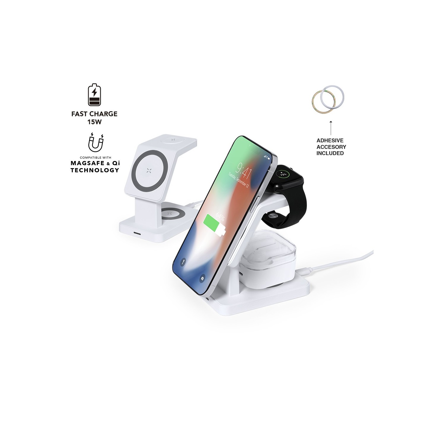 El Cargador Krastop es un multicargador inalámbrico 15W con soporte para smartphone, auriculares y smartwatch. ¡Carga múltiple y eficiente en uno solo!