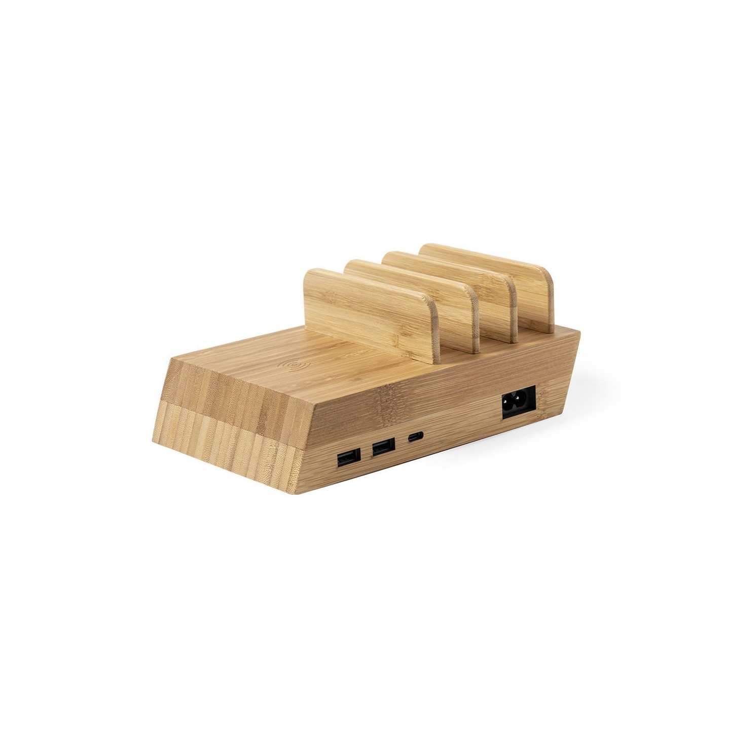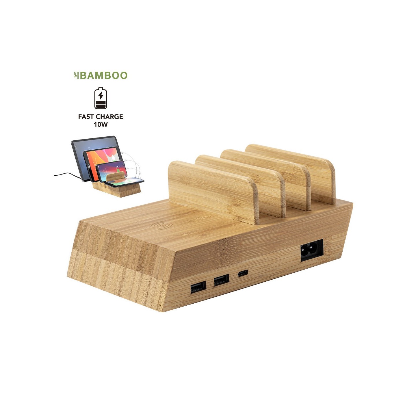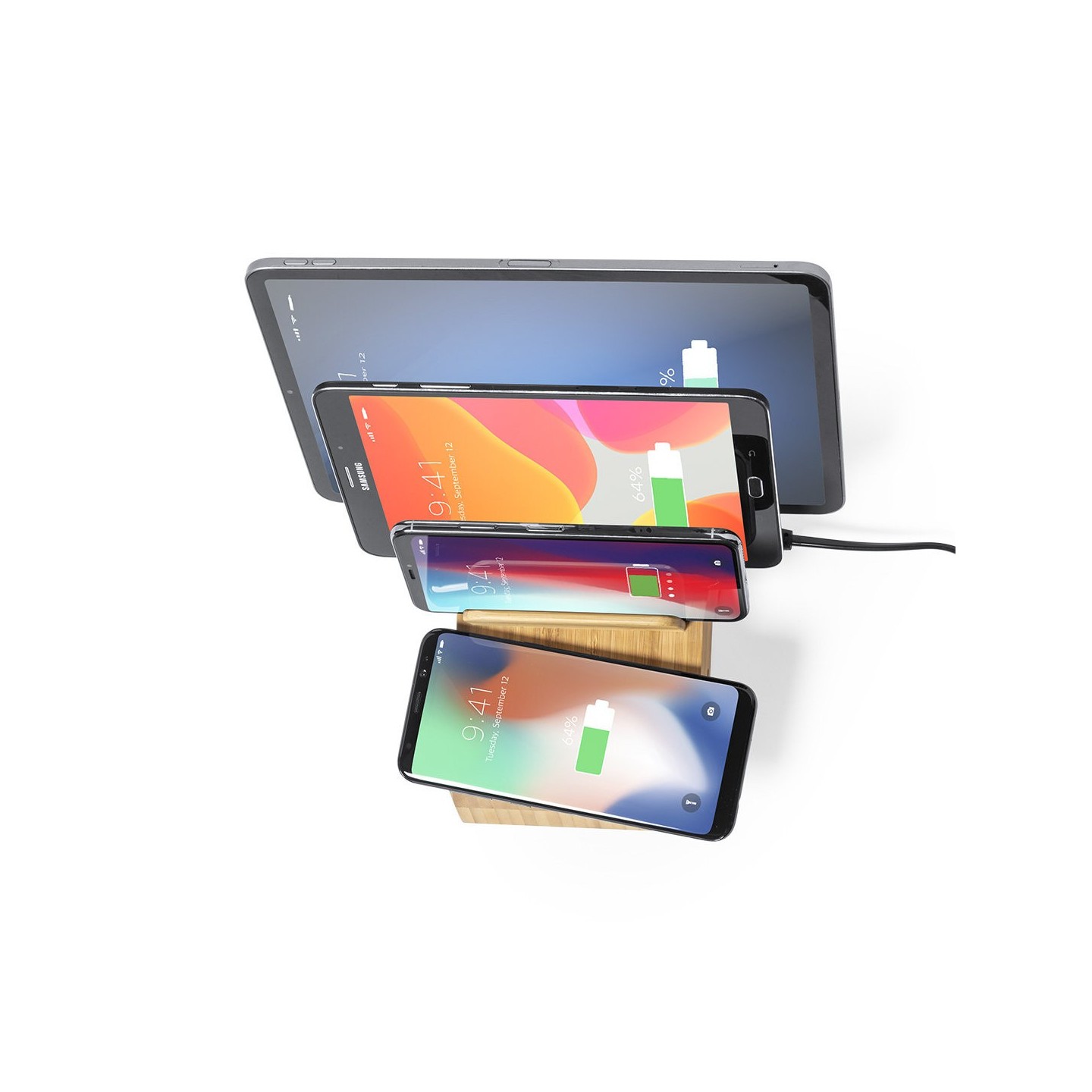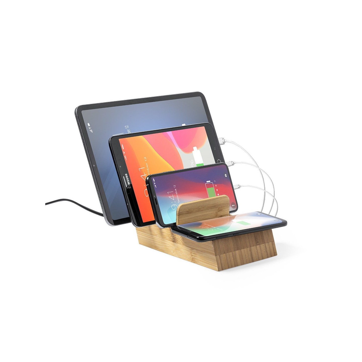 La Estación Carga Lupint es inalámbrica y carga hasta 4 dispositivos simultáneamente. Diseño eco en bambú. ¡Regalo funcional y sostenible!