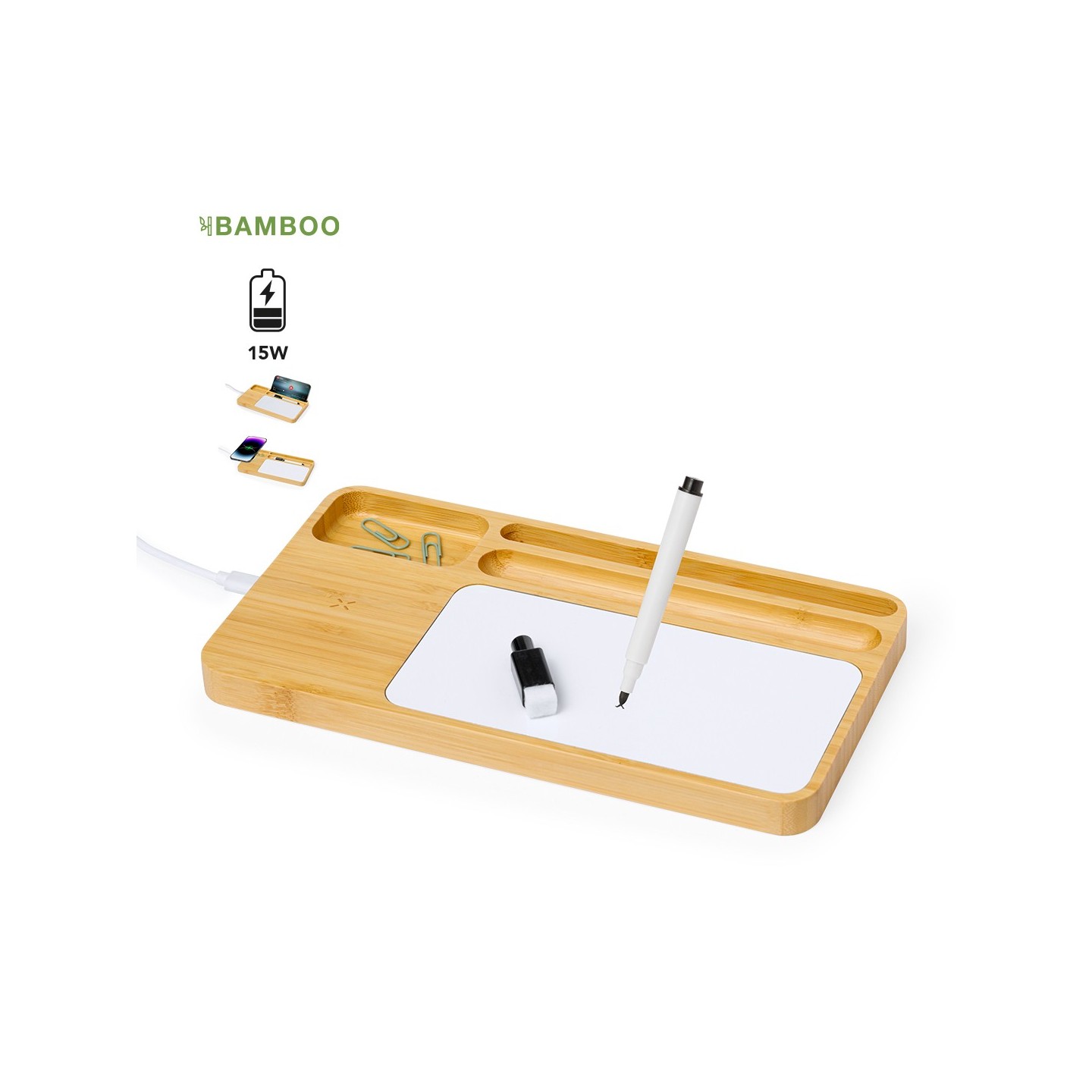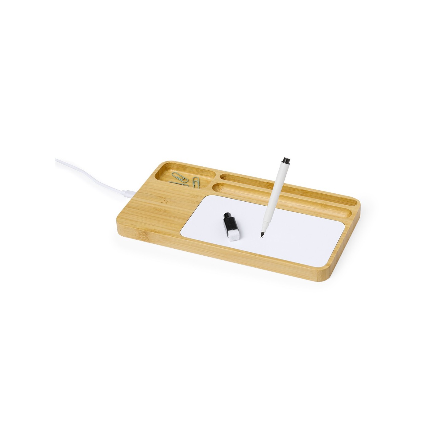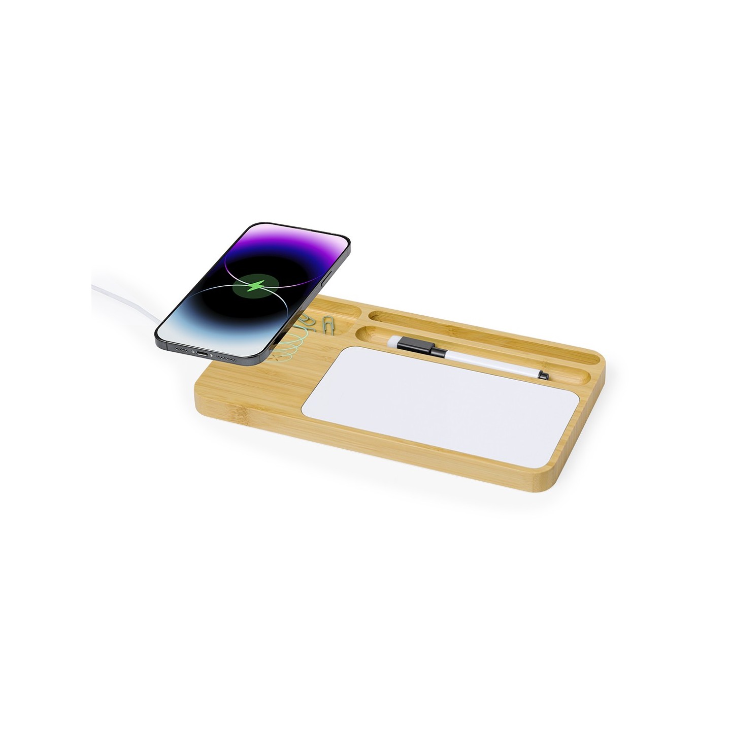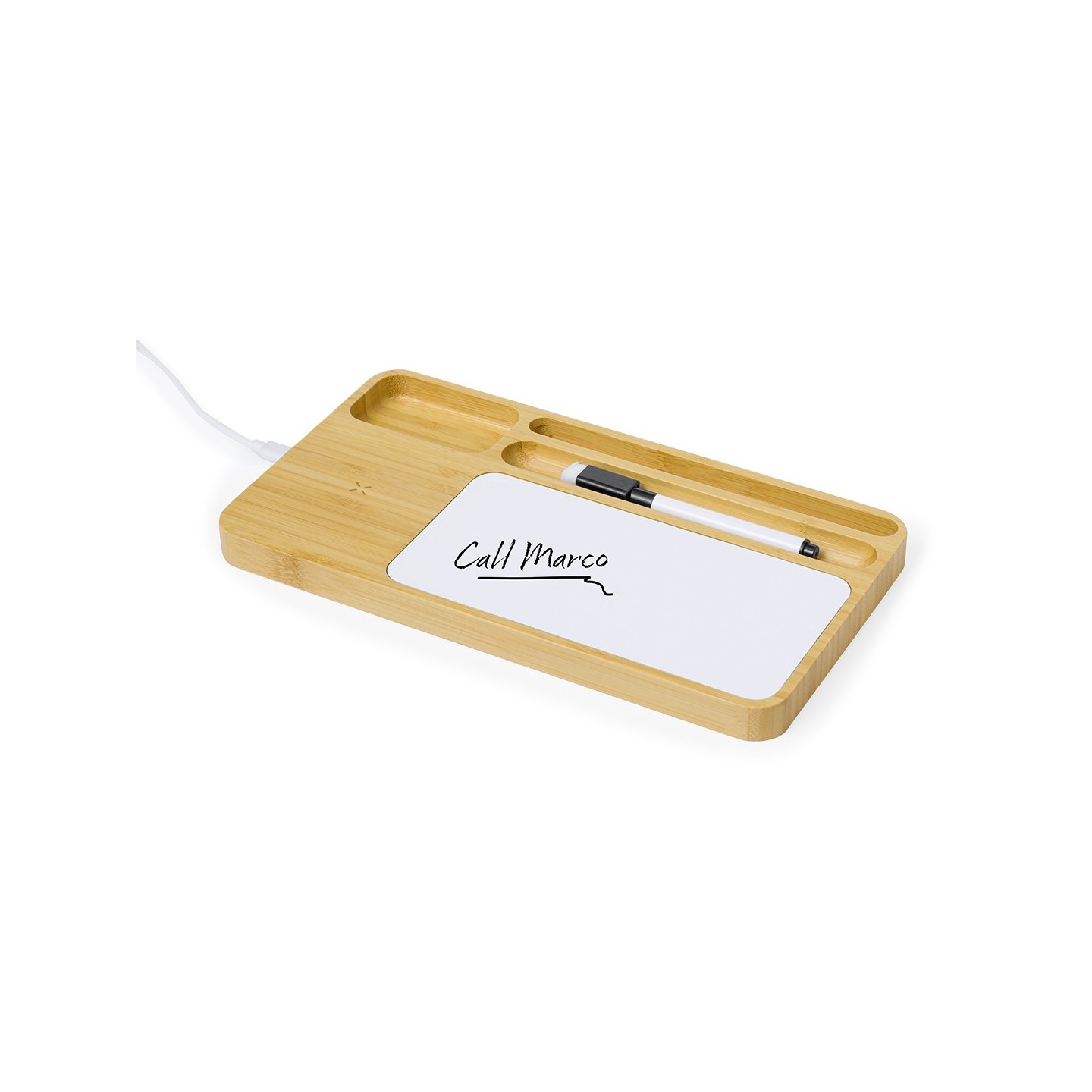 El Cargador Organizador Lautrec es inalámbrico, con soporte para smartphone, pizarra de notas y compartimento extra. Personalizable con tu logo