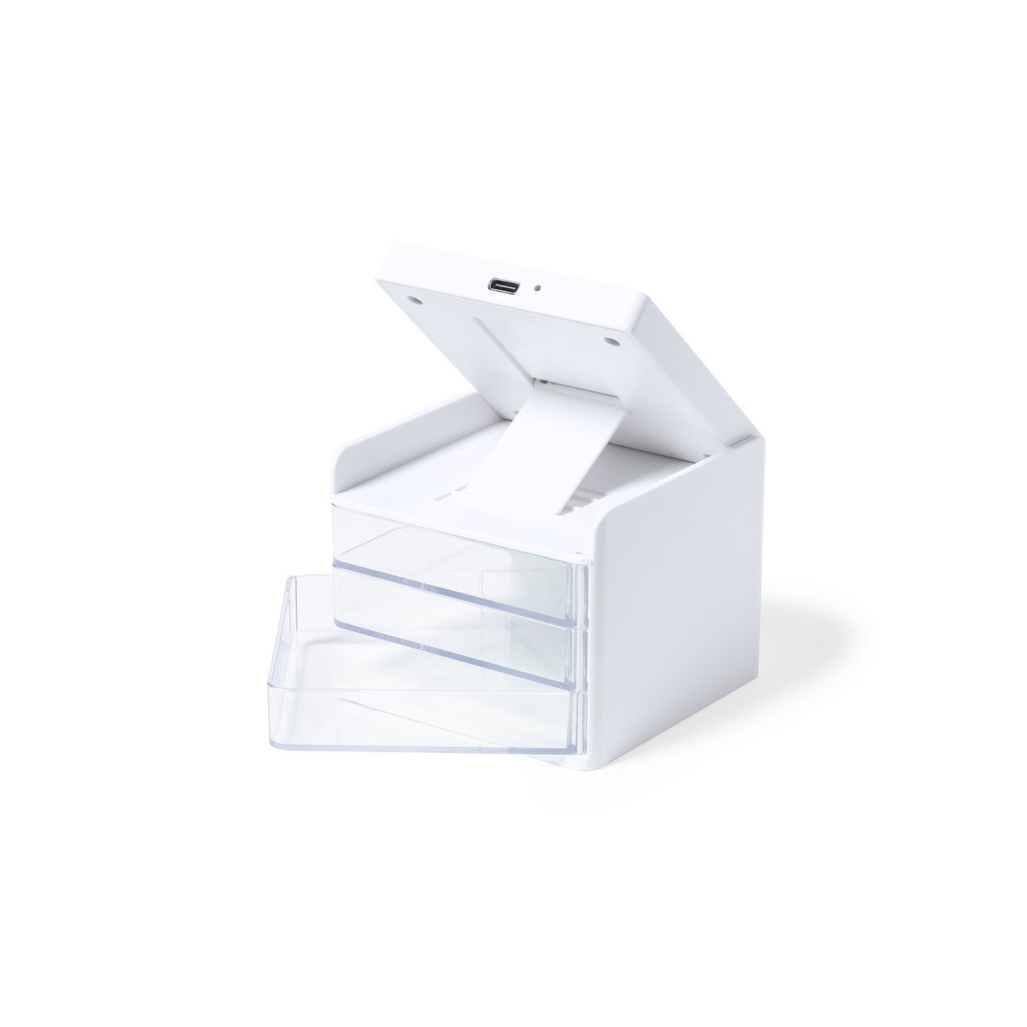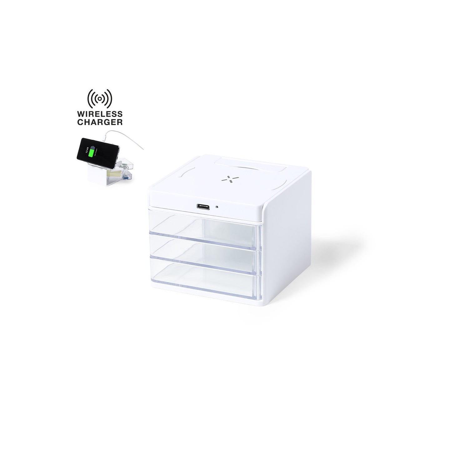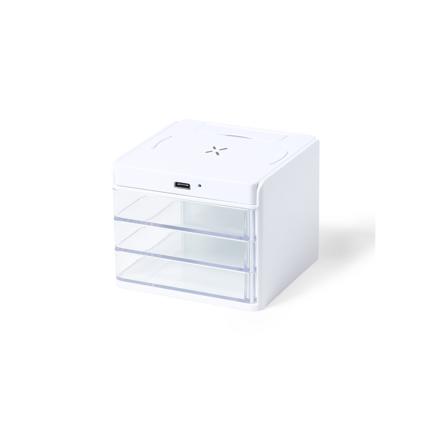 Además de su función de carga inalámbrica, este organizador viene equipado con 3 compartimentos de almacenaje transparentes y extraíbles, lo que te permite mantener tus accesorios y dispositivos perfectamente ordenados y al alcance de la mano.