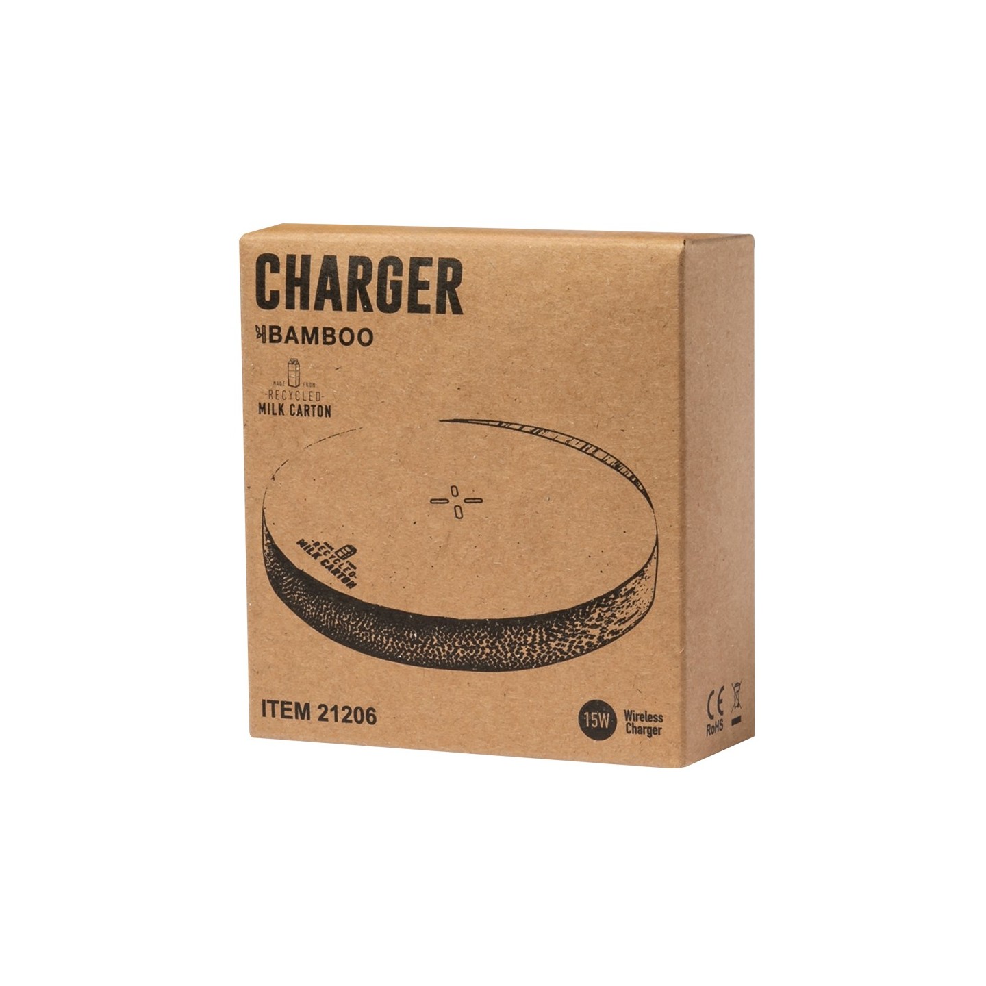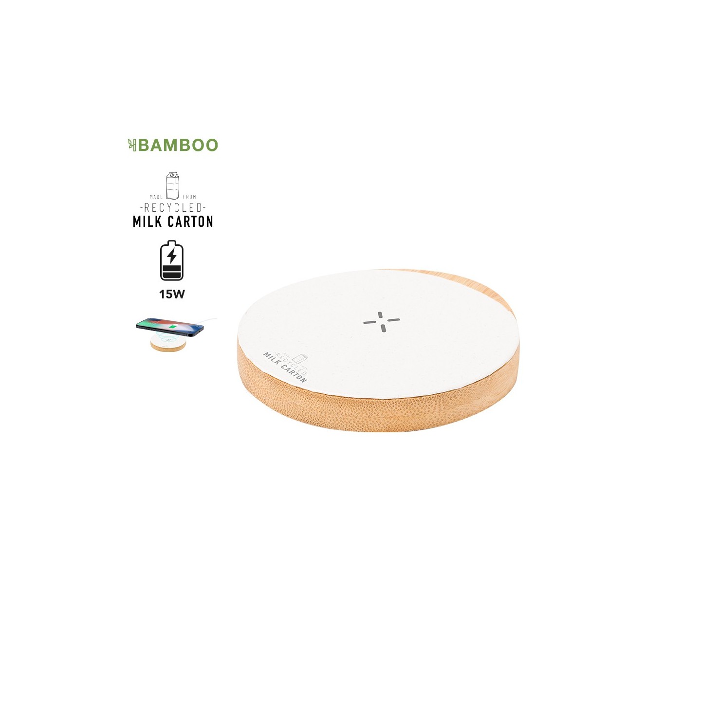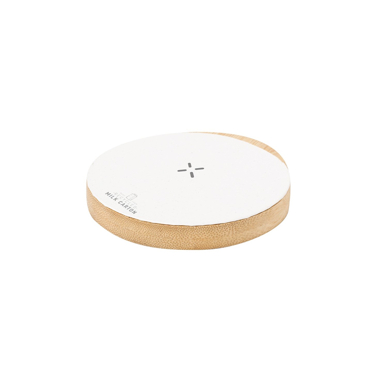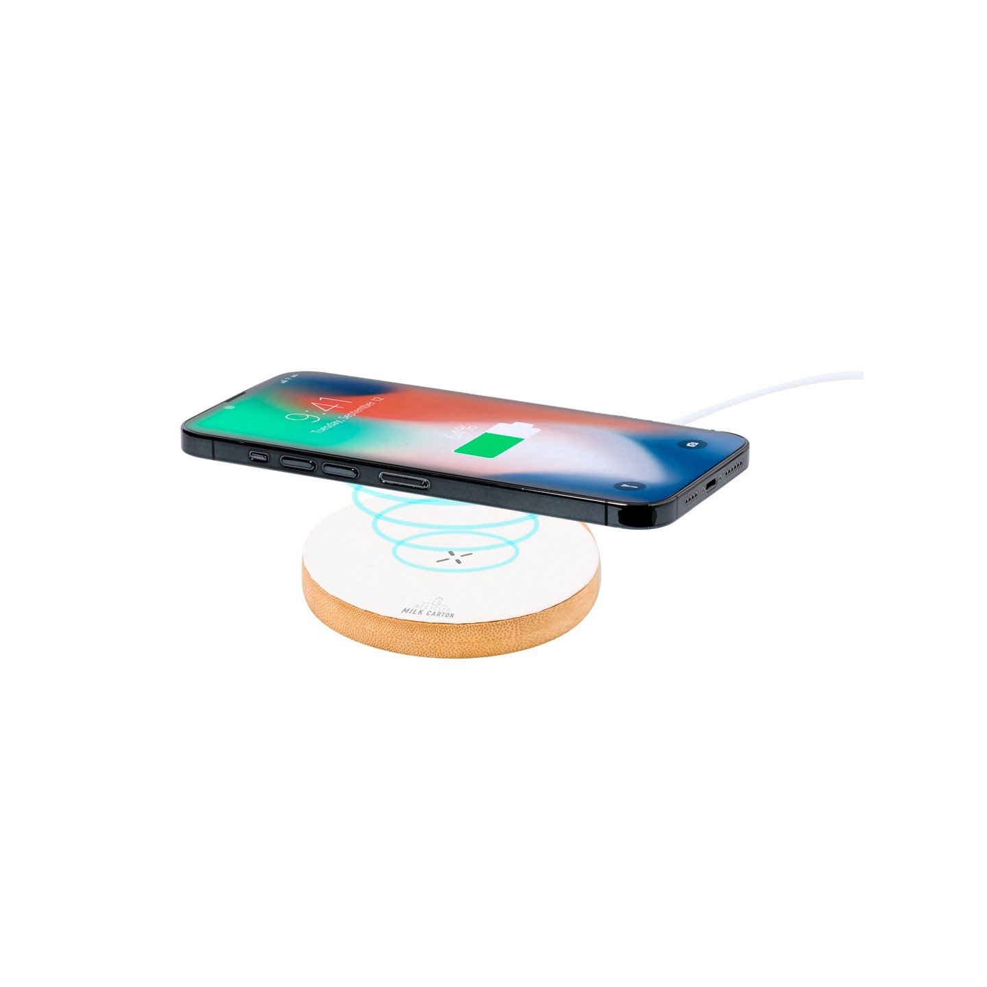 El Cargador inalámbrico Panther es sostenible y elegante. Recargable con material reciclado de cartones de leche y base de bambú. Personalizable con tu logo.