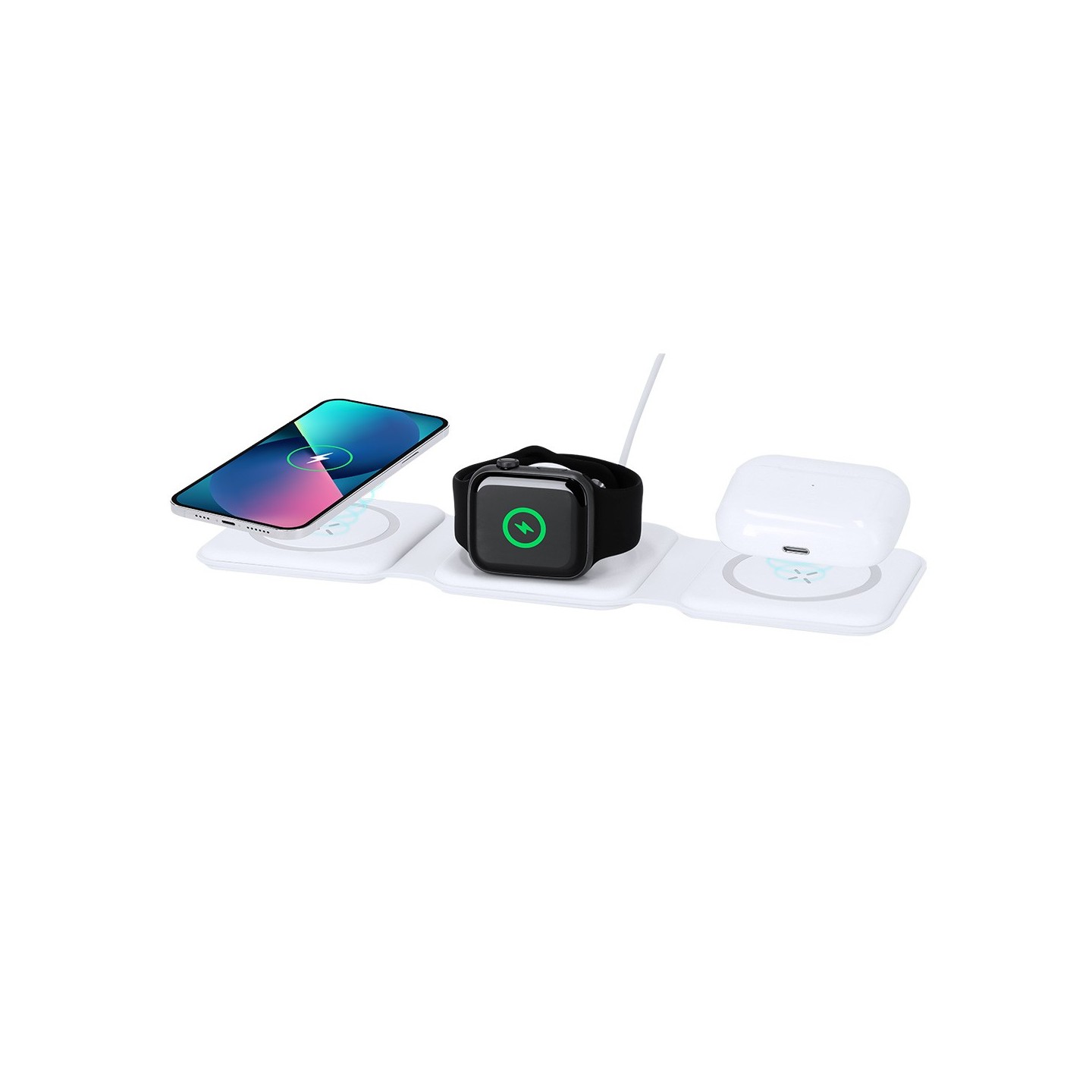 Descubre el Cargador Tardim, un innovador cargador inalámbrico magnético de 15W que transforma la forma en que cargas tus dispositivos. Diseñado para la carga simultánea de tu smartphone, auriculares y smartwatch, este gadget todo en uno es la solución perfecta para quienes buscan comodidad y eficiencia en su día a día.