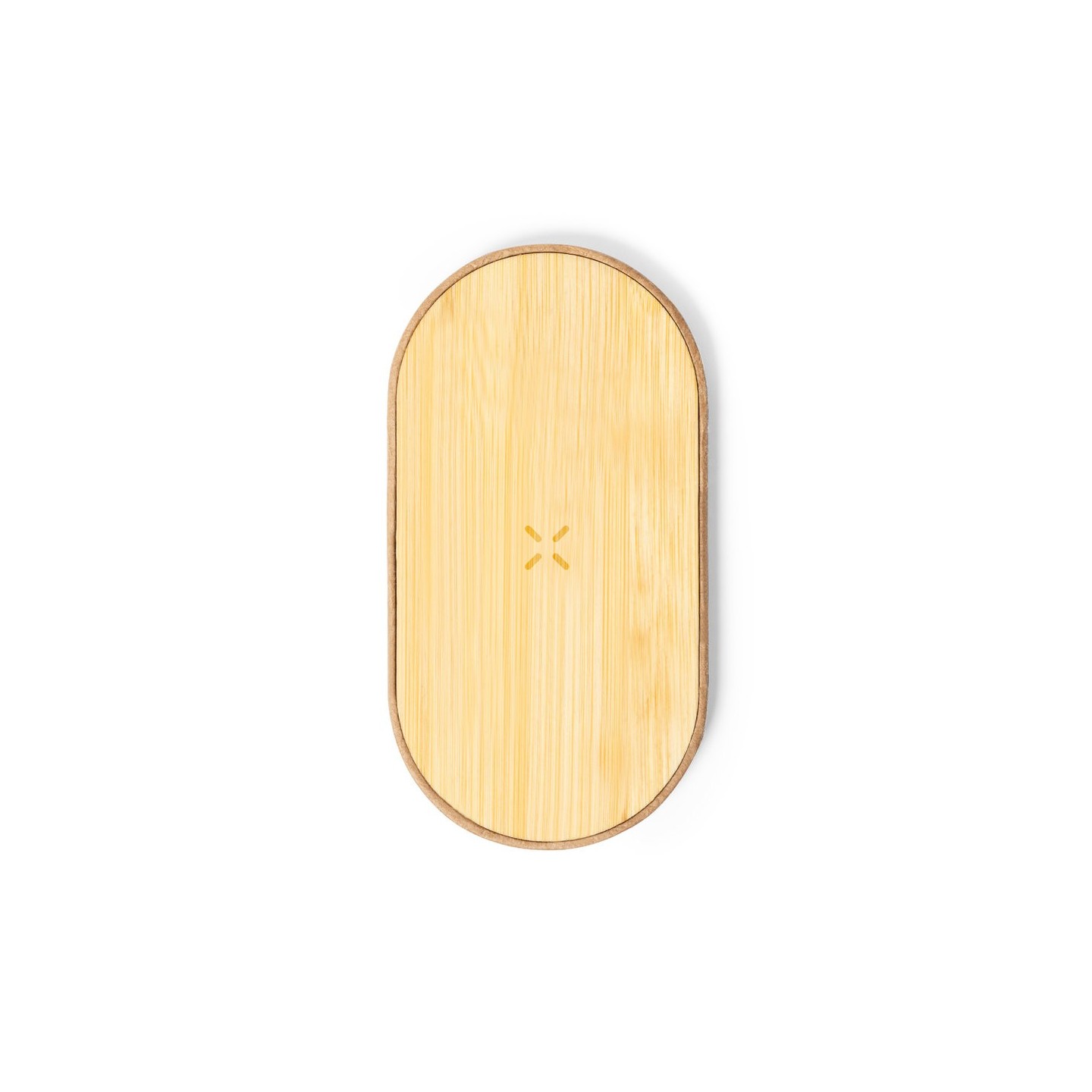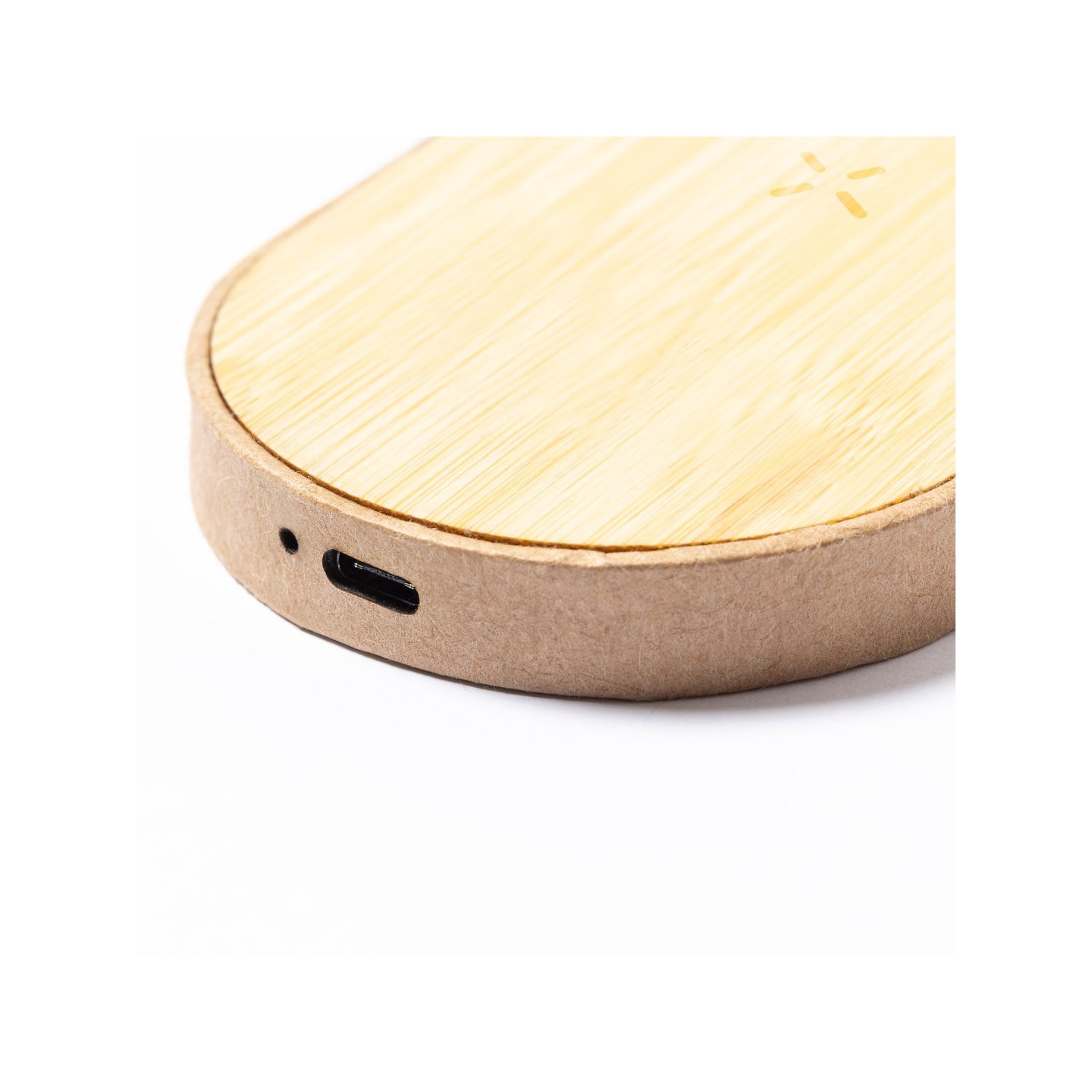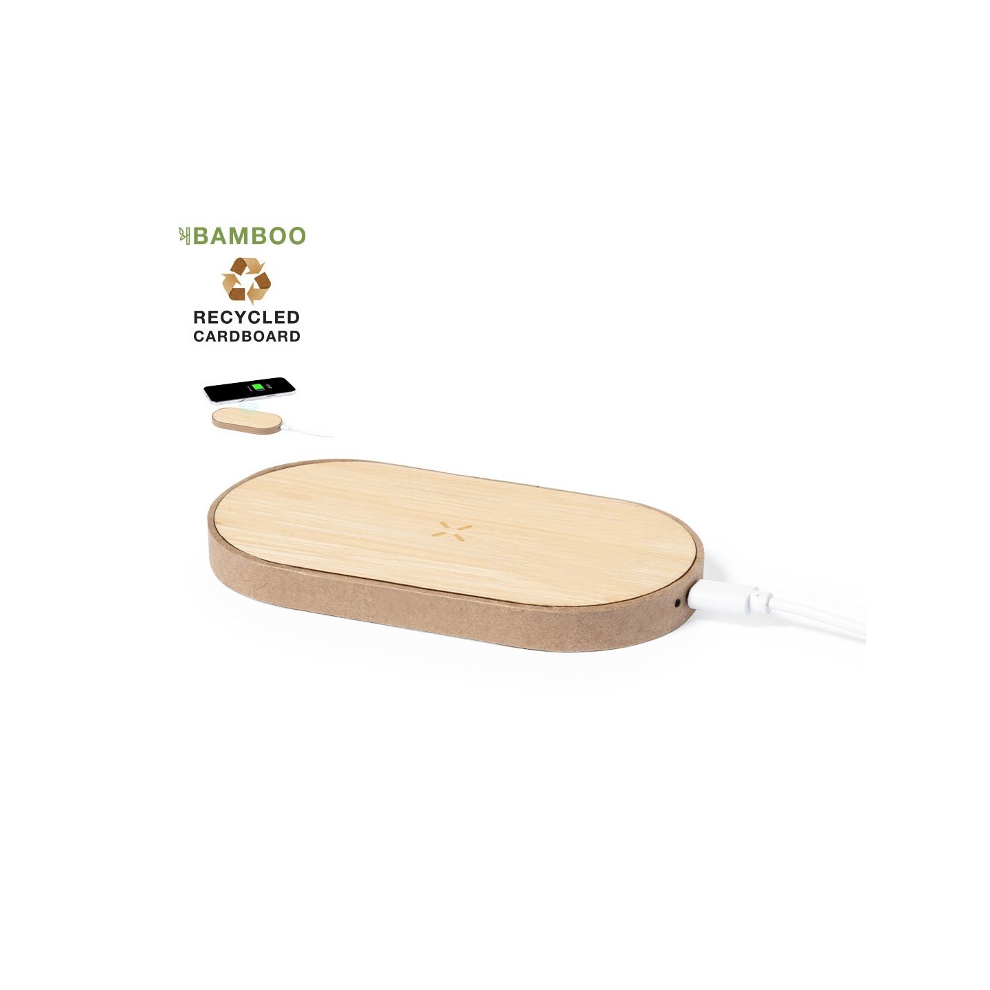 El Cargador Tedey es inalámbrico 10W de línea nature, base de cartón reciclado y superficie de bambú. Funcional y eco-friendly.