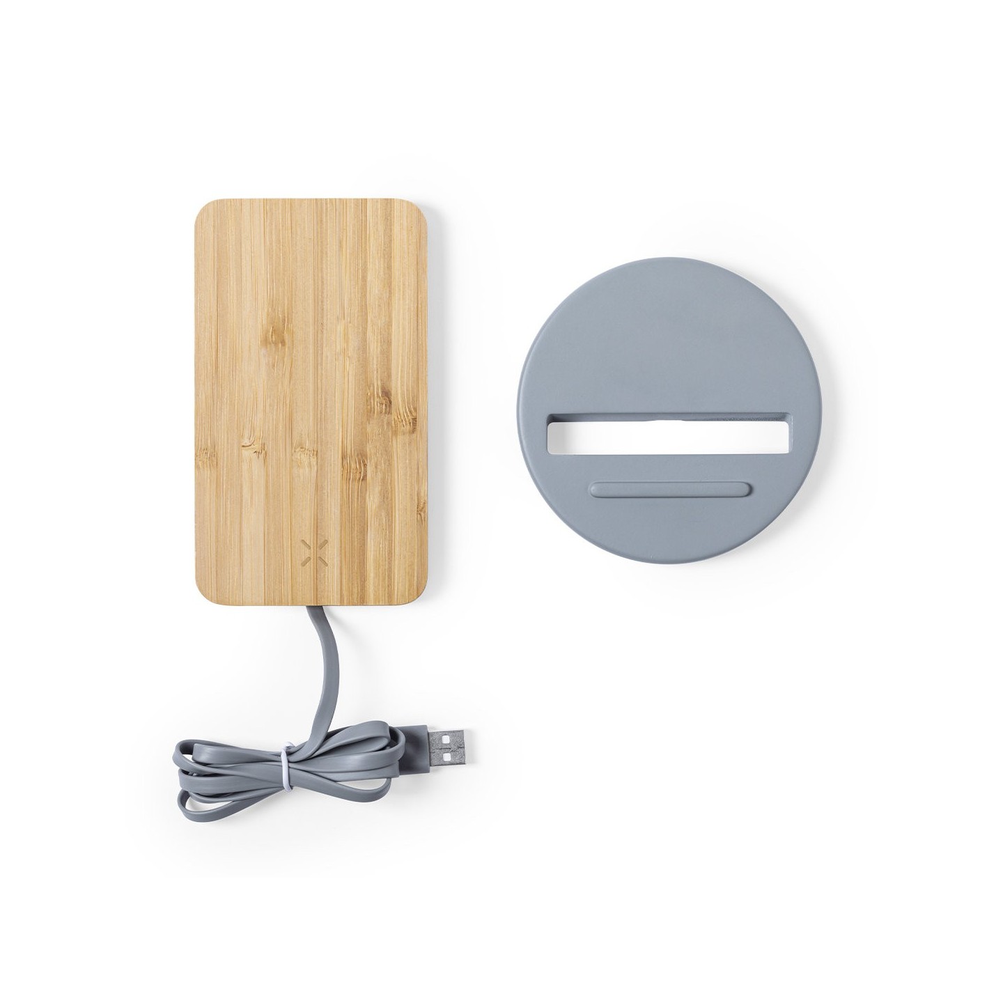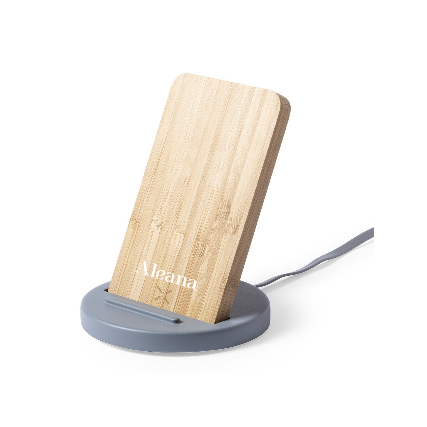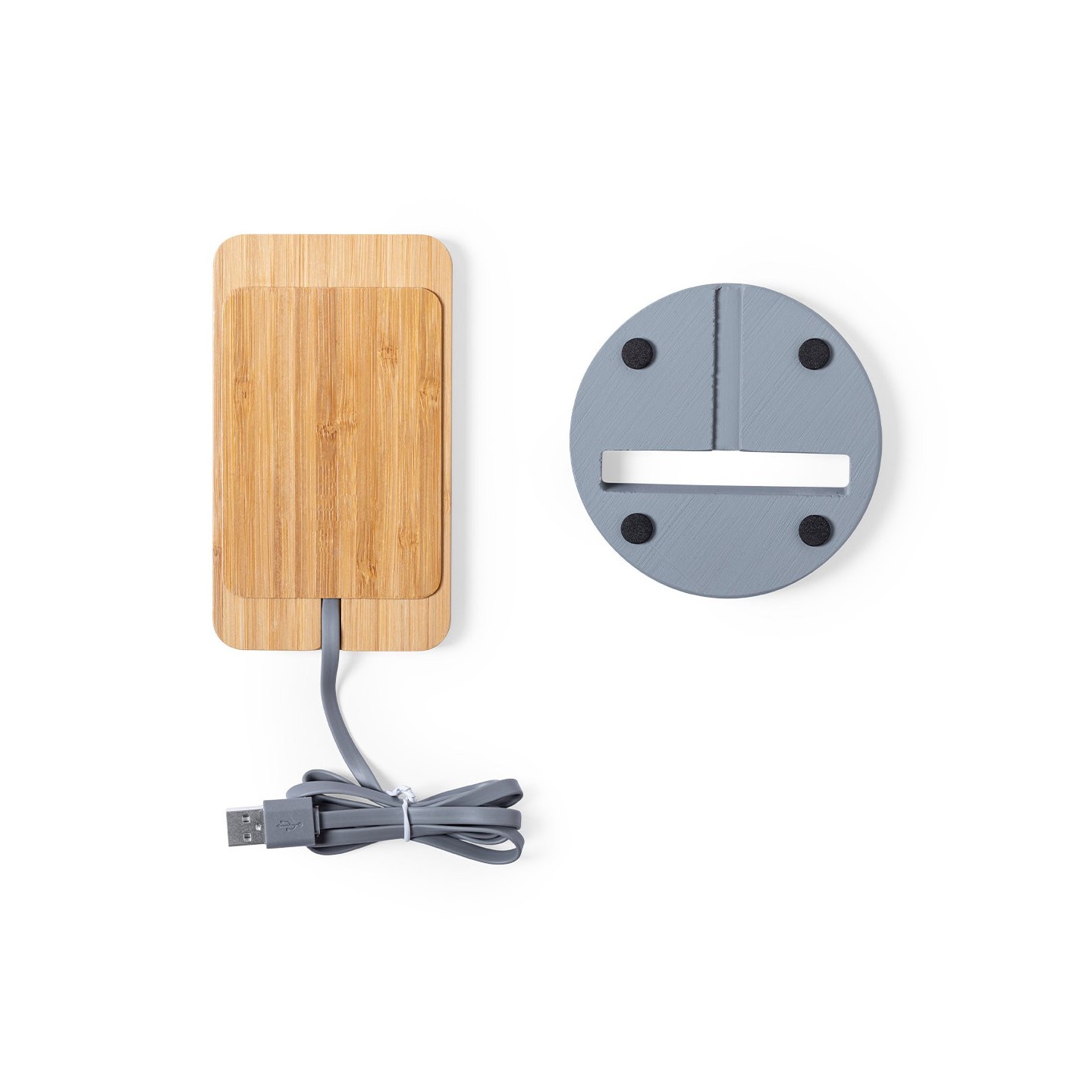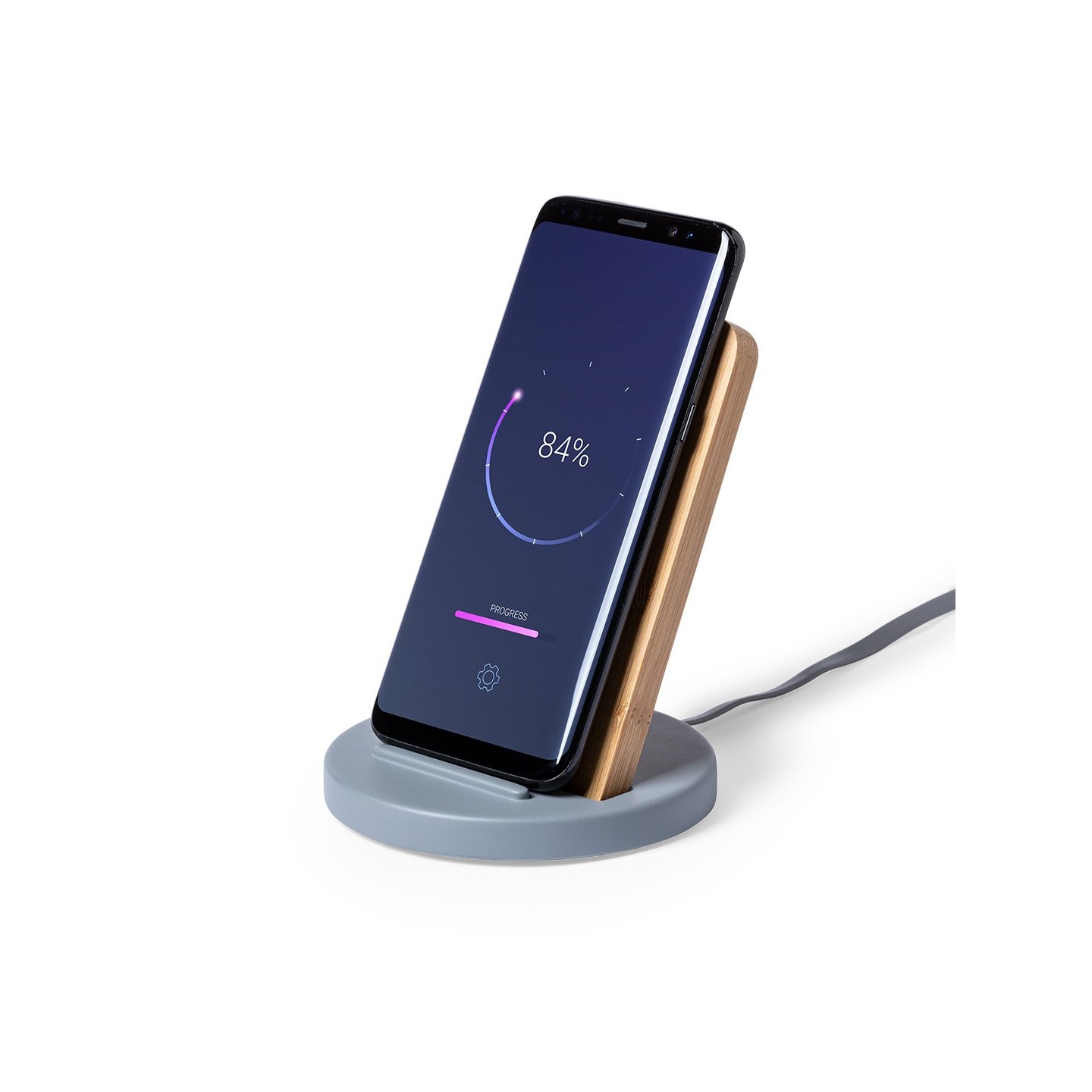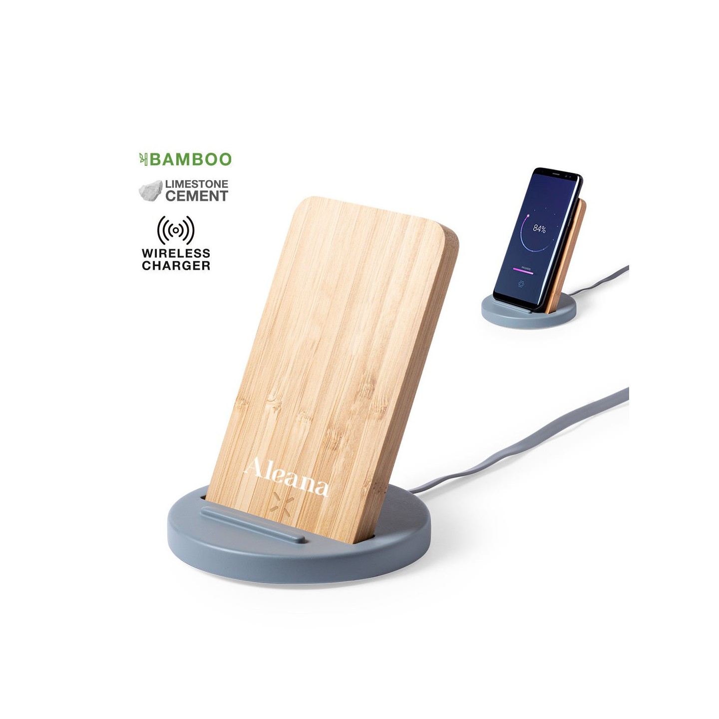 Sumérgete en la fusión de naturaleza y tecnología con el Cargador Wiket, un innovador cargador inalámbrico con función soporte para smartphone. Este cargador combina piezas de bambú de corte nature y cemento de piedra caliza, creando un diseño único que refleja la armonía entre materiales naturales y modernos.