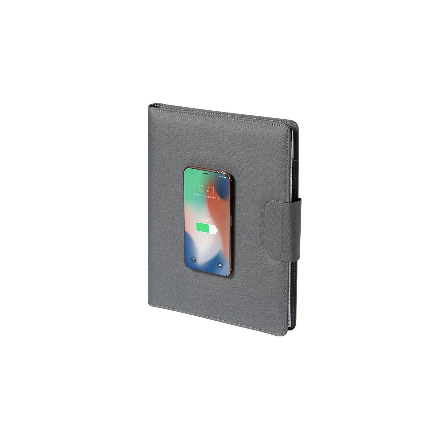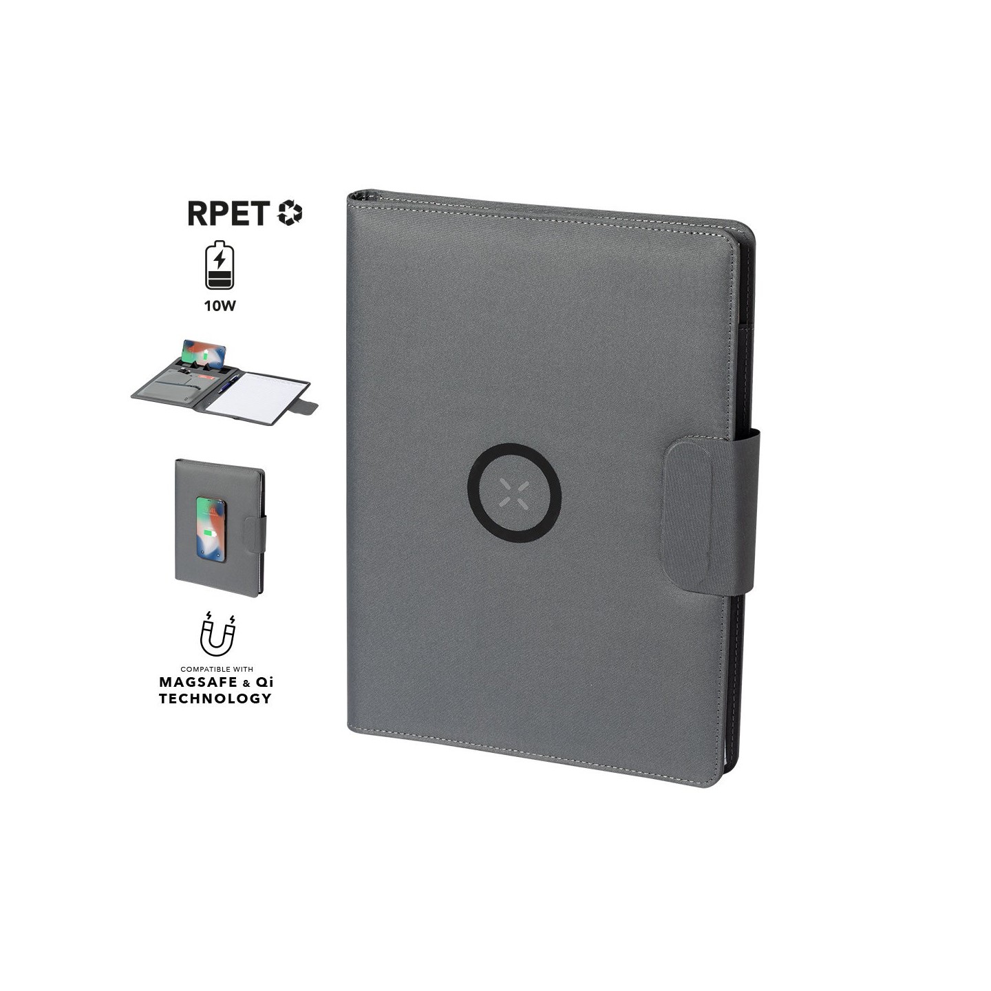 Pero eso no es todo, esta carpeta va más allá al incorporar un cargador inalámbrico 10W directamente en su portada. Imagina poder cargar tus dispositivos mientras trabajas o te encuentras en movimiento. Además, con su fijación magnética, podrás utilizar el dispositivo sin interrupciones mientras la carga se realiza. ¡Una verdadera solución de vanguardia!