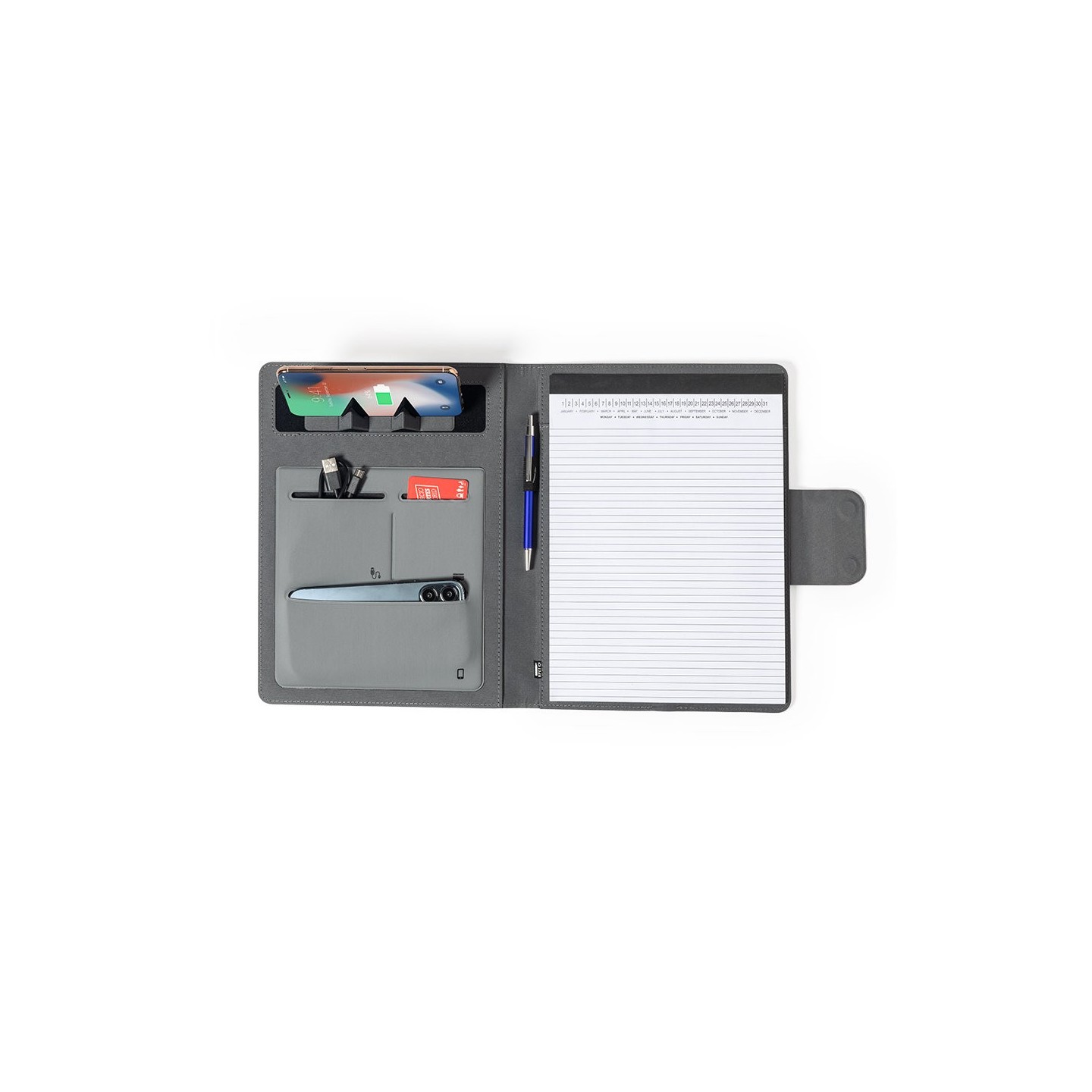Carpeta elegante y sostenible con cargador inalámbrico e organización eficiente