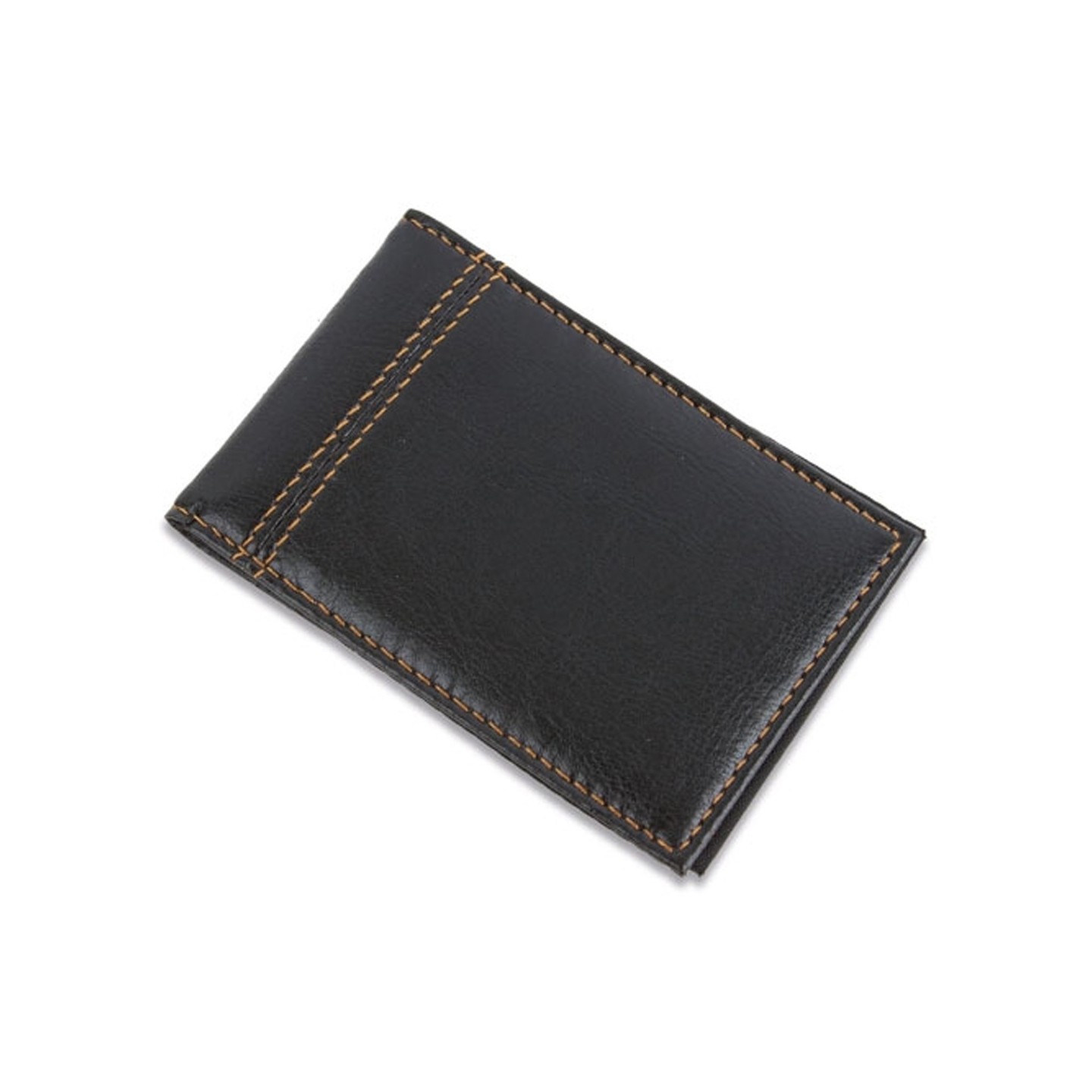 Cartera portatarjetas de polipiel con costuras visibles y compartimentos amplios para tarjetas. Diseño elegante y resistente al agua, ideal para uso diario o regalos corporativos