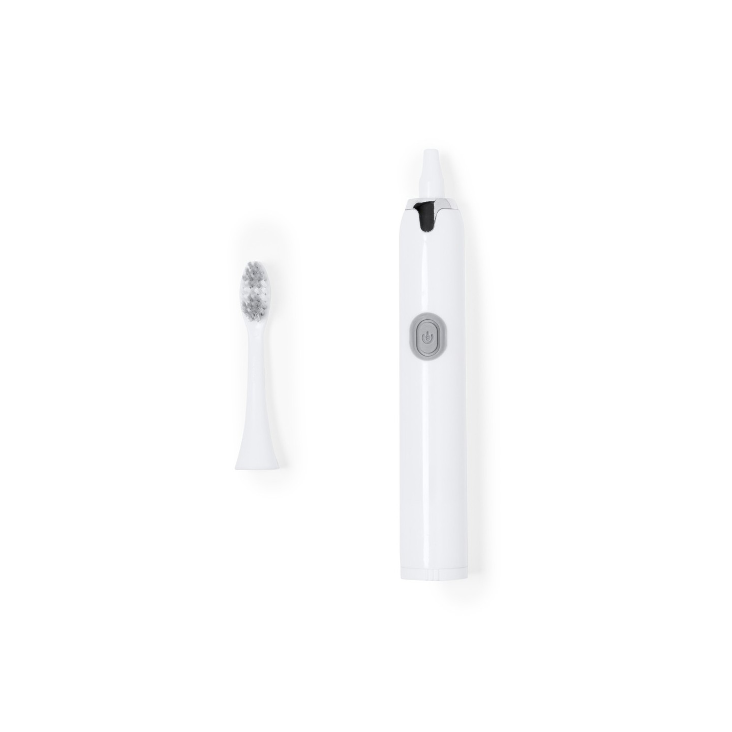 El Cepillo Dientes Eléctrico Kalins ofrece una limpieza eficiente con vibración. Portátil y elegante en blanco y plateado, ideal para personalizar como regalo corporativo.