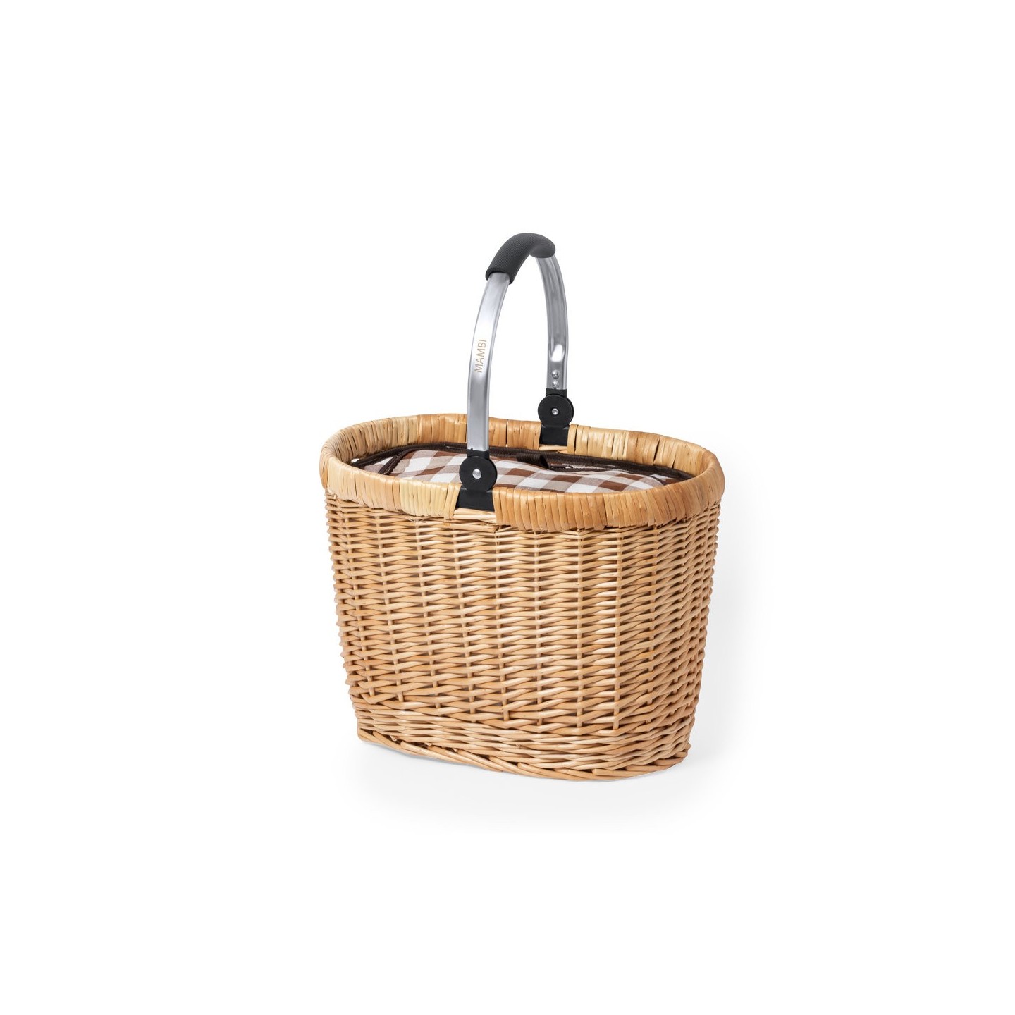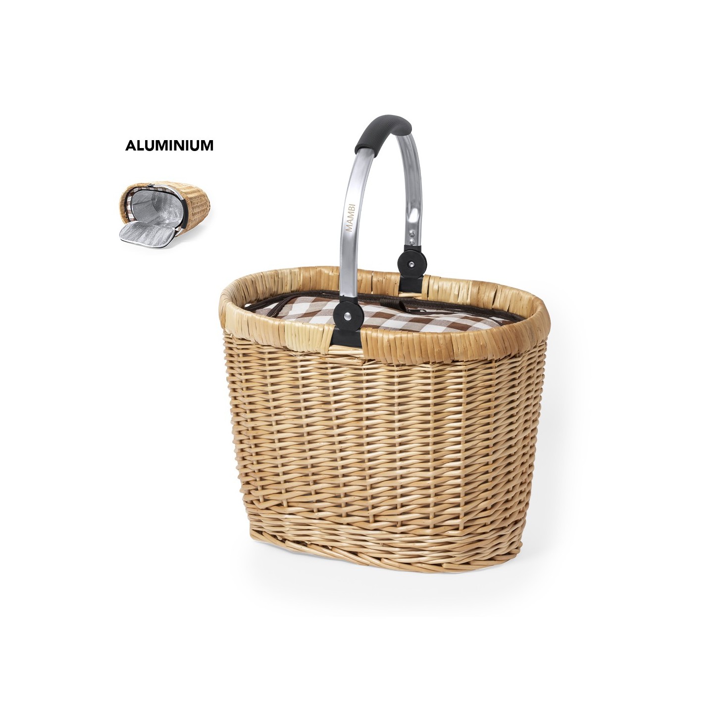La Cesta Nevera Picnic Halbax es puro estilo retro y funcionalidad. Mimbre, asa plegable de aluminio y tapa isotérmica. Picnics con encanto y comodidad.