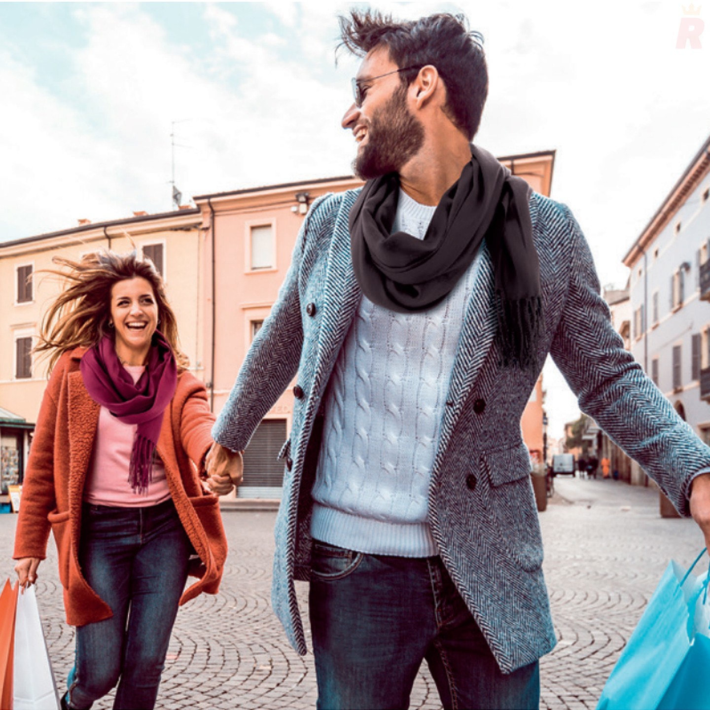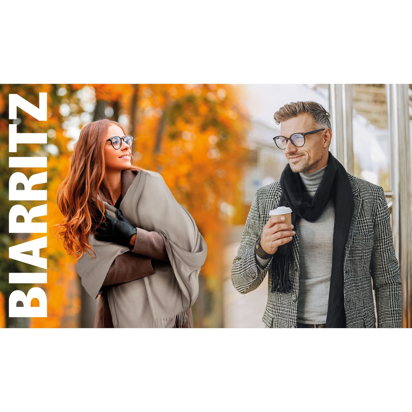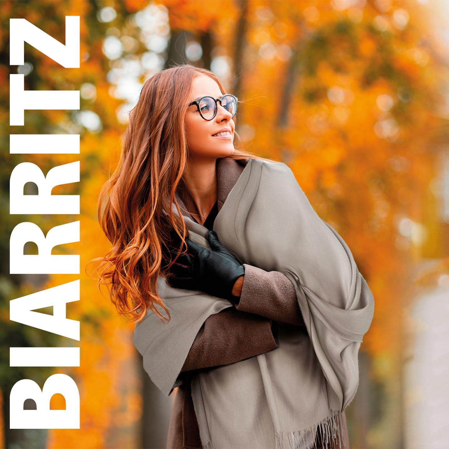 Chal Bufanda Flecos BIARRITZ, unisex y elegante, con tacto cashmere. Versátil y suave, ideal como complemento para cualquier ocasión. Disponible en colores clásicos.
