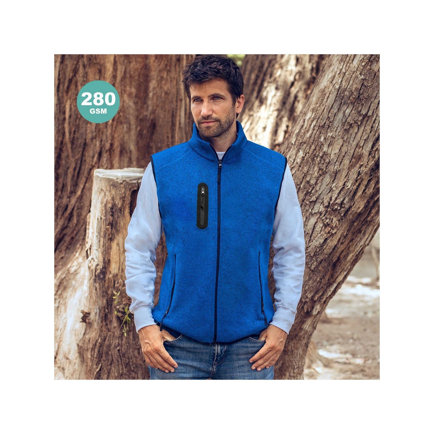 Este chaleco, tratado con anti-pilling, está disponible en una variada gama de colores, adaptándose a diferentes preferencias y estilos. Su cremallera central, bolsillos laterales y un práctico bolsillo en el pecho ofrecen espacio y comodidad, con cierres reforzados y tiradores en color negro que añaden un toque de contraste.