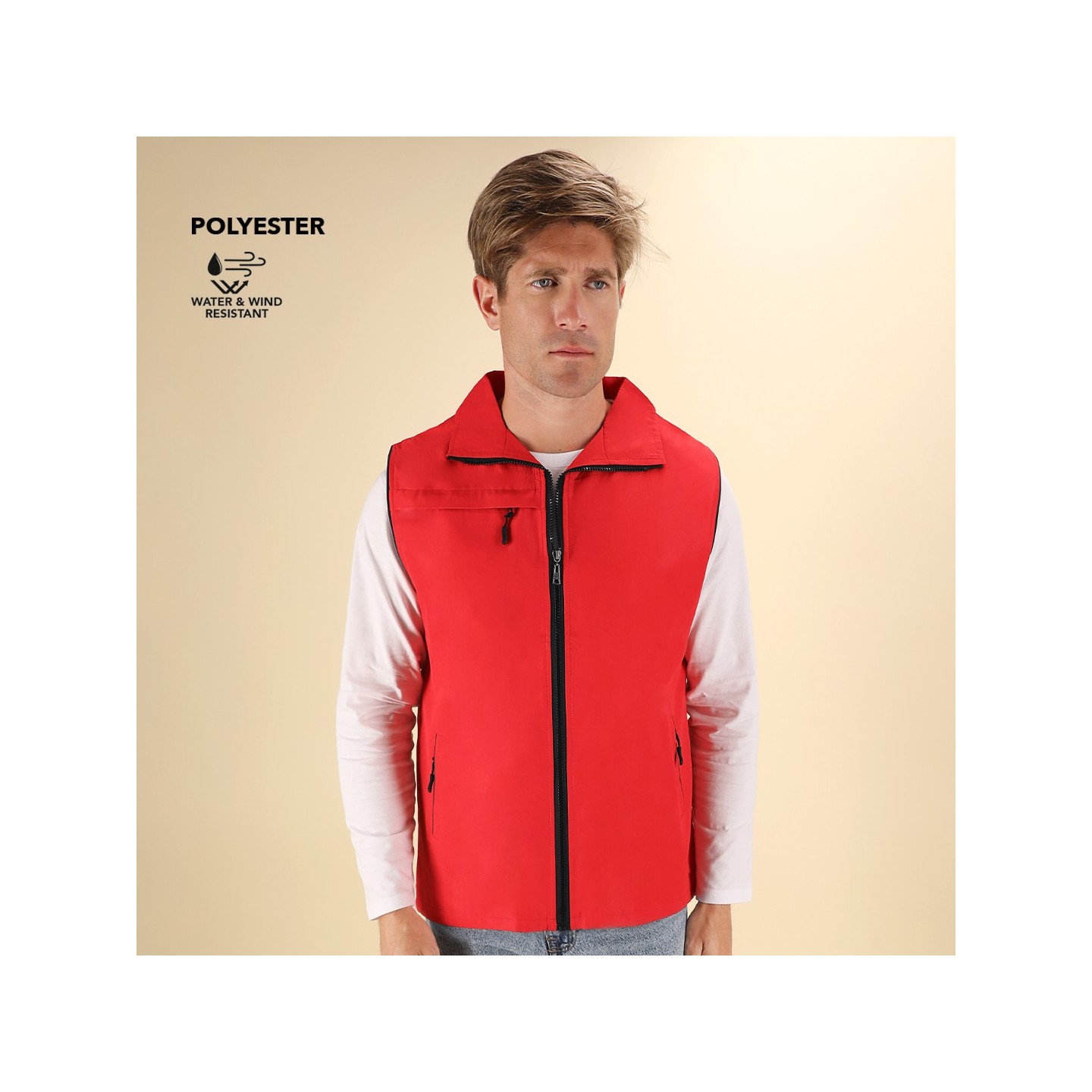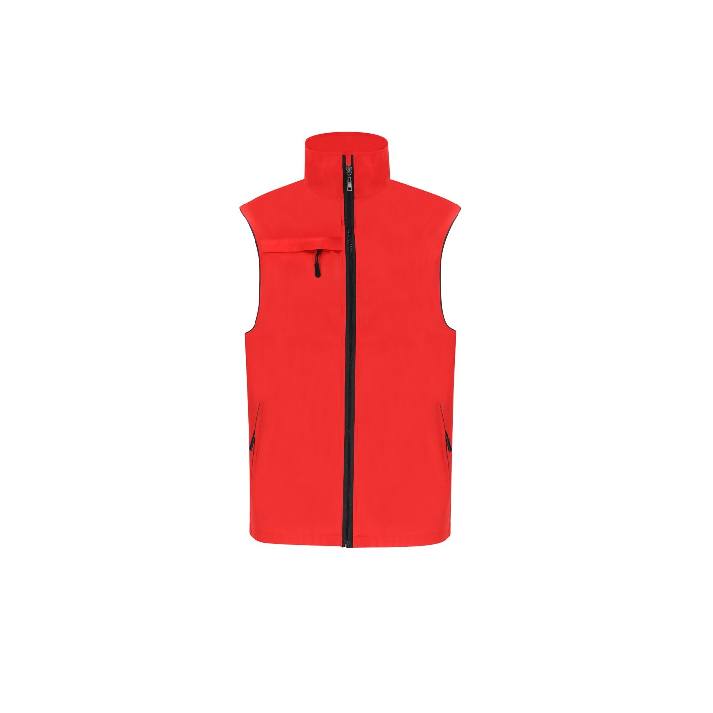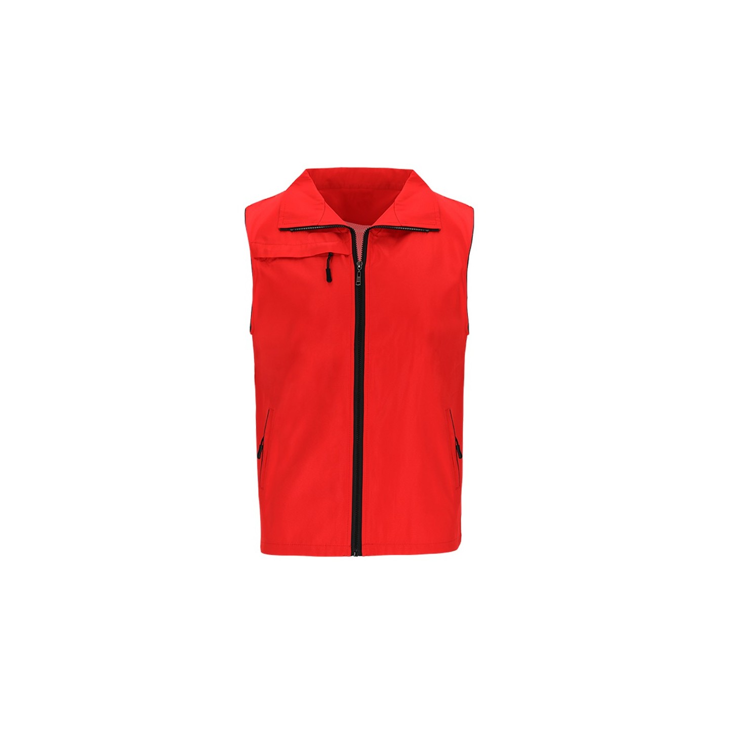 El Chaleco Dervik es unisex, ligero y transpirable, con interior de malla y cremalleras negras. Personalizable, con bolsillo en el pecho y dos laterales.