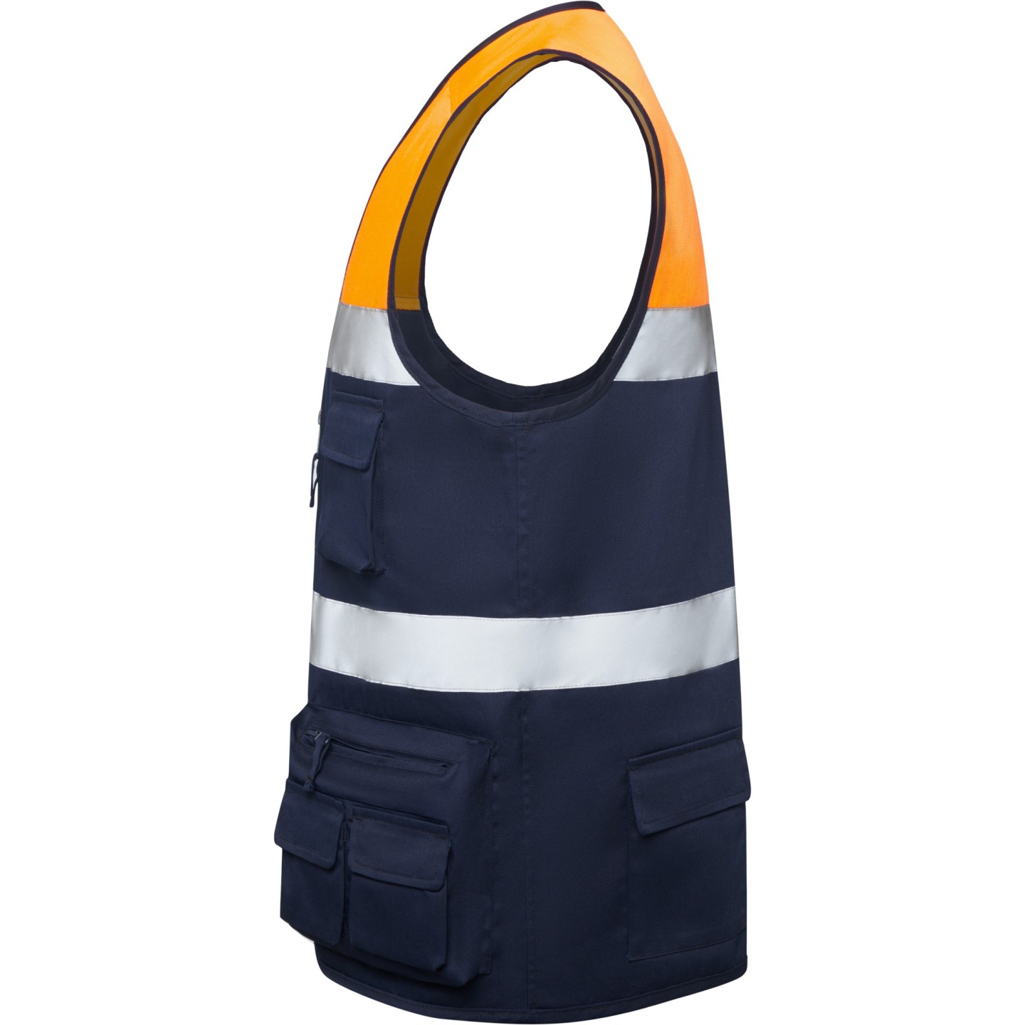 El chaleco multibolsillos BETA es una prenda laboral de alta visibilidad diseñada especialmente para profesionales que necesitan funcionalidad, resistencia y seguridad en sus jornadas de trabajo. Confeccionado en sarga resistente, combina tejido principal de 65% poliéster y 35% algodón (200 g/m²) con tejido HV de 50% poliéster y 50% algodón (250 g/m²) en la parte superior para máxima durabilidad y visibilidad.