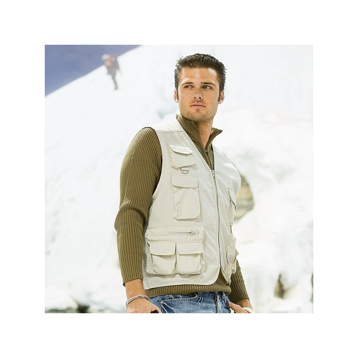 El chaleco Soviet es resistente combinación de algodón y poliéster en vivos colores. Cierre de cremallera, múltiples bolsillos. Tallas L-XXL.