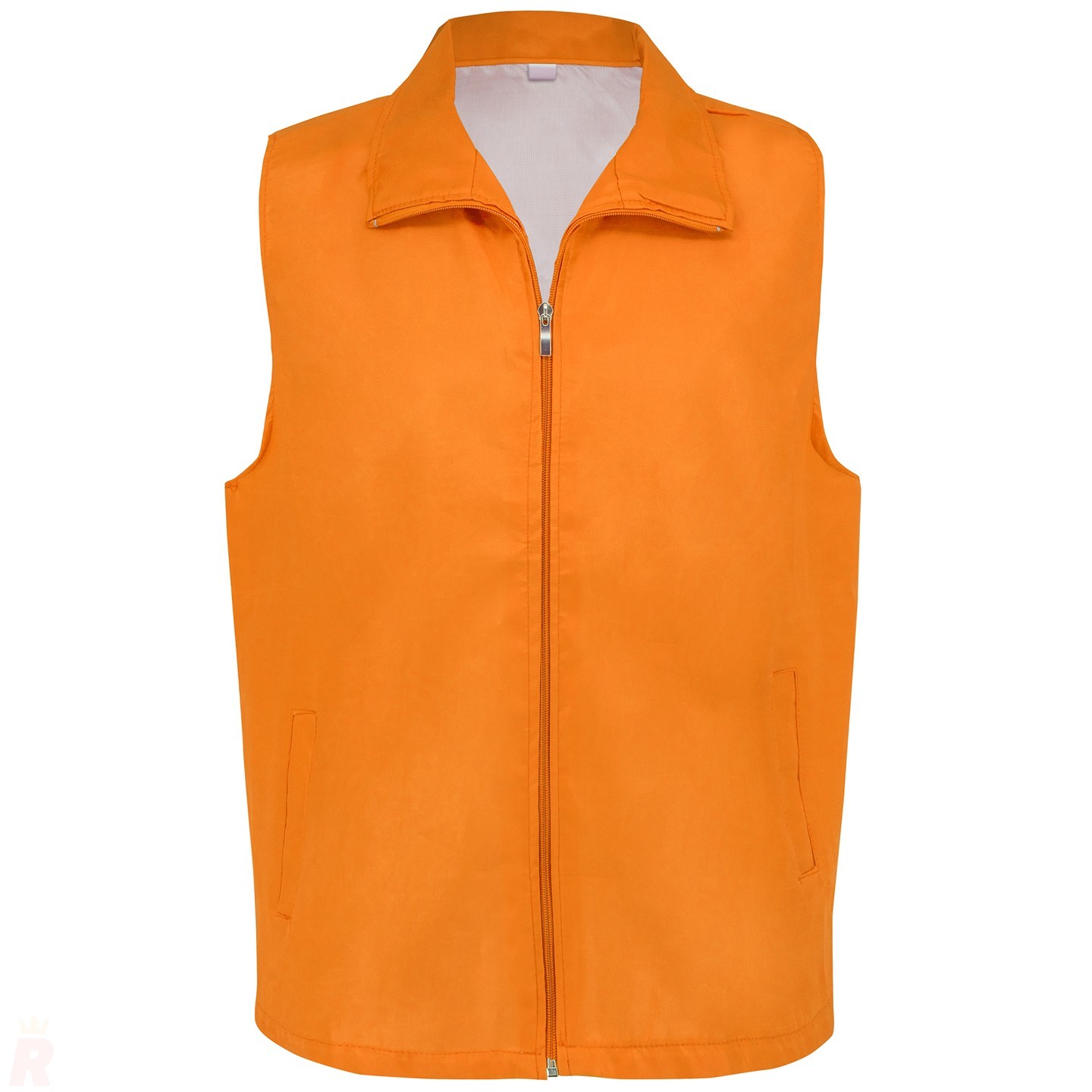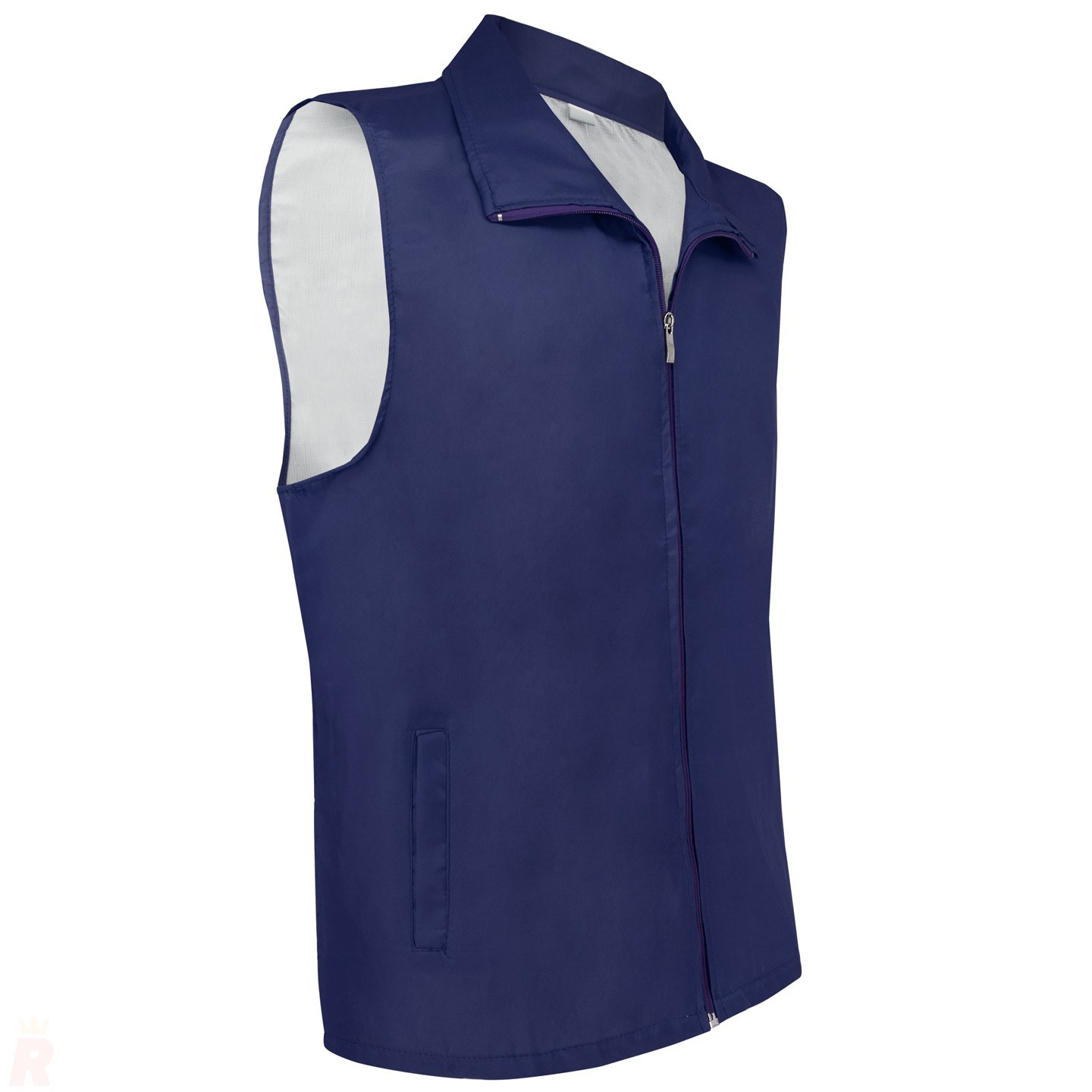 Chaleco unisex en poliéster, ligero y transpirable, con bolsillos exteriores y cierre de cremallera. Ideal para tiendas, supermercados y ultramarinos. Disponible en varias tallas