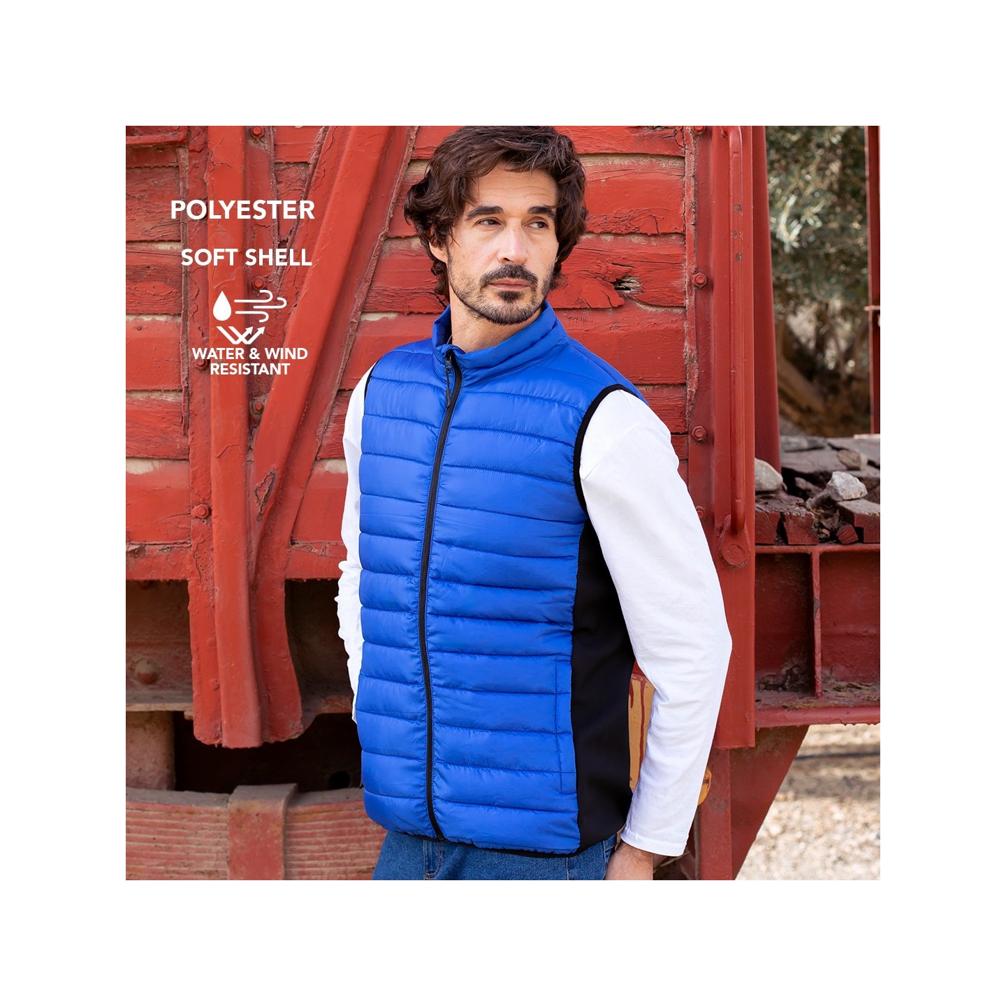 El Chaleco Toret es resistente al viento y agua, cálido soft shell y poliéster, interior acolchado. Personalizable con logo. Funcionalidad y estilo en cada detalle.