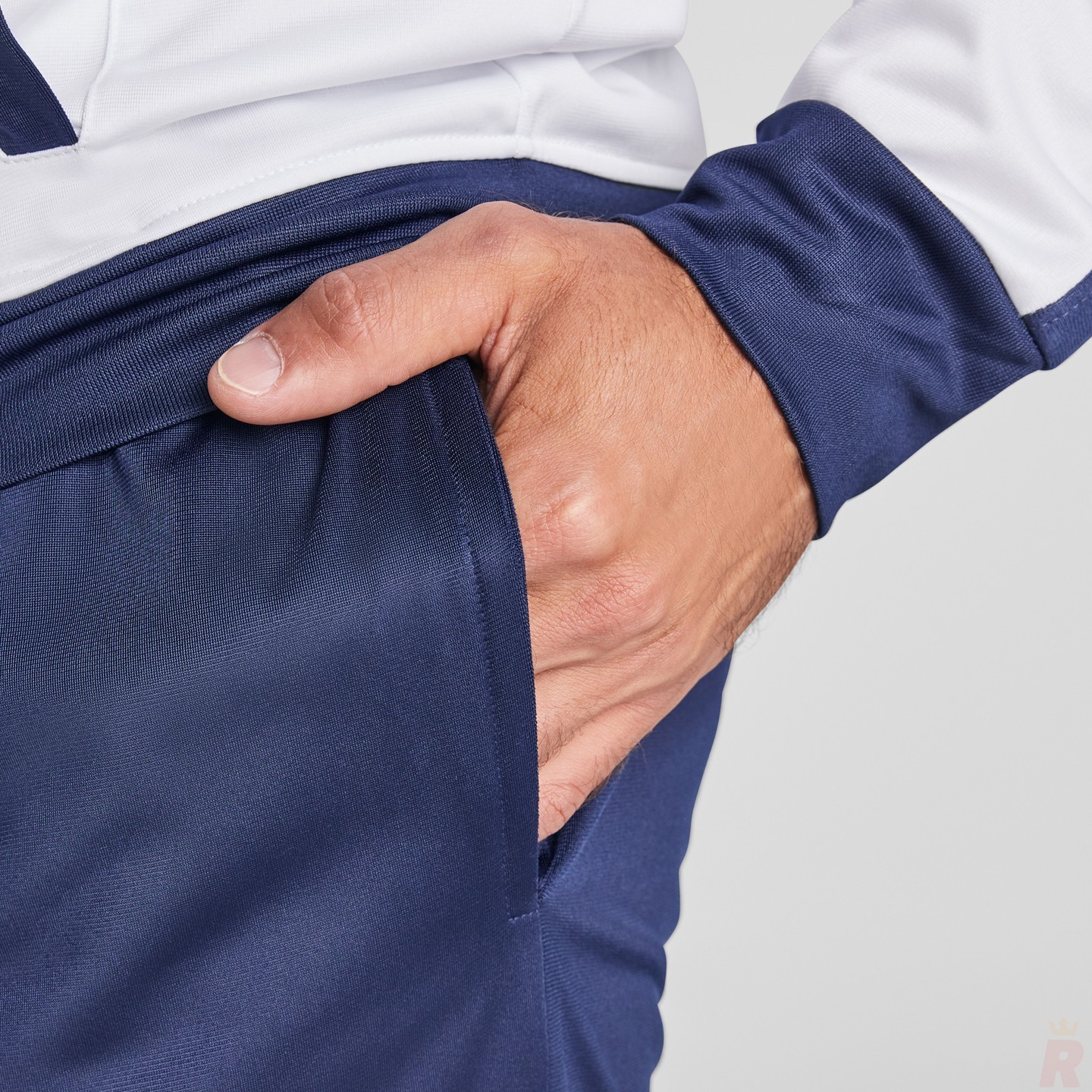 Confeccionado en 100% poliéster de tejido acetato liso y un gramaje de 210 g/m², este chándal presenta un interior aterciopelado ultrasuave que proporciona un nivel superior de confort térmico, convirtiéndolo en una prenda versátil para cualquier época del año. La estructura ligeramente brillante y satinada del tejido exterior aporta un toque deportivo elegante y profesional.