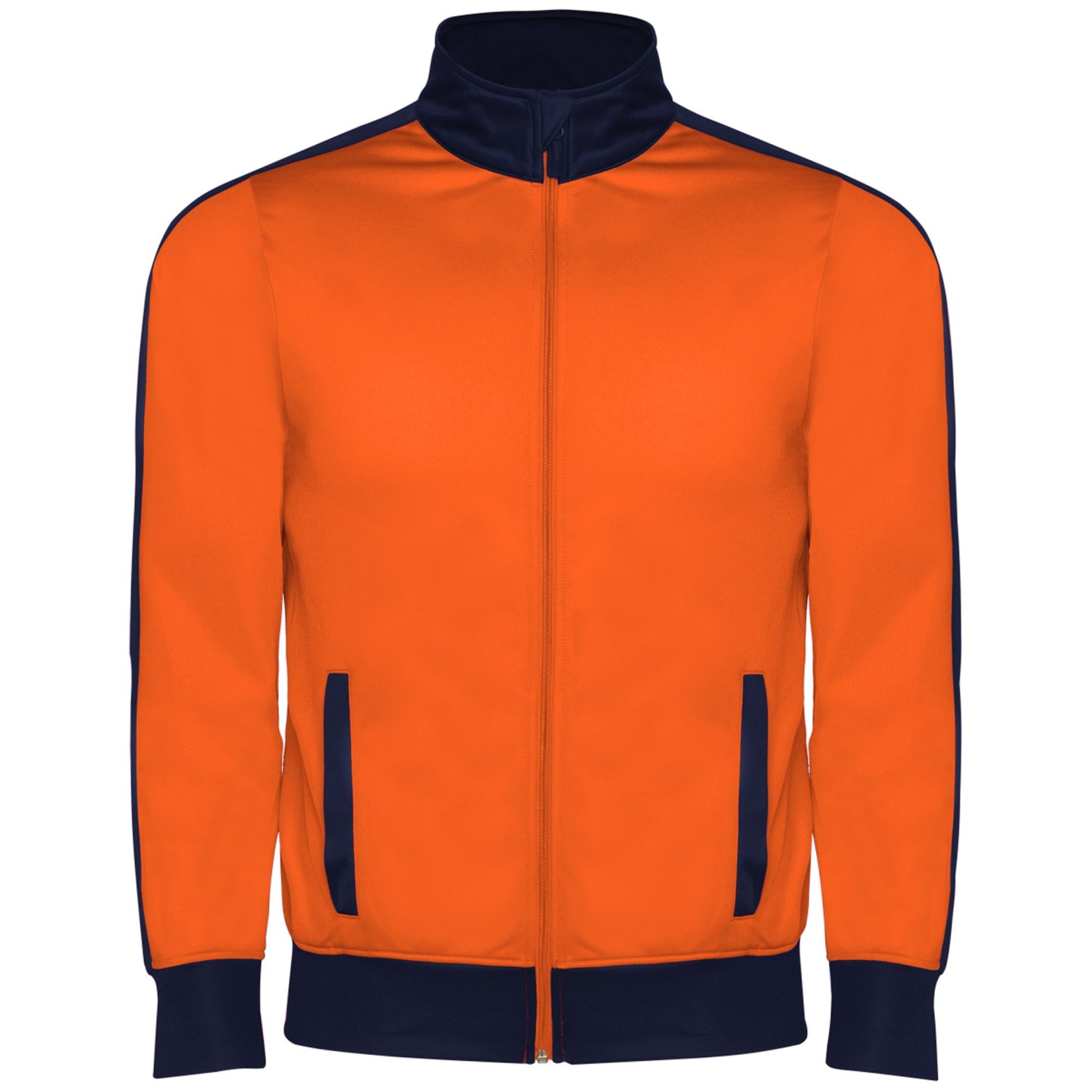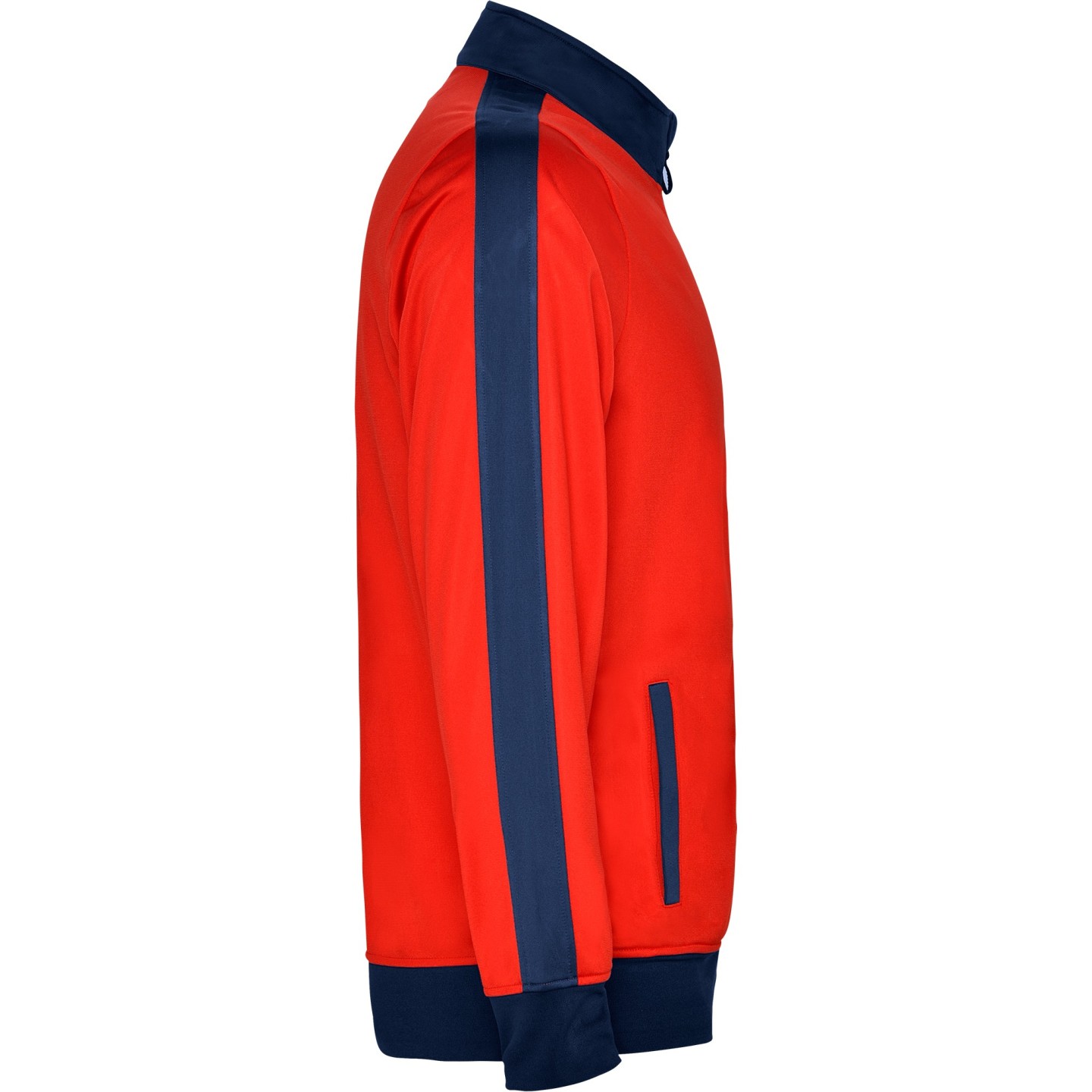 El diseño bicolor con detalles en contraste está cuidadosamente elaborado: cuello alto con protector de cremallera, canalé 1x1 en puños y cintura para un ajuste cómodo, vivos decorativos en bolsillos frontales y laterales, y una cremallera central con cubrecosturas que garantiza durabilidad y protección al contacto con la piel.