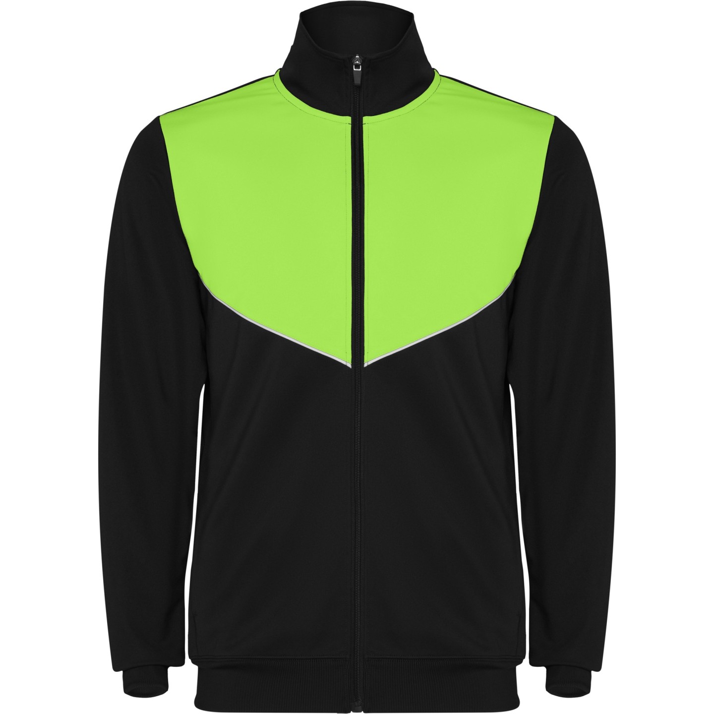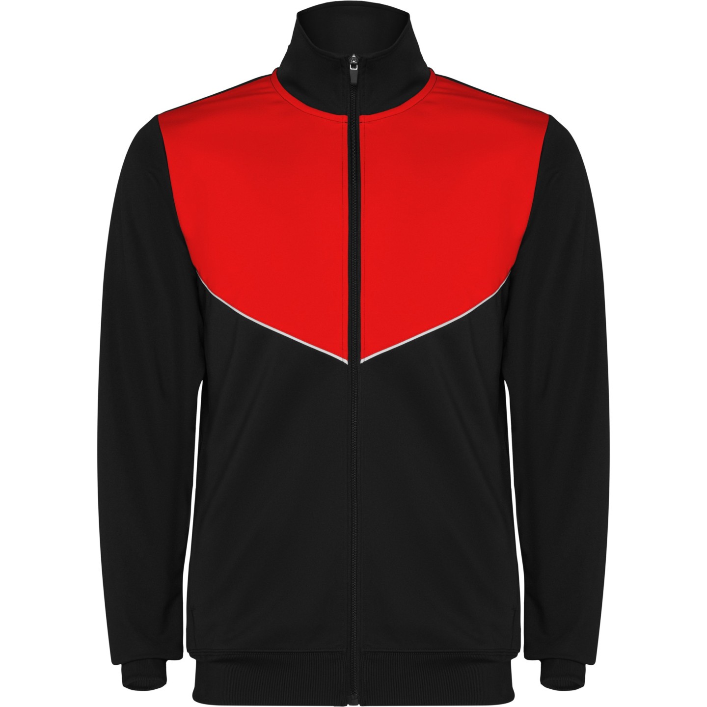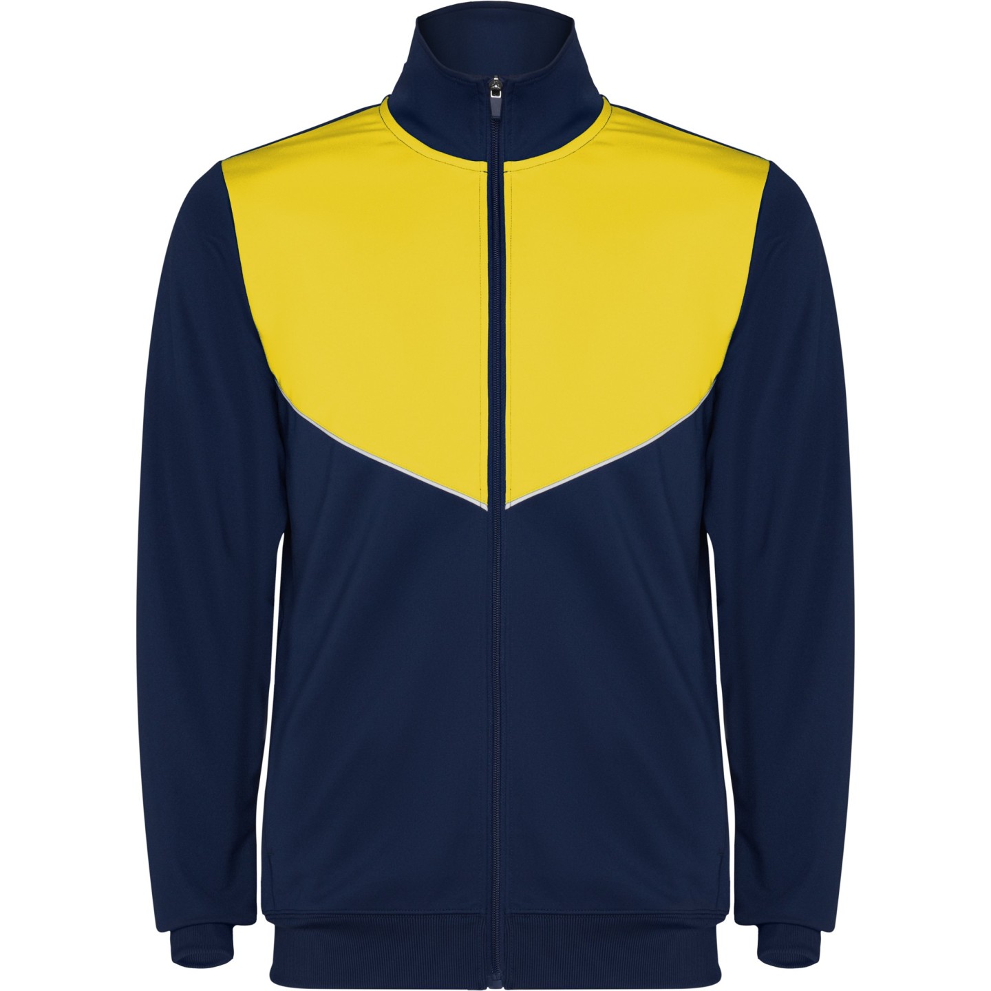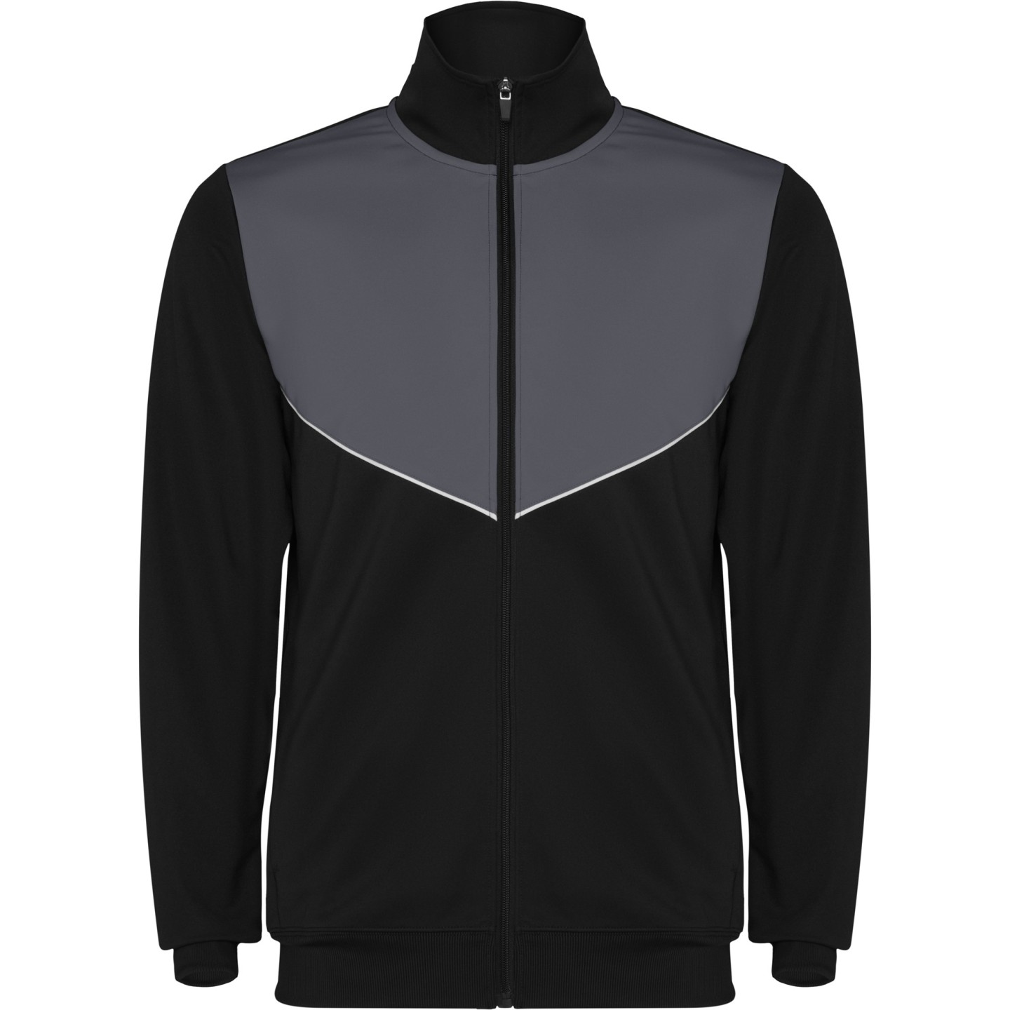 Su diseño moderno bicolor con pecho en contraste y vivo decorativo aporta un toque actual y dinámico. La chaqueta cuenta con cuello alto, cremallera central y bolsillos laterales muy prácticos, mientras que los puños y cintura en canalé 2x2 proporcionan un ajuste óptimo.