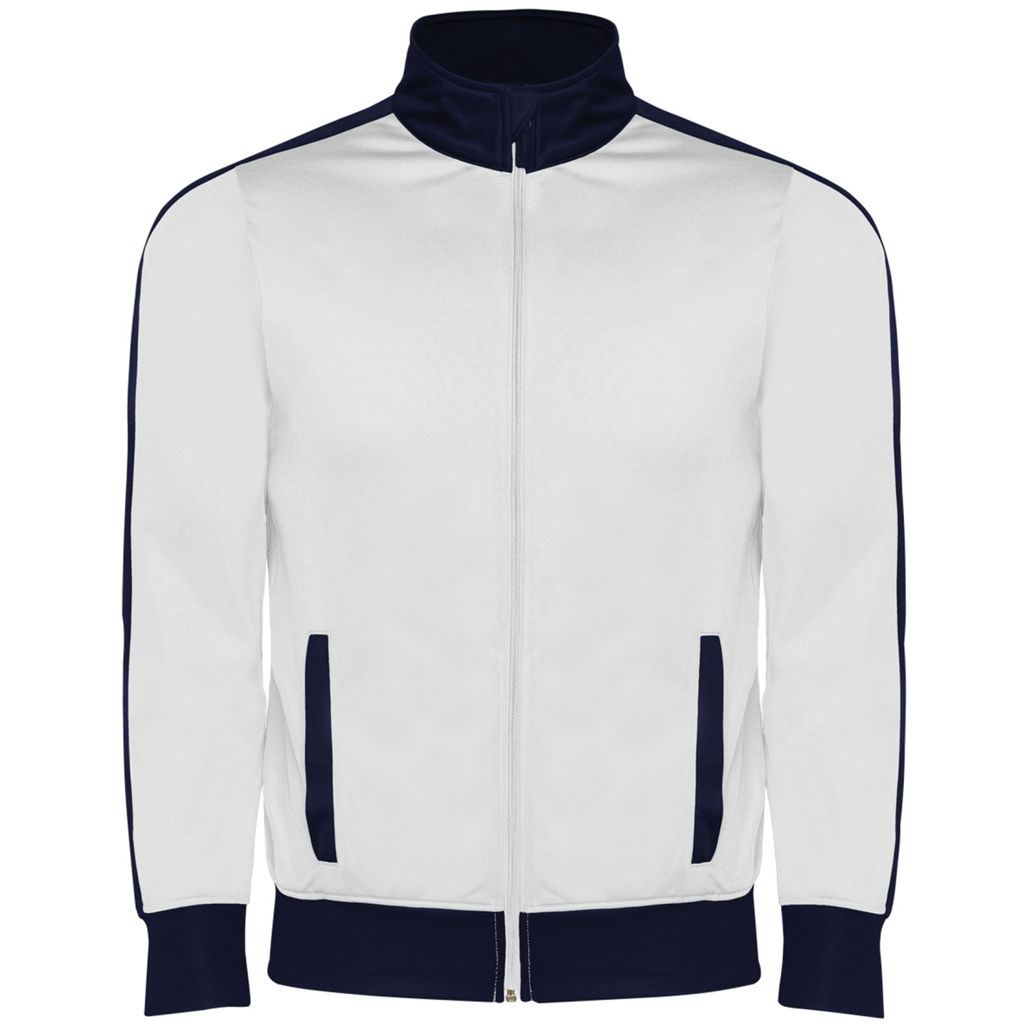 - Chaqueta: Cuello alto con protector, cremallera central con cubrecosturas, puños y cintura en canalé 1x1, bolsillos frontales con vivo