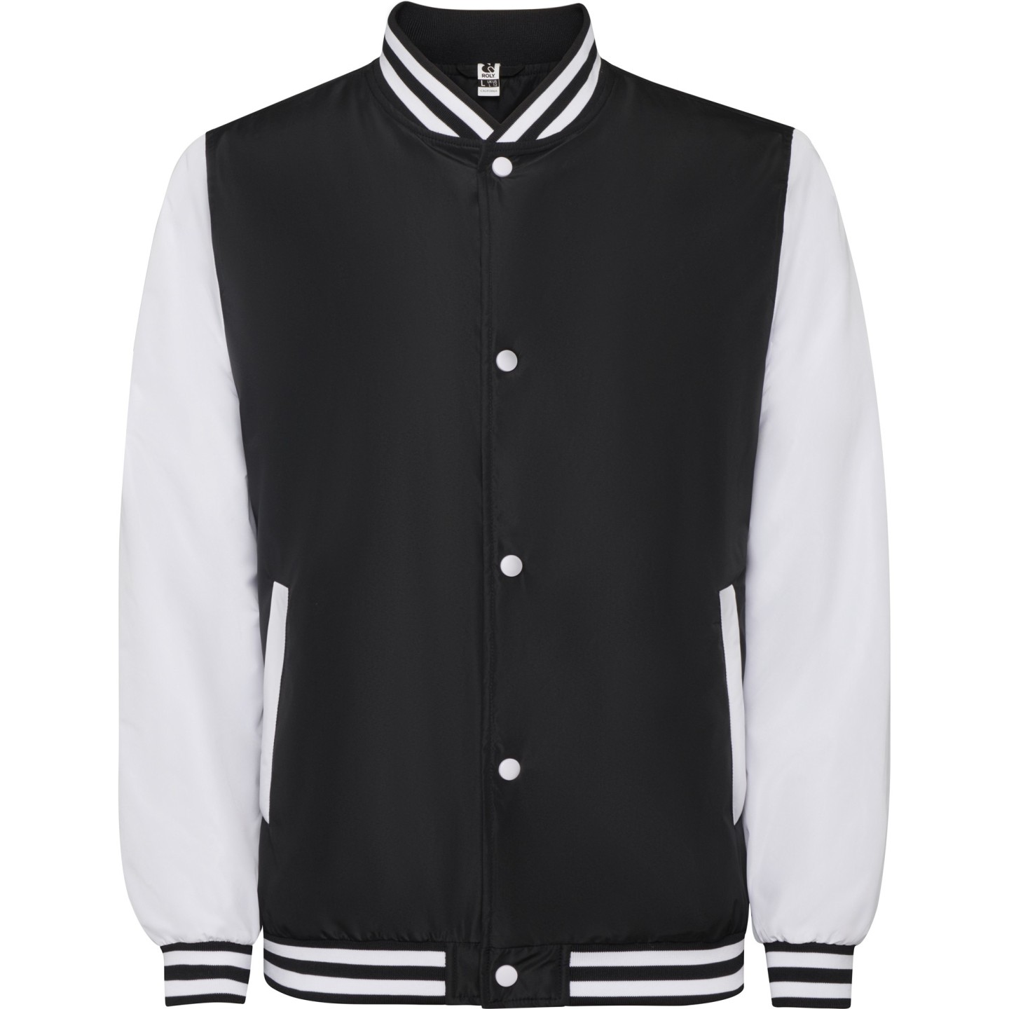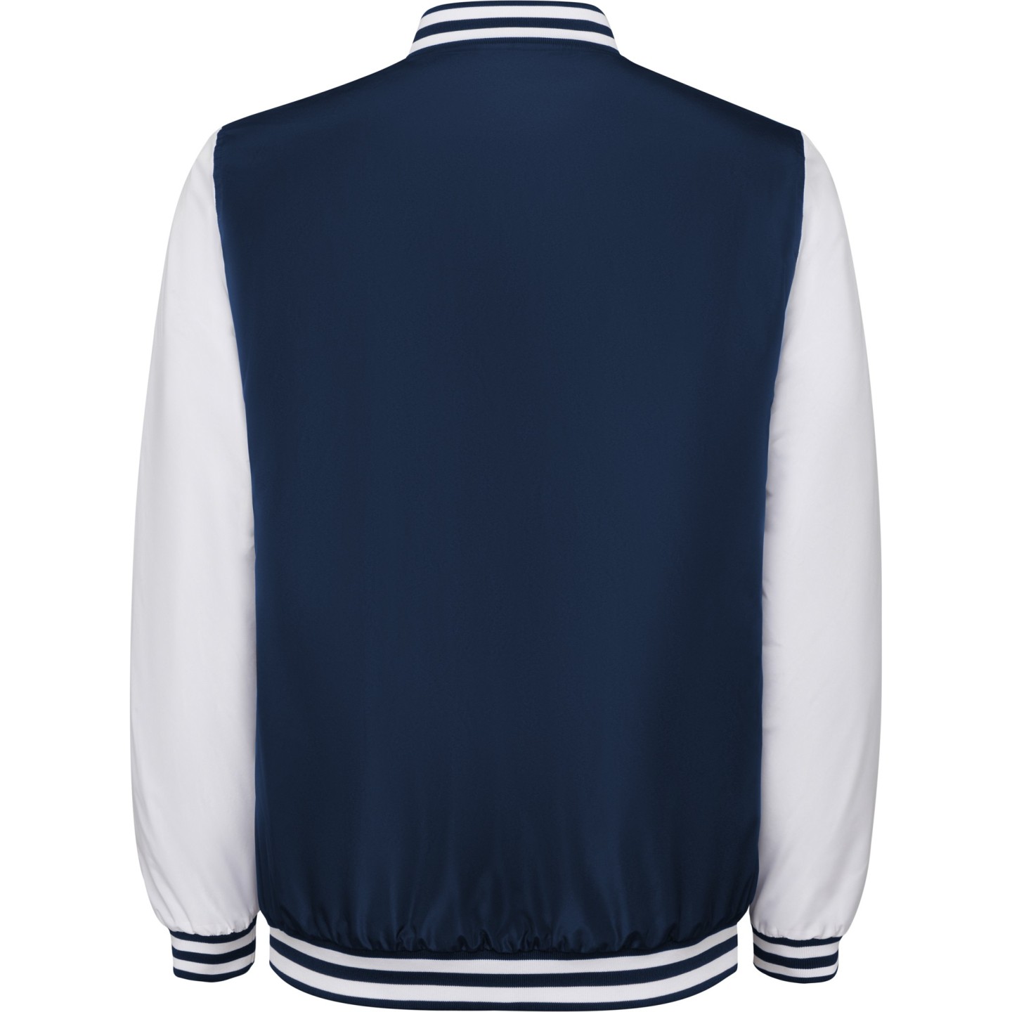 Chaqueta universitaria estilo americano, unisex, con interior forrado, cierre de botones a presión y bolsillos con cremallera. Ideal para personalizar con logotipo