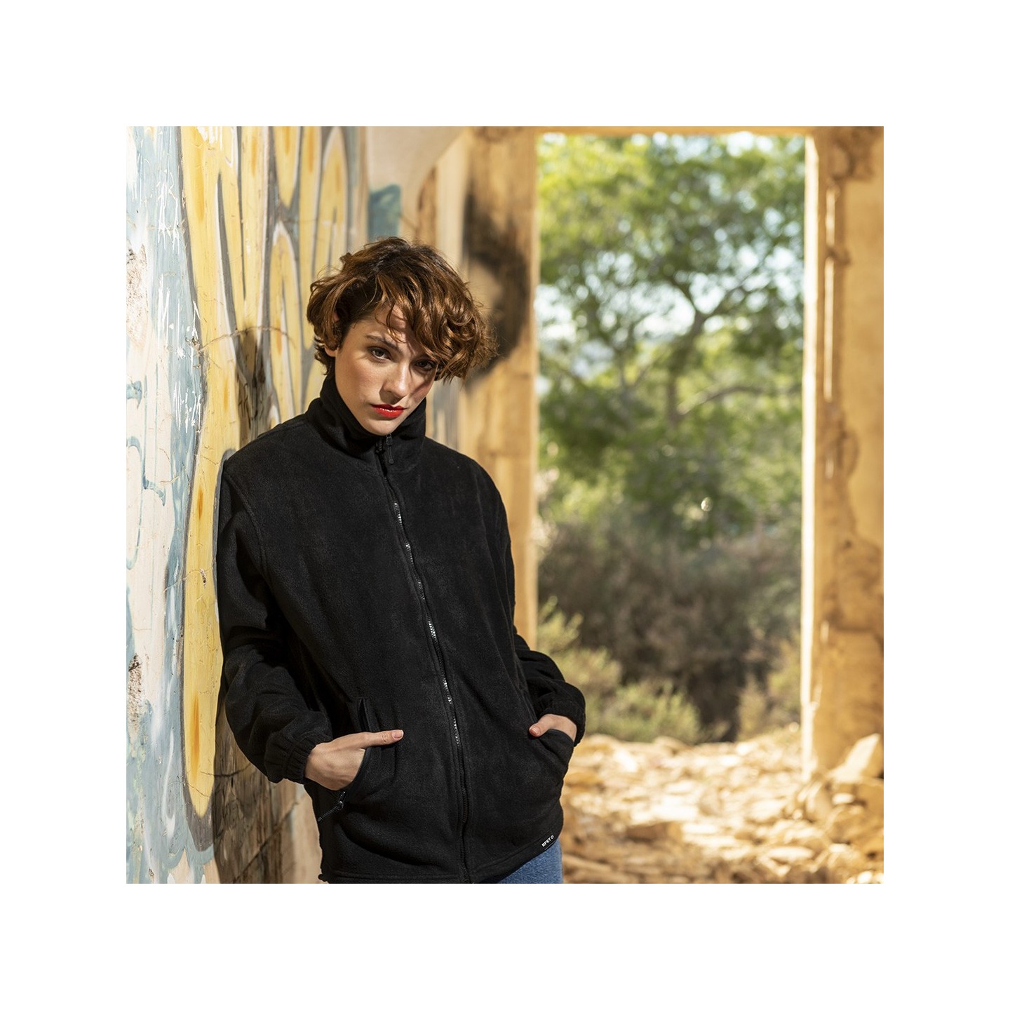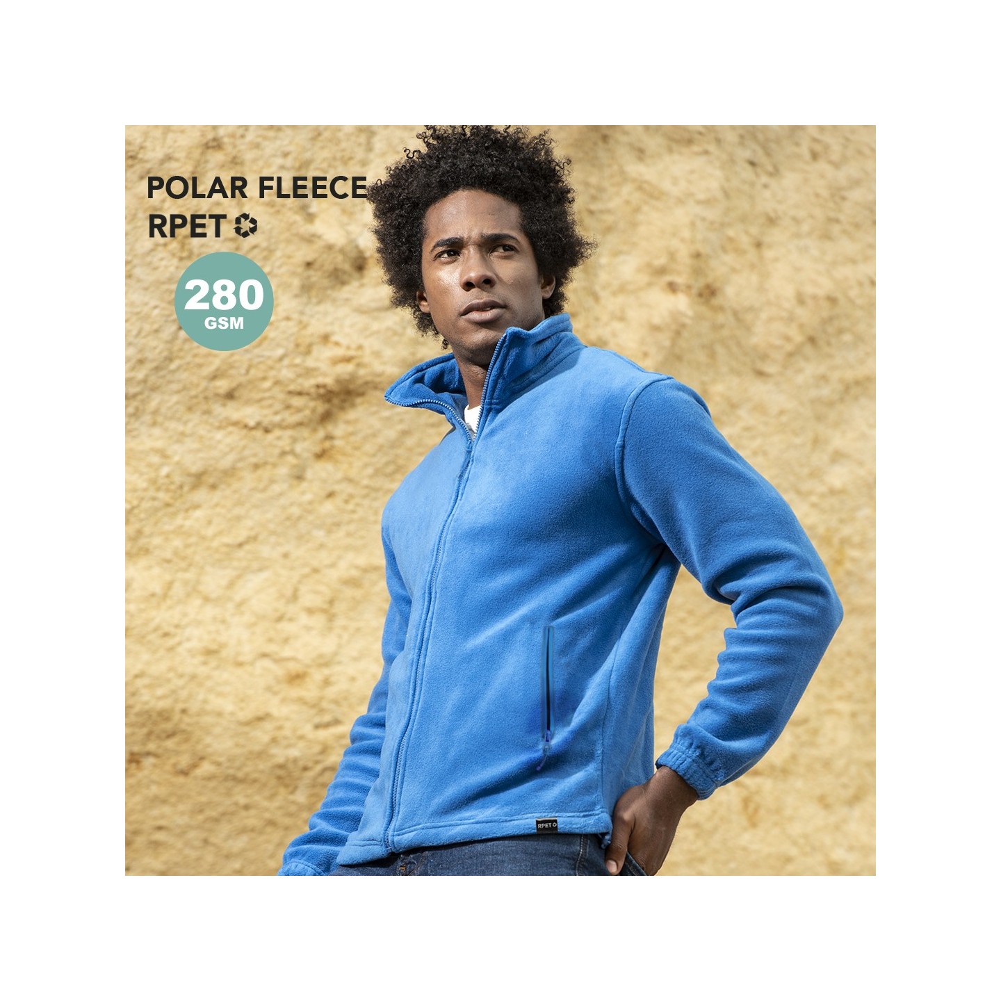 Chaqueta polar fleece RPET ecológica con tratamiento anti-pilling, cuello alto y puños elásticos. Con cierre de cremallera y bolsillos laterales. Ideal para personalizar