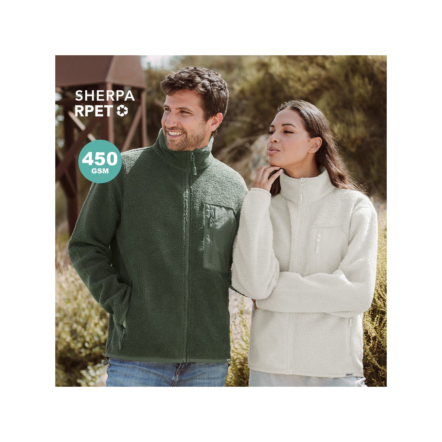 Chaqueta Killian es la opción perfecta para quienes buscan una prenda ecológica, cálida y de alta calidad. Confeccionada con sherpa RPET de 450g/m2, este material se caracteriza por su suave tacto, similar al borrego, que proporciona una sensación de comodidad y calidez. El interior está forrado en polar de color a juego, lo que refuerza aún más el aislamiento térmico y el confort. Esta chaqueta es ideal para el clima frío, manteniendo el calor de manera eficiente sin sacrificar el estilo.
