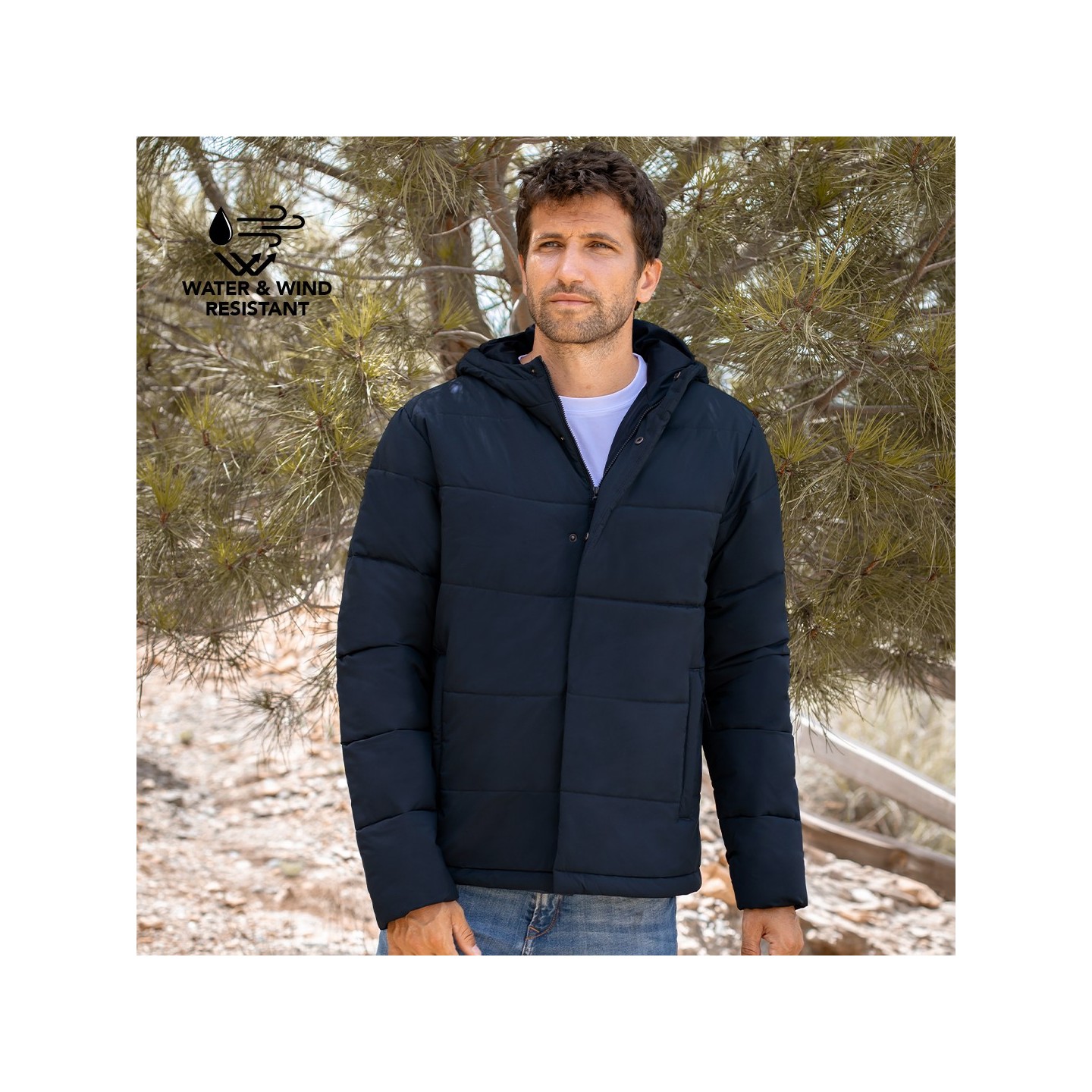 Parka elegante y funcional, con capucha fija integrada, resistente al viento y al agua. Ideal para personalizar con logotipo, perfecta para merchandising y regalos corporativos
